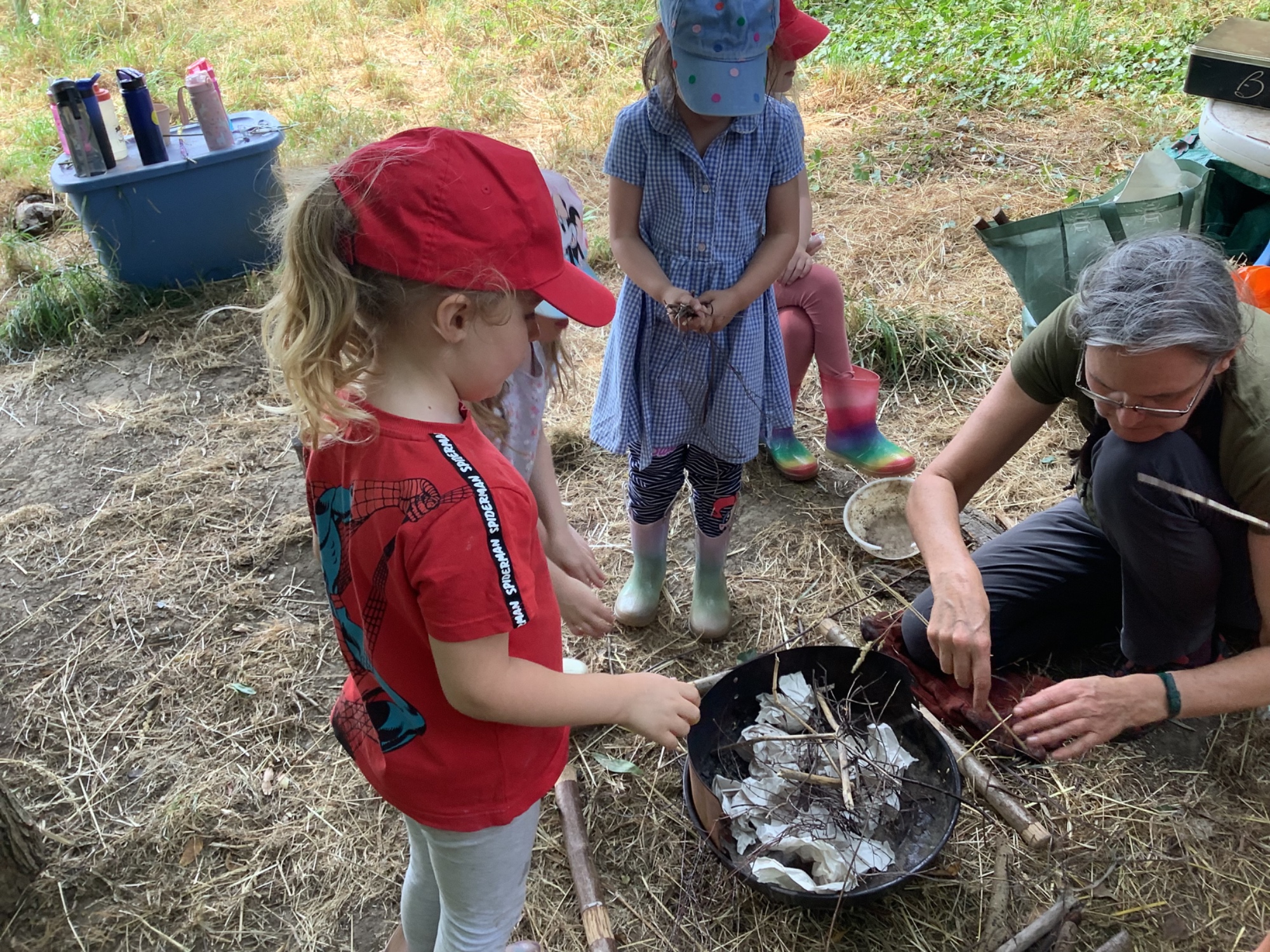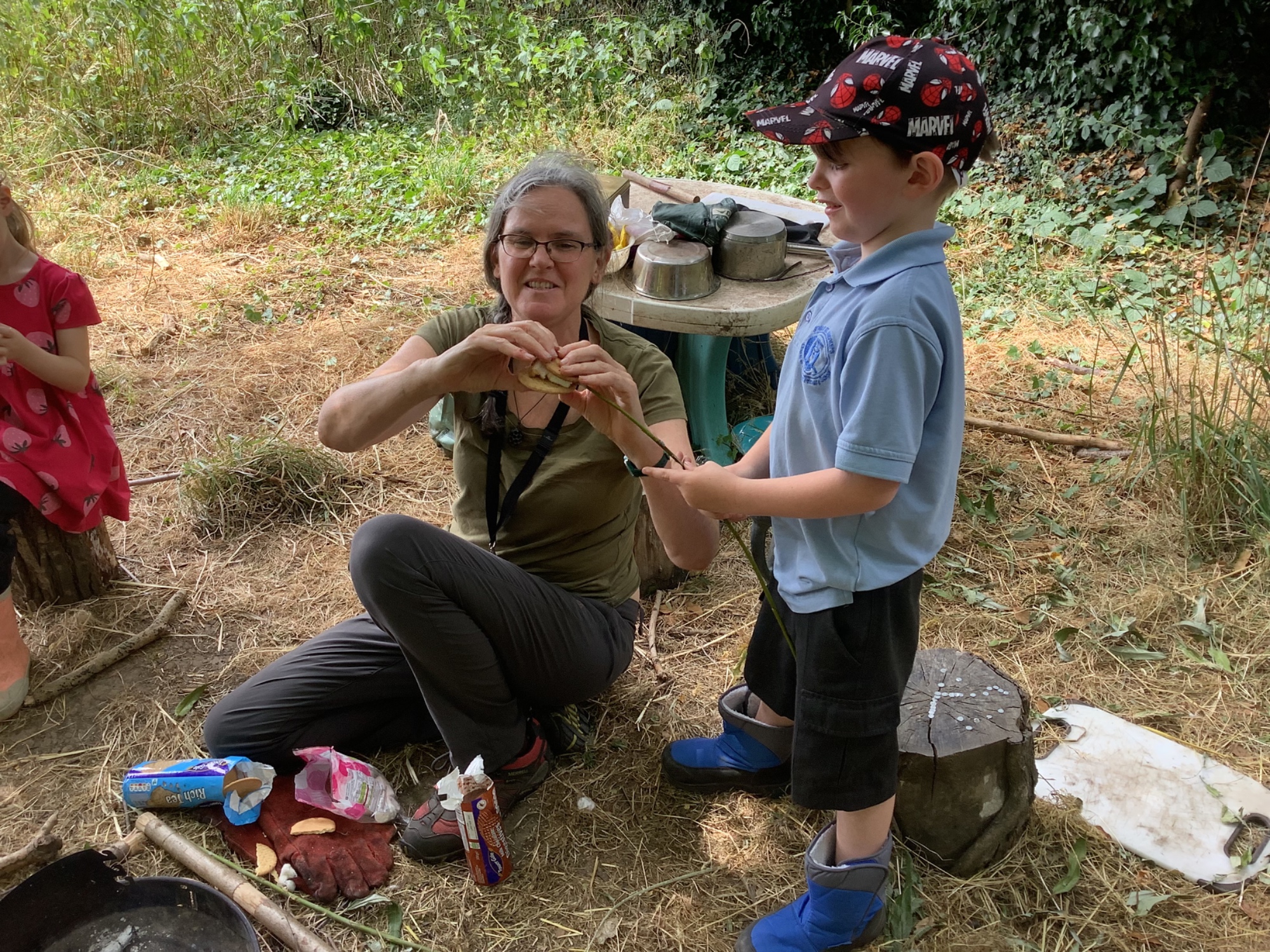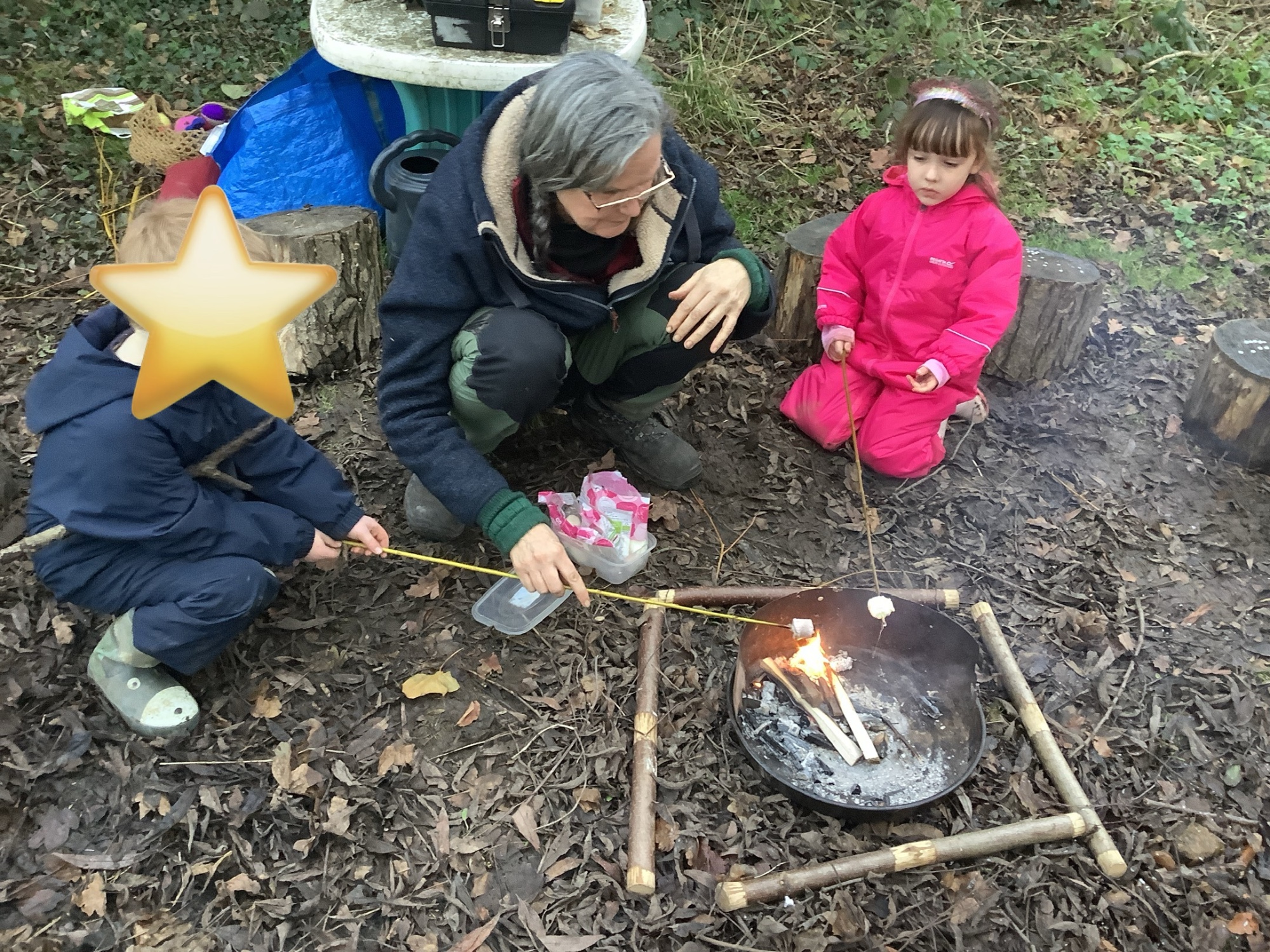 We had a great session at forest school today and played in the den, and played musical instruments. We made a fire remembering the fire rules to not come into the circle. We then toasted marshmallows which were yummy.