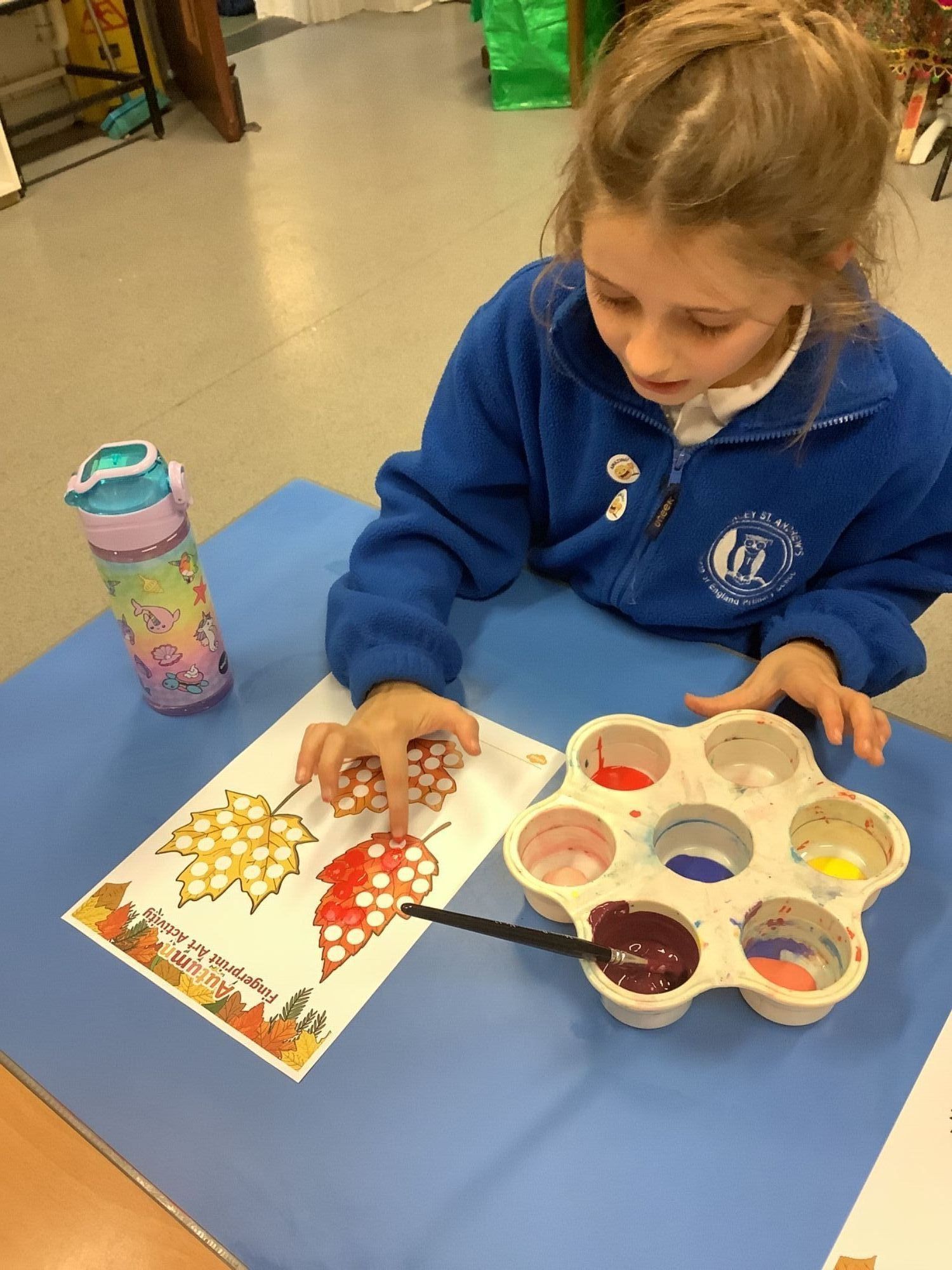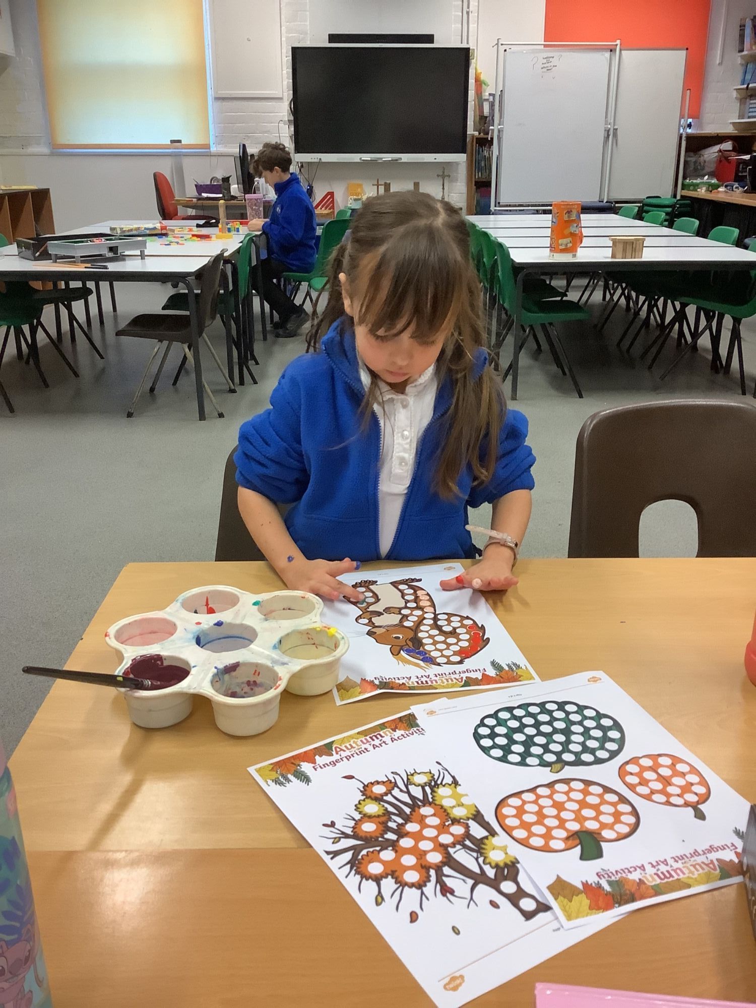 The children enjoyed exploring with different colours of paint to complete finger painting activities.