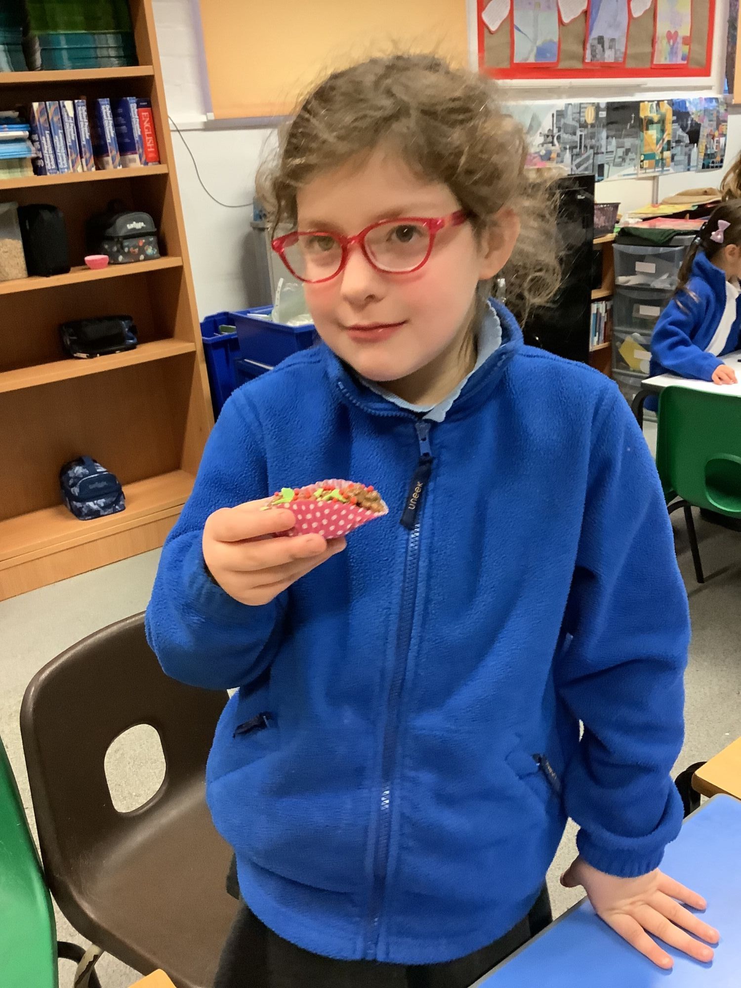 This afternoon, we have made chocolate rice crispy cakes. The children really enjoyed making them, and, of course eating the yummy cakes.