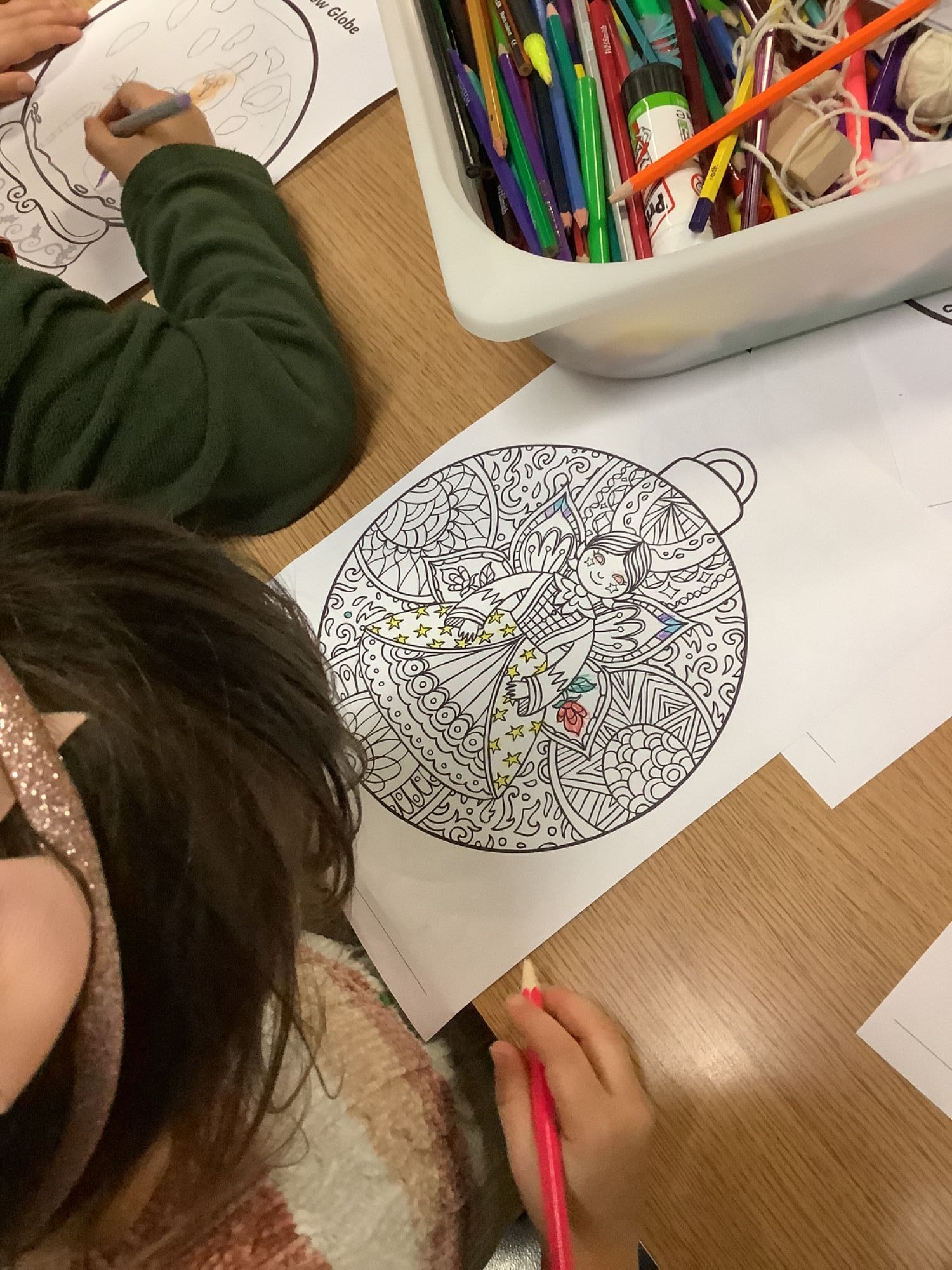 Enjoying a range of colouring and drawing together.