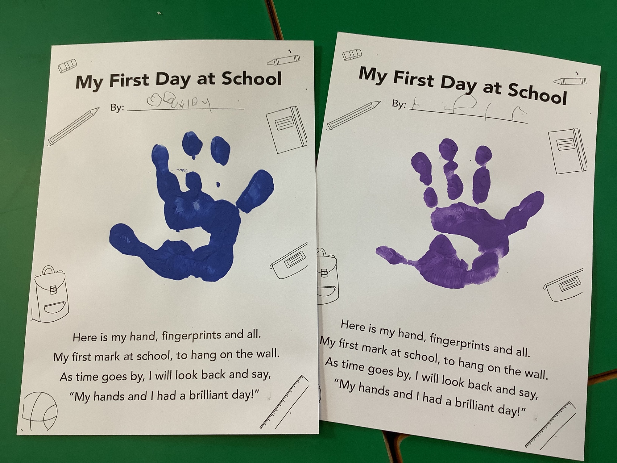 We have been playing outside, doing some hand prints, asking questions in a group and playing with our new friends.