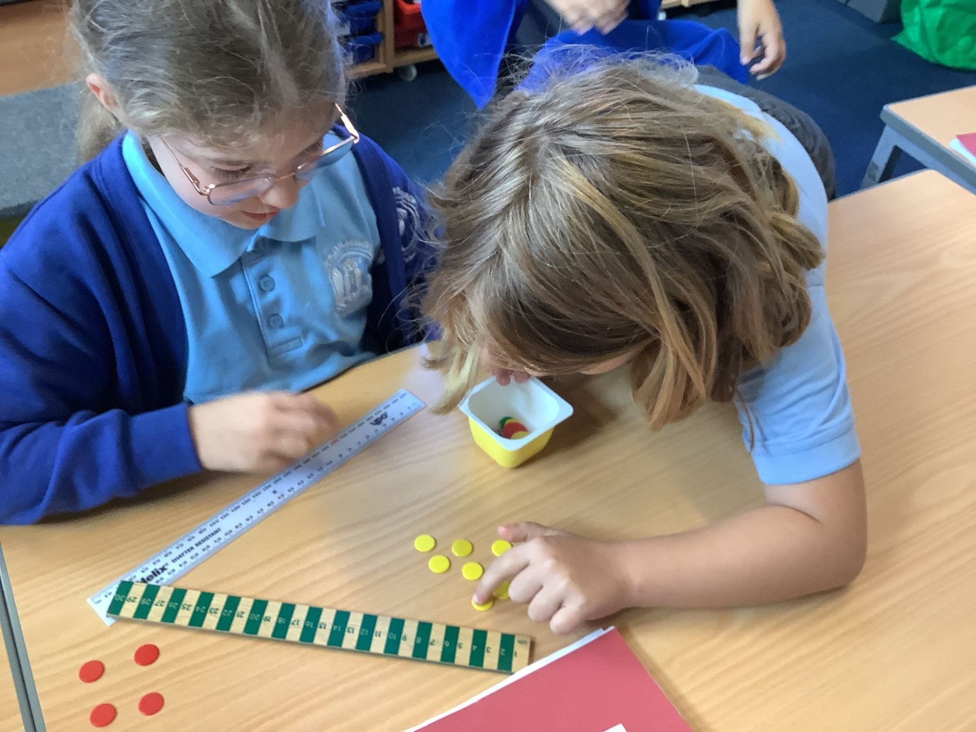 Year1 and 2 have been looking at greater than, less than and equal to and using lots of equipment to support their understanding.