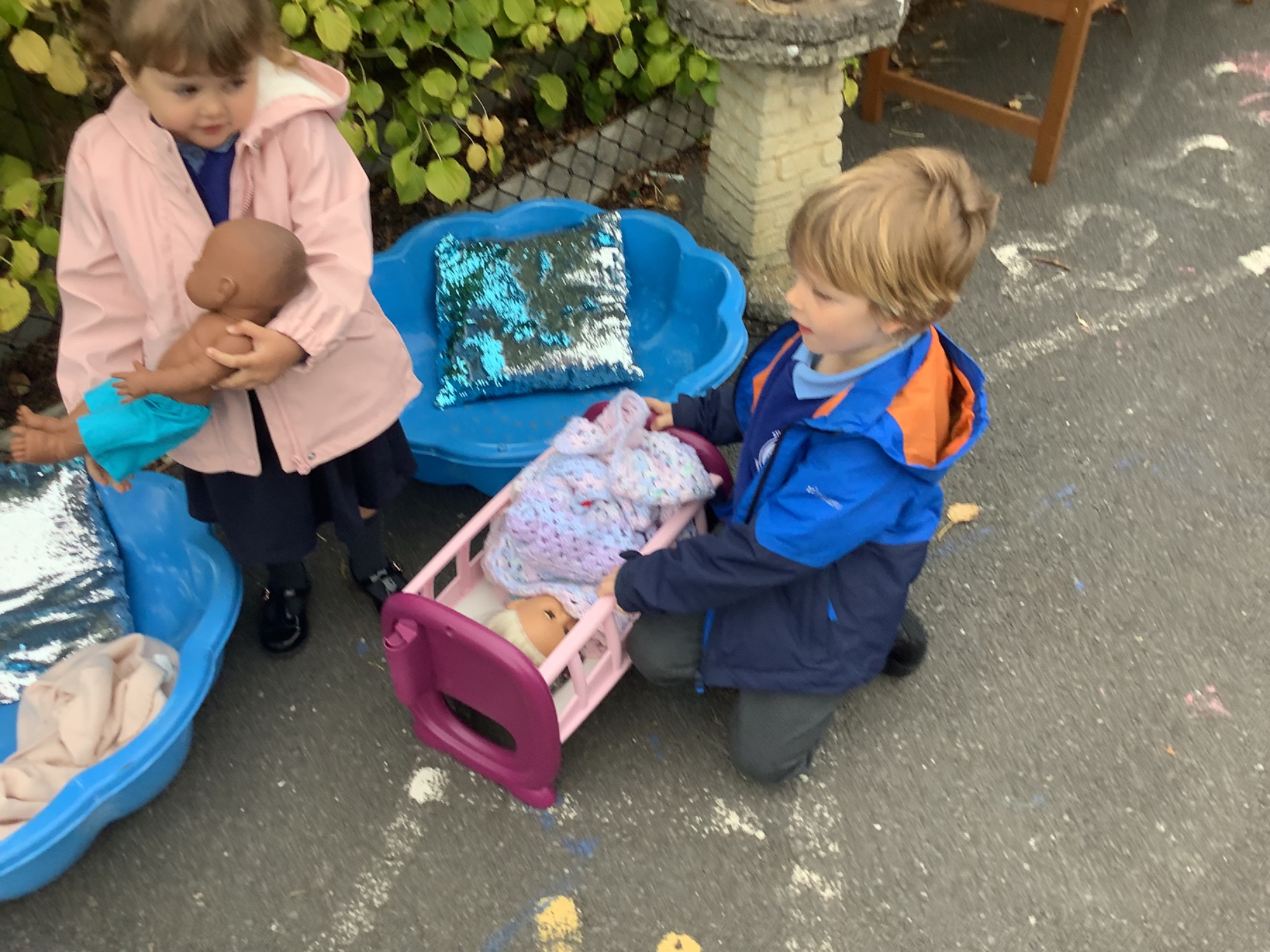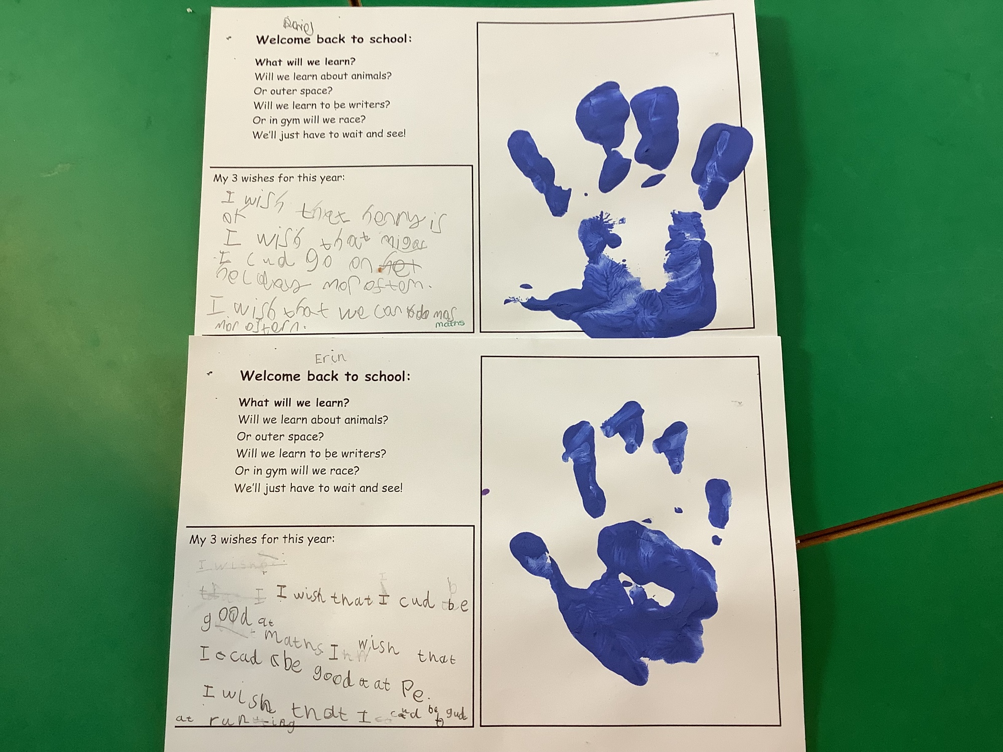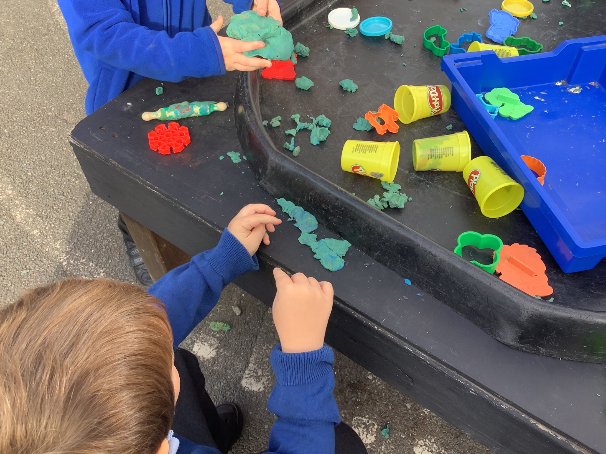 We have had a great first morning at school and have played outside exploring the provision; on the ride ons, drawing in chalk, using the hurdles and so much more. We have made a wish for the year with some magical play doh and have been asking each other lots of questions.