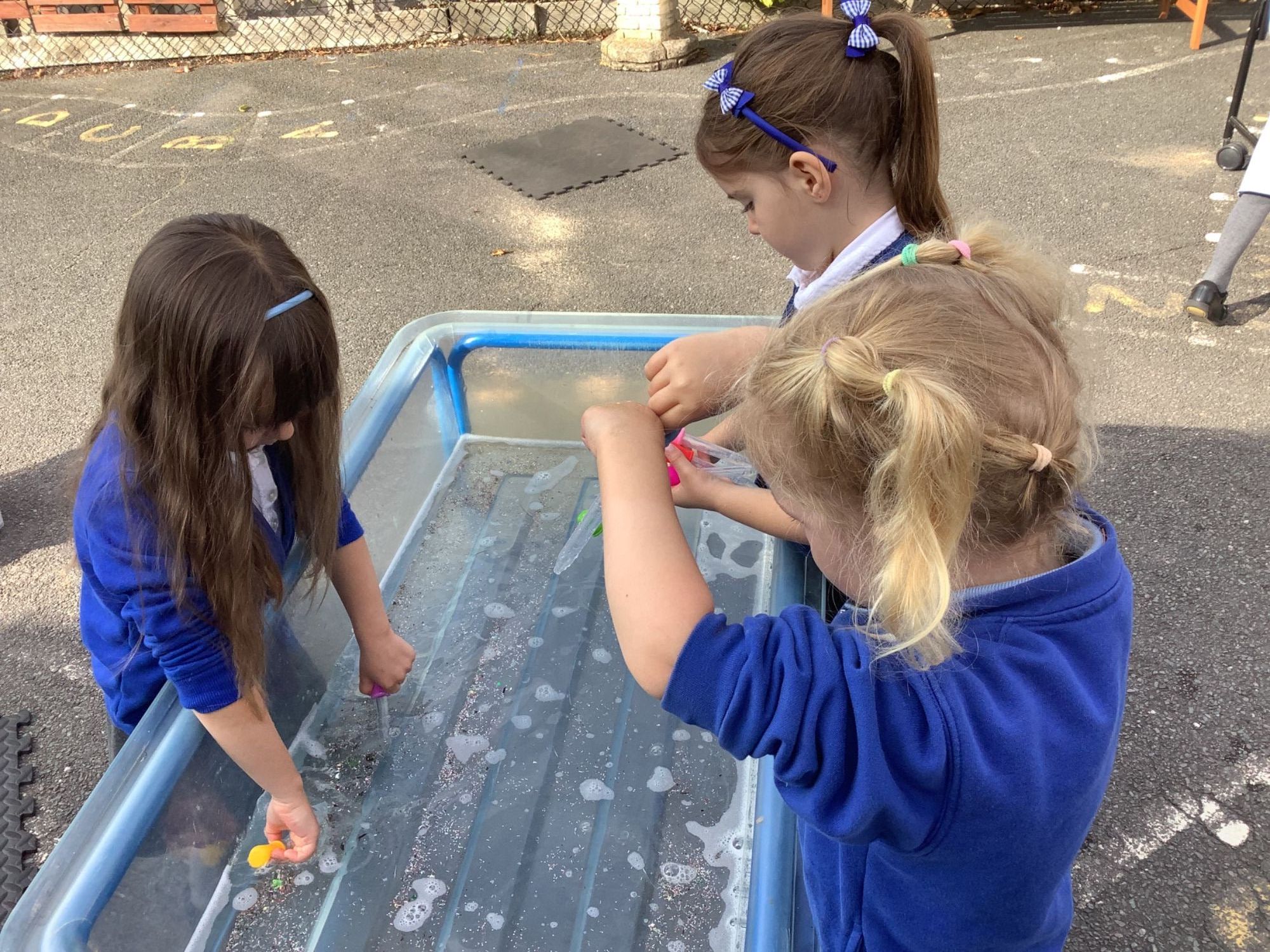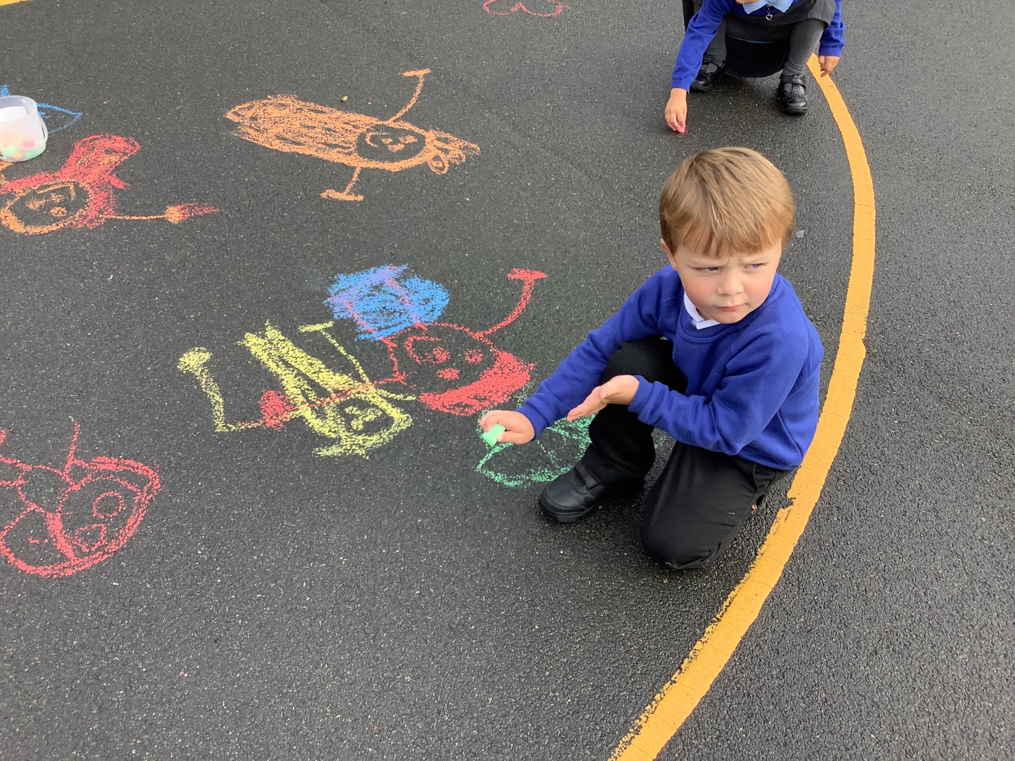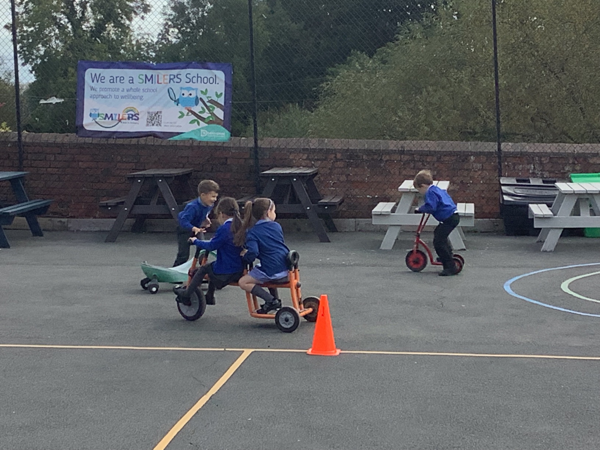 We have had a great first morning at school and have played outside exploring the provision; on the ride ons, drawing in chalk, using the hurdles and so much more. We have made a wish for the year with some magical play doh and have been asking each other lots of questions.