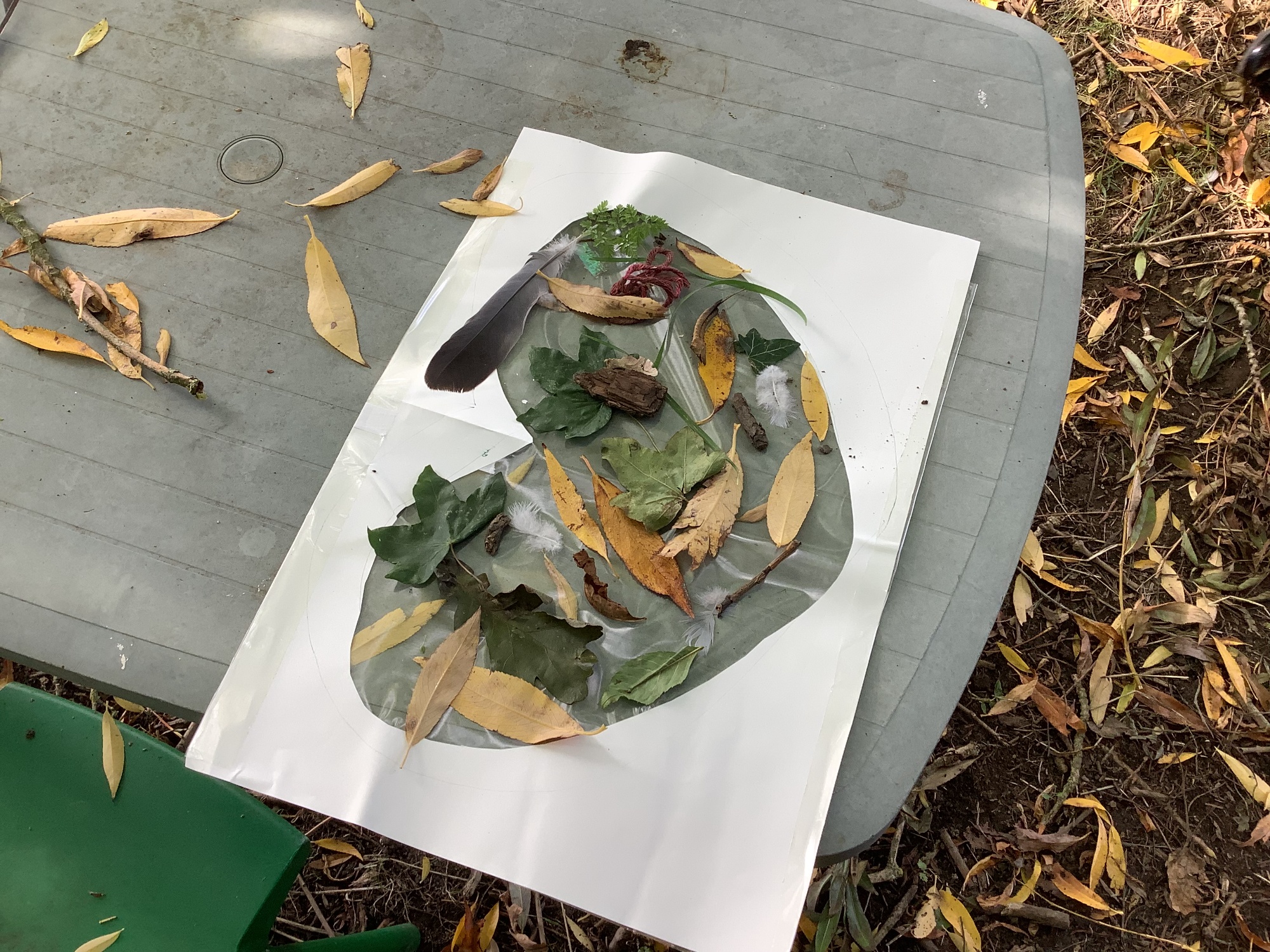 We have been looking at awe and wonder all around us which led us on an Autumn hunt. We have collected several pieces of our natural world to create a sun catcher together.