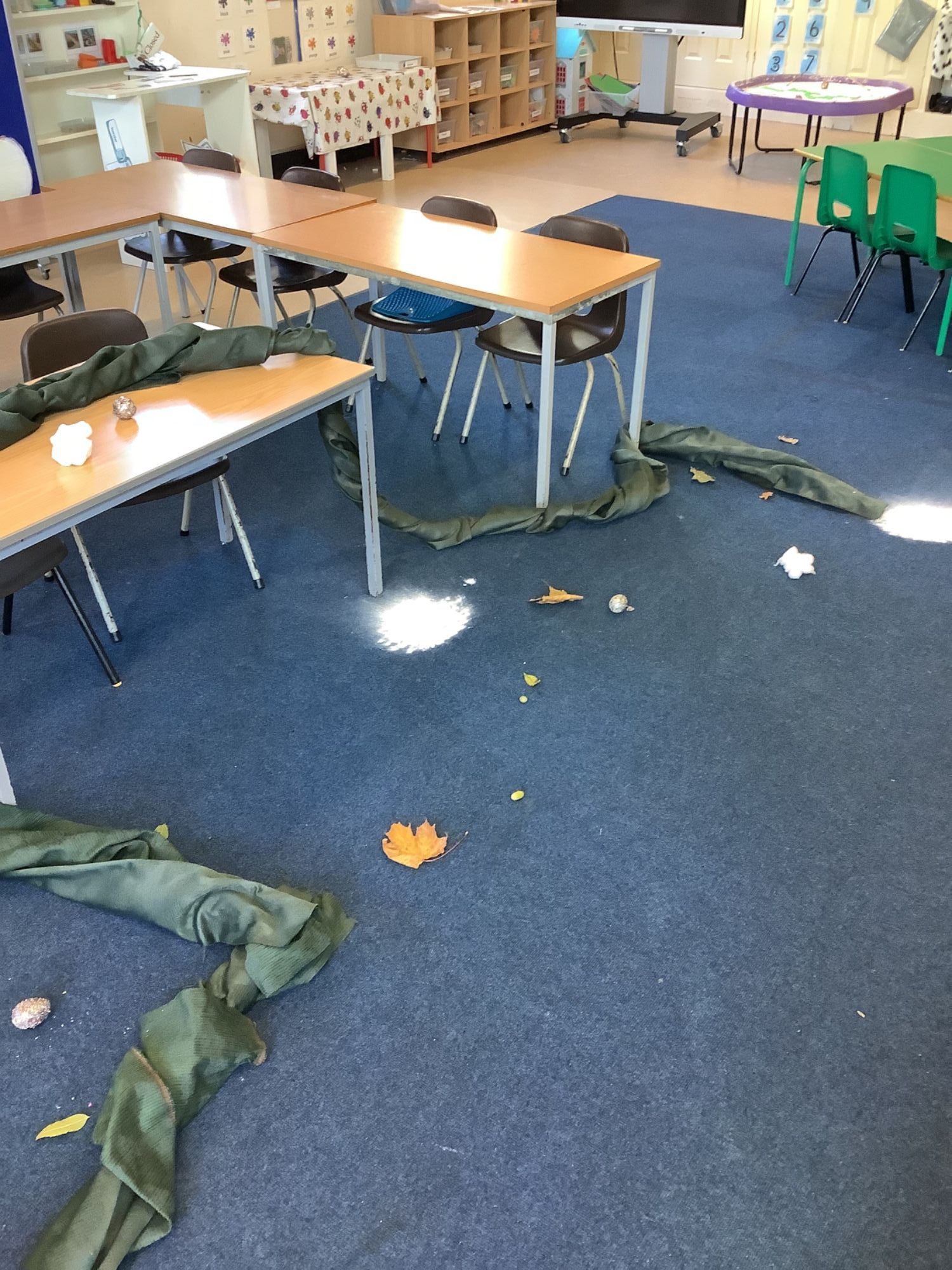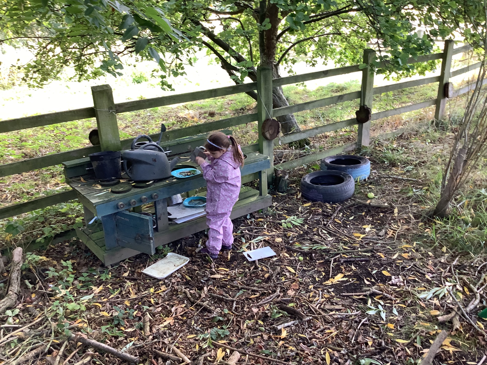 We have had a great time in forest school we have explored the area and played with instruments, the hammock and the mud kitchen.