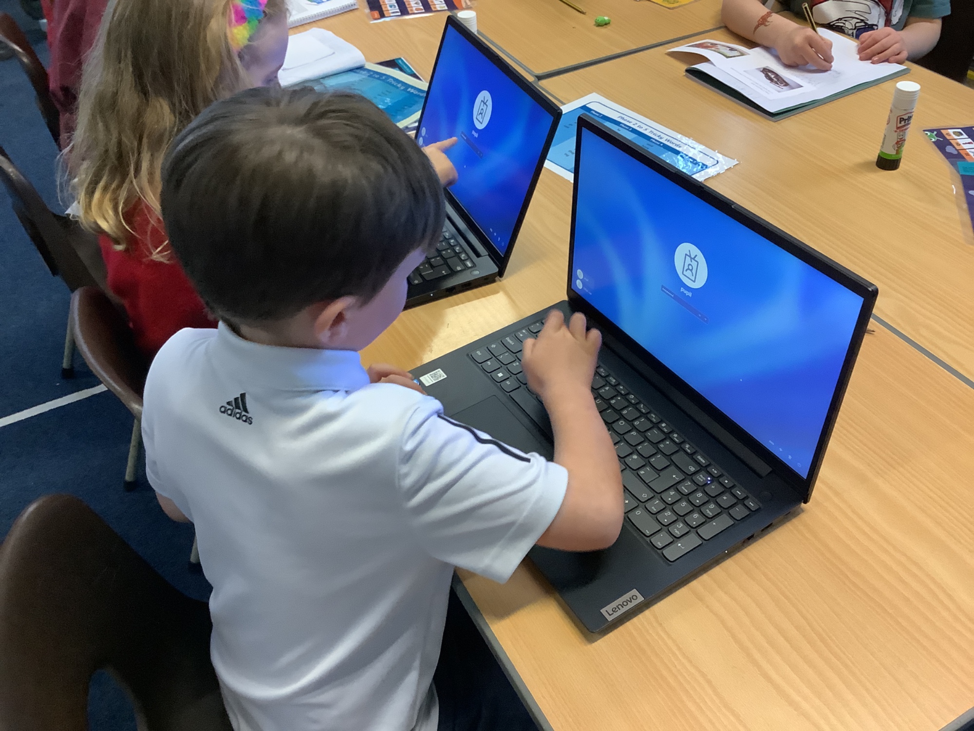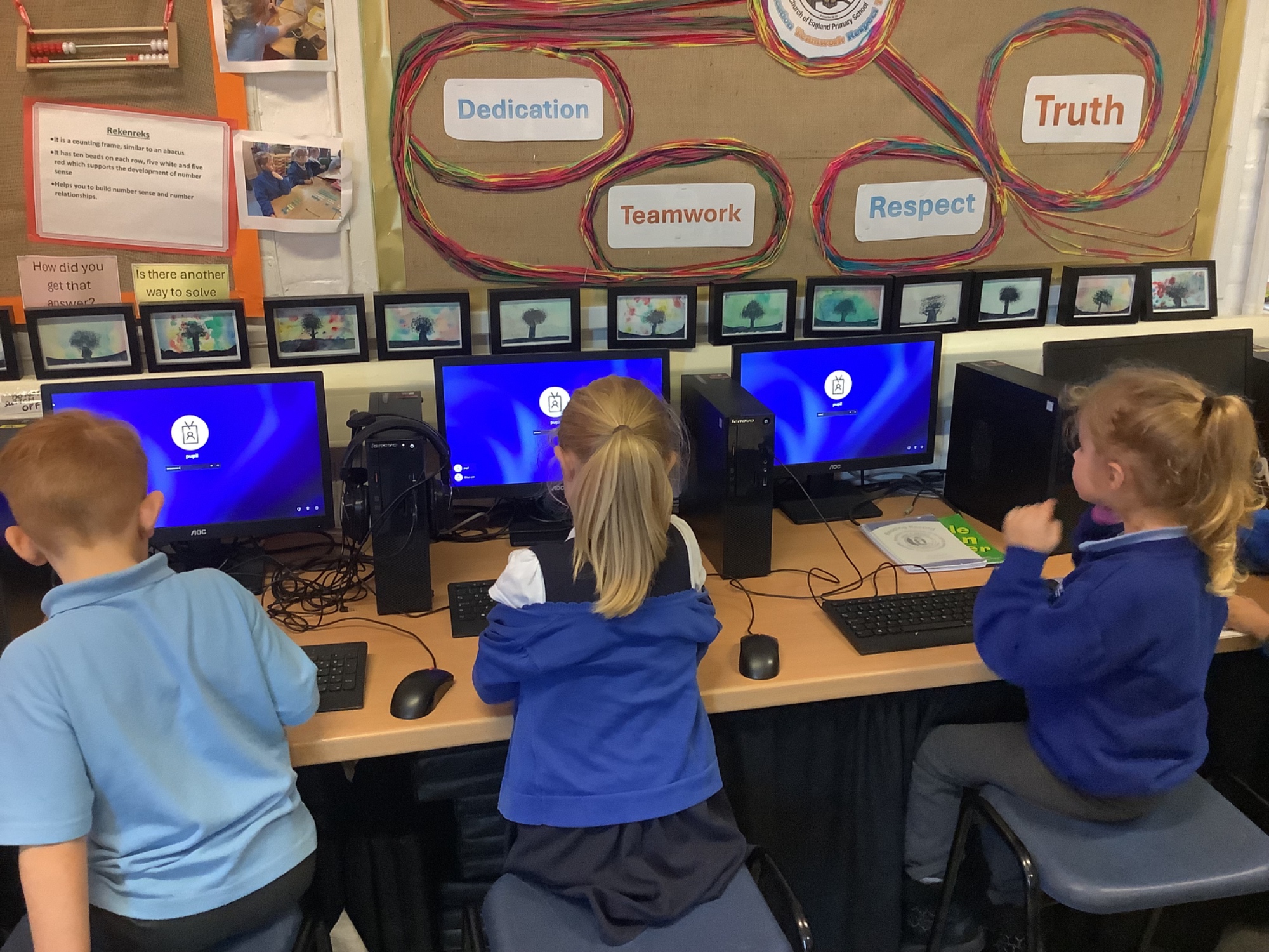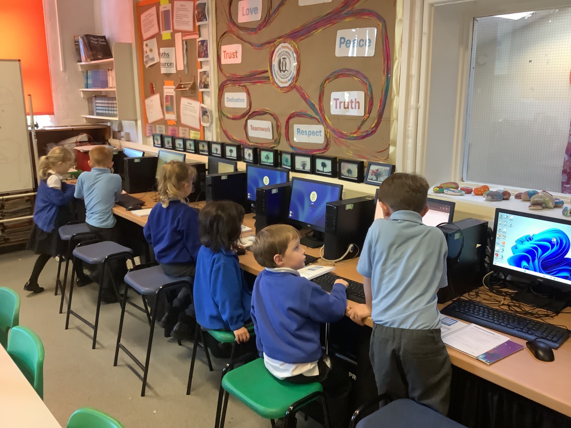 We have been practising logging onto the school computers and getting onto purple mash to complete an activity. Receptions had a go at turning the iPad on and playing a game.