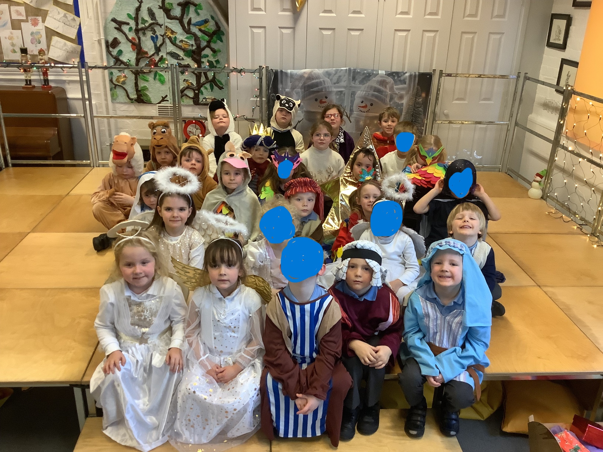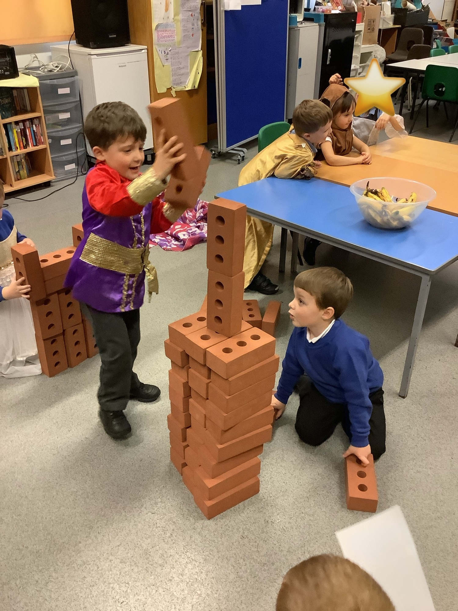 The Reception children acted out the Nativity story using puppets and dressing up. They also used bricks to make a stable.