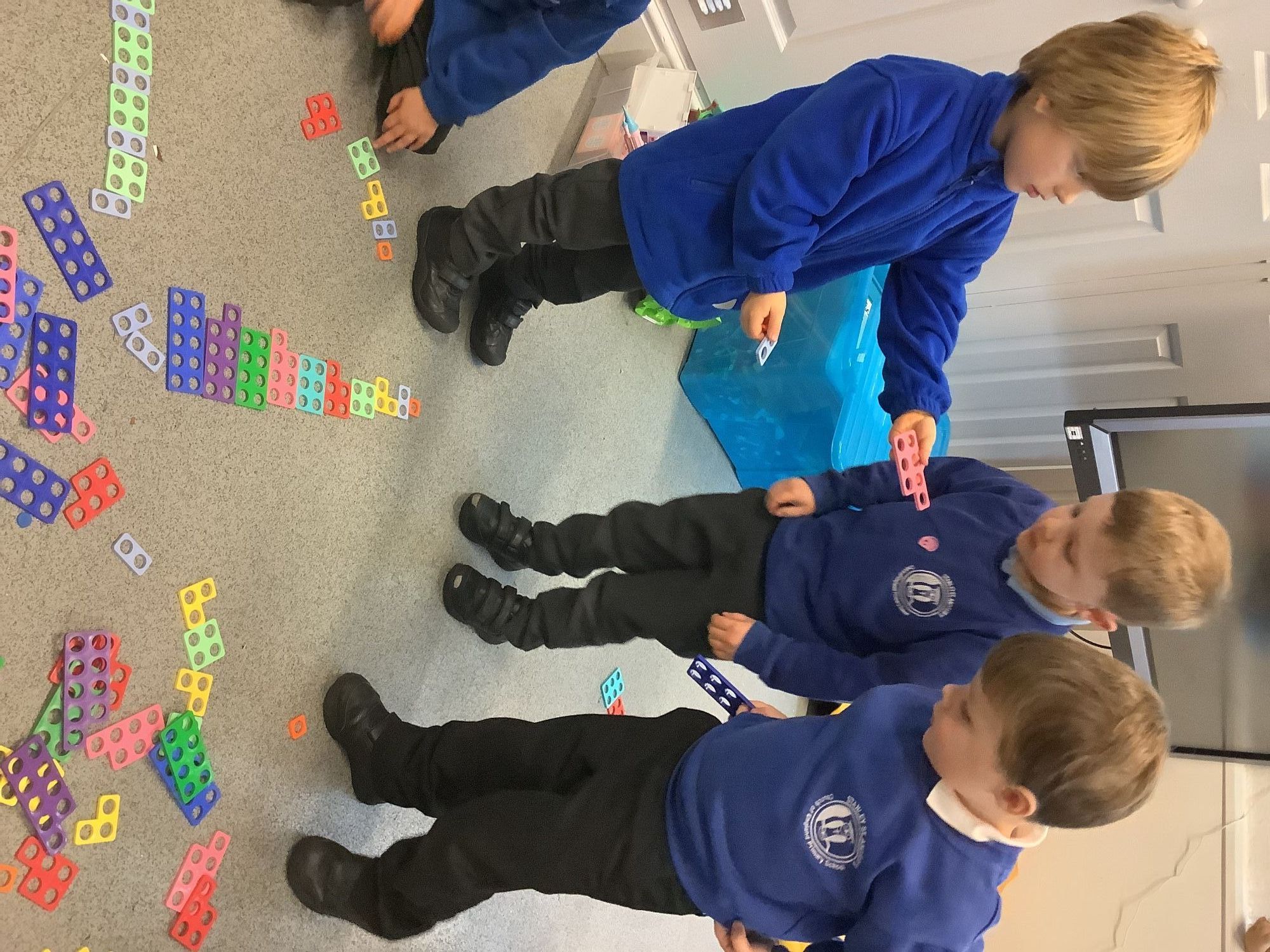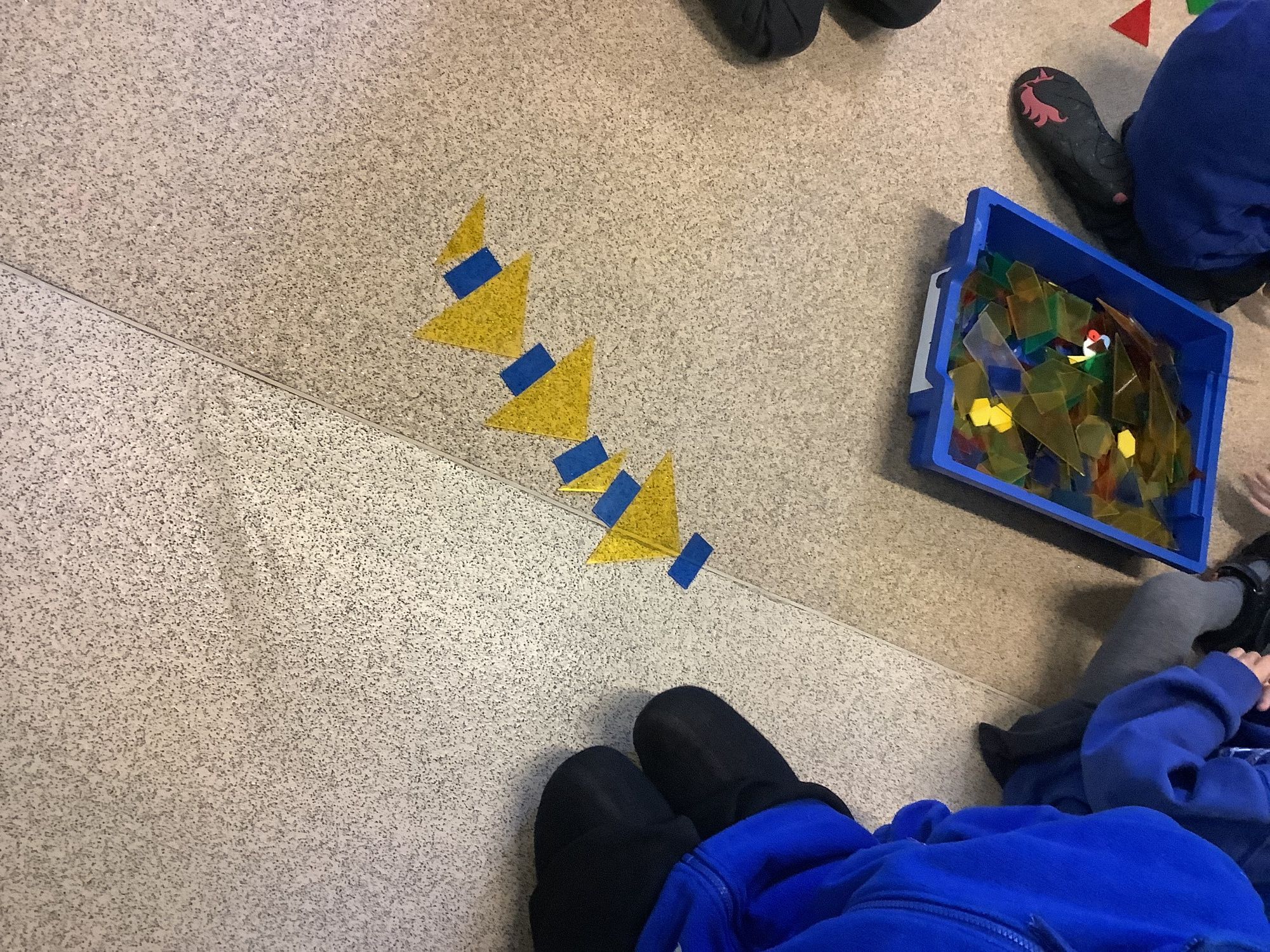 We are exploring shapes as a class. Reception have identified the four basic shapes and have used these to build pictures. Year 1 and 2 children have identified more shapes, how many sides, how many vertices and started to answer word problems using shapes and patterns.