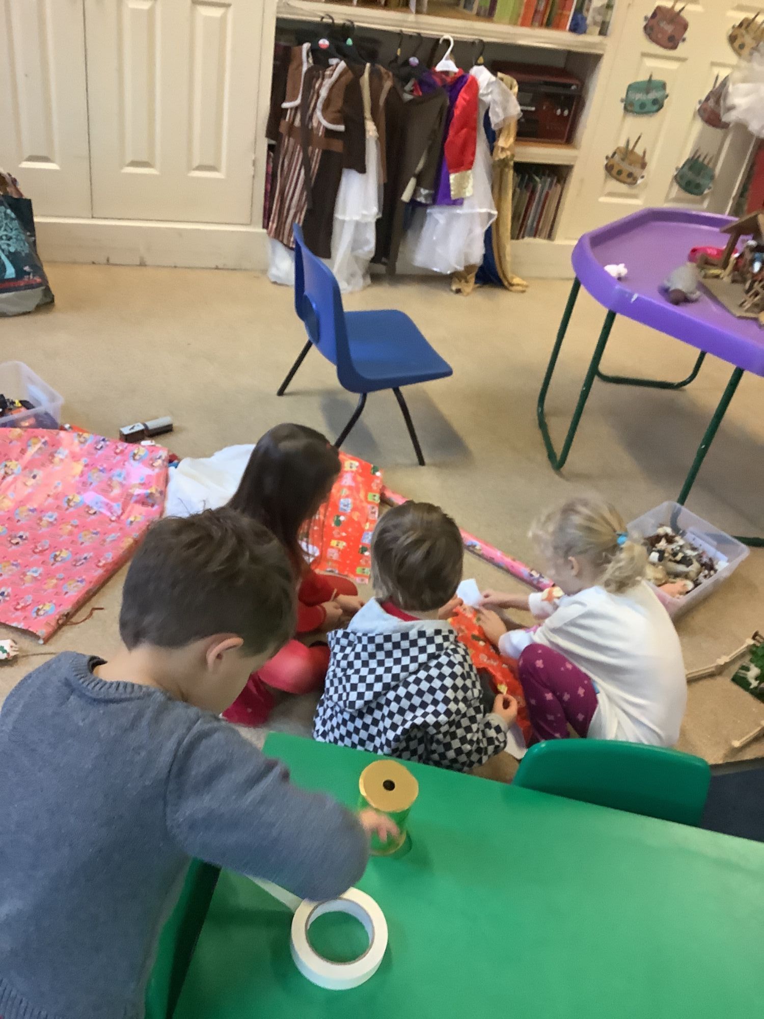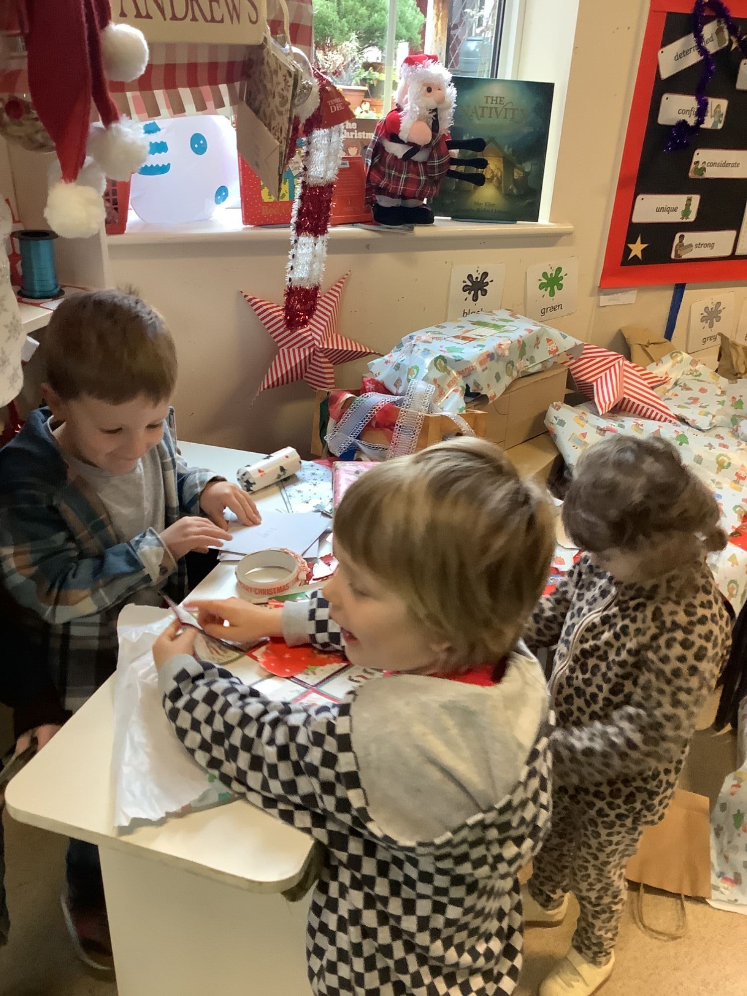 Thank you to parents and grandparents who have donated lots of amazing Christmas bits and bobs so we could create our Santa workshop - wrapping station. All of the children are very eager to get stuck into this area.