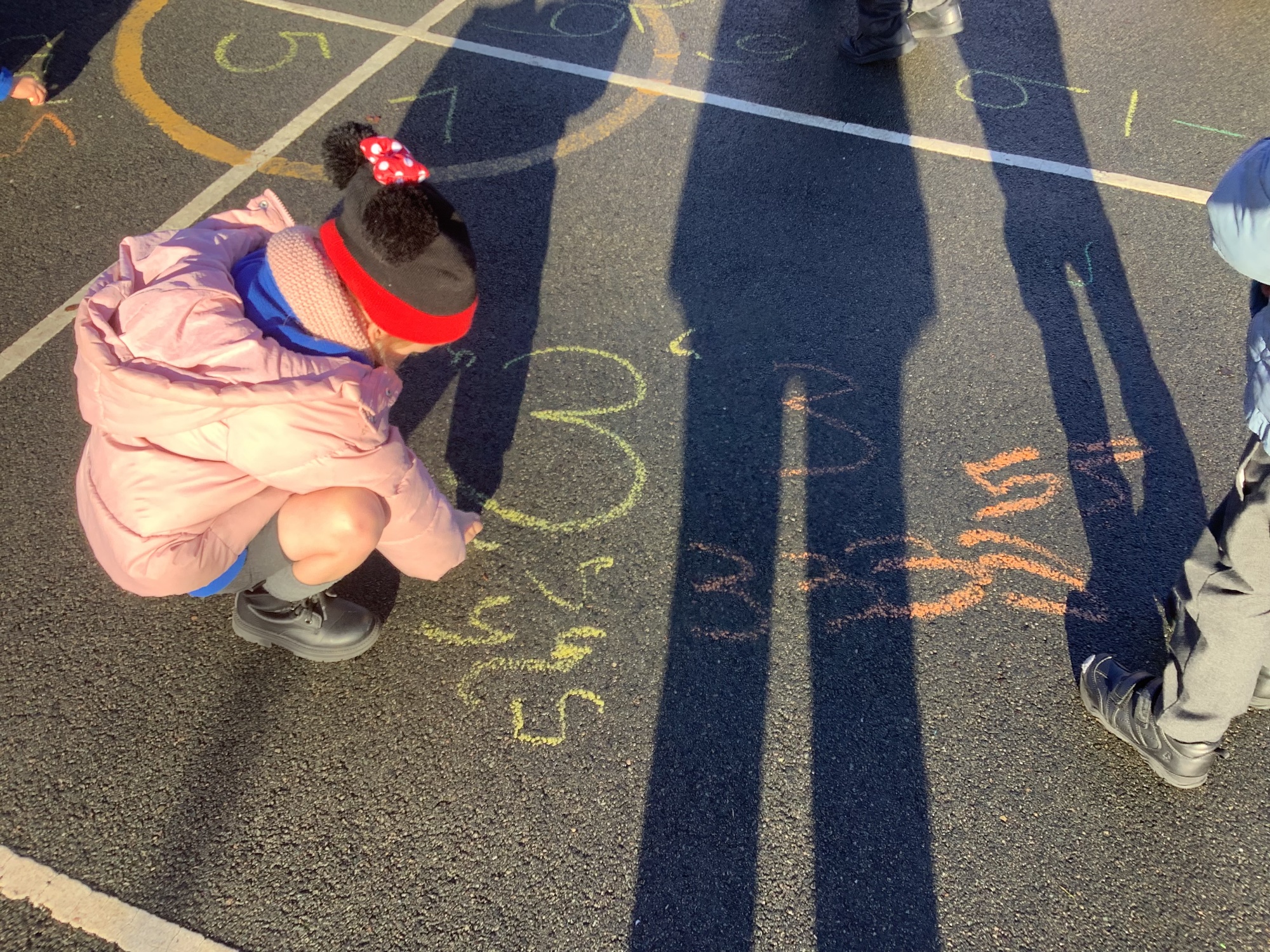Reception children have been using chalk outside to support their number formation of numbers to 10.
