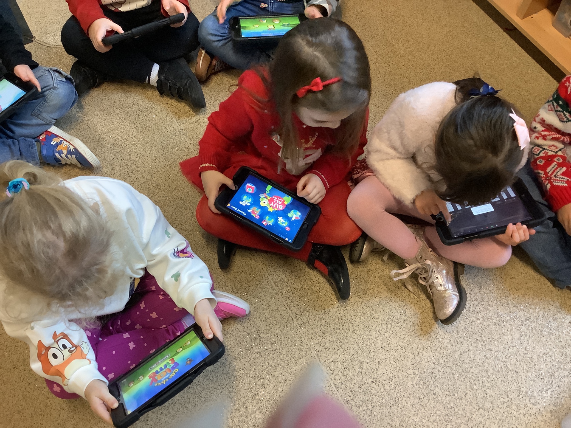The receptions have been playing a game on the tablets and discovering how to turn the volume up and down and swapping games.