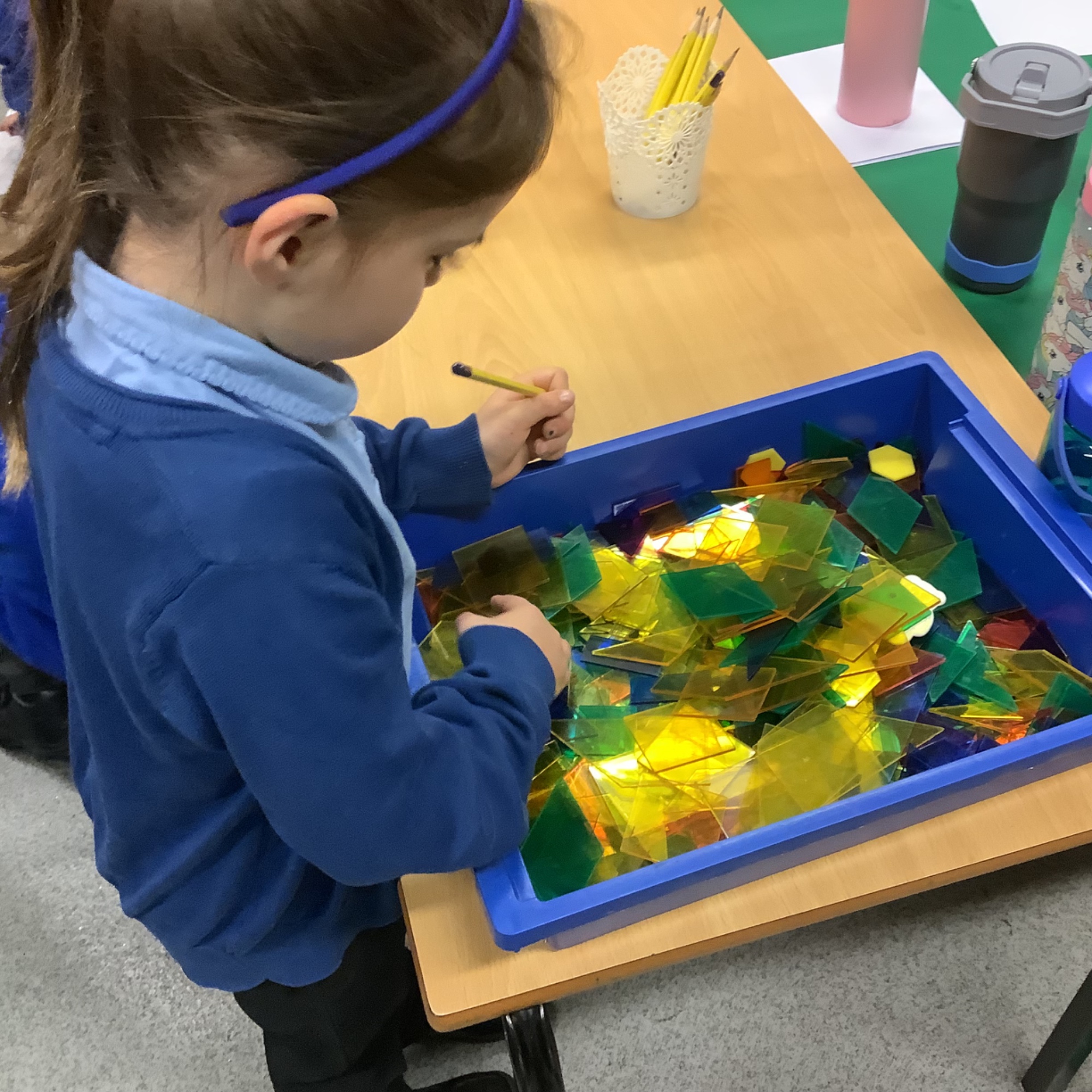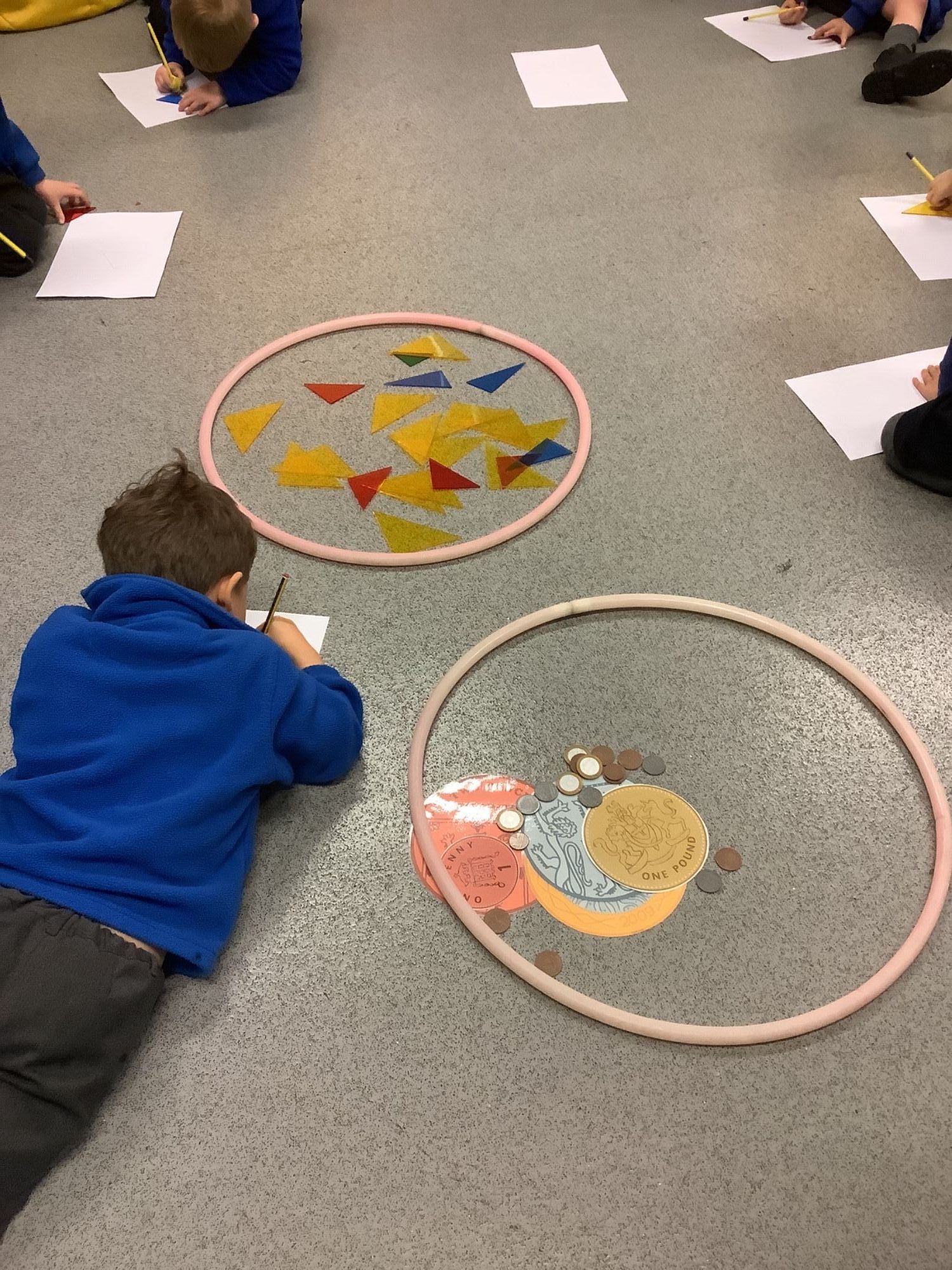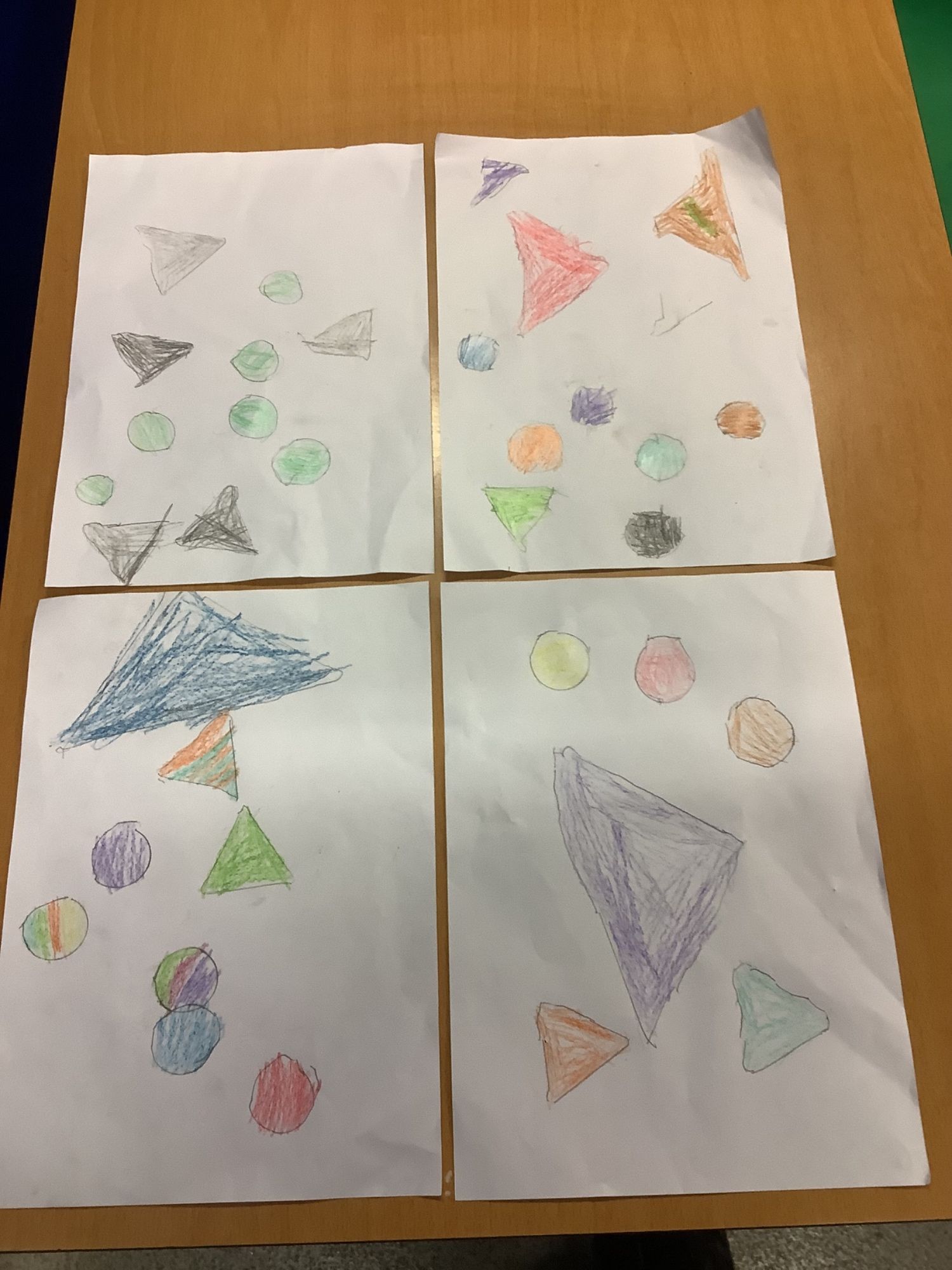 Today we have been sorting circles and triangles and then drawing around them. We have spoken about how many sides the shapes have and looked around the classroom to find them in our environment.