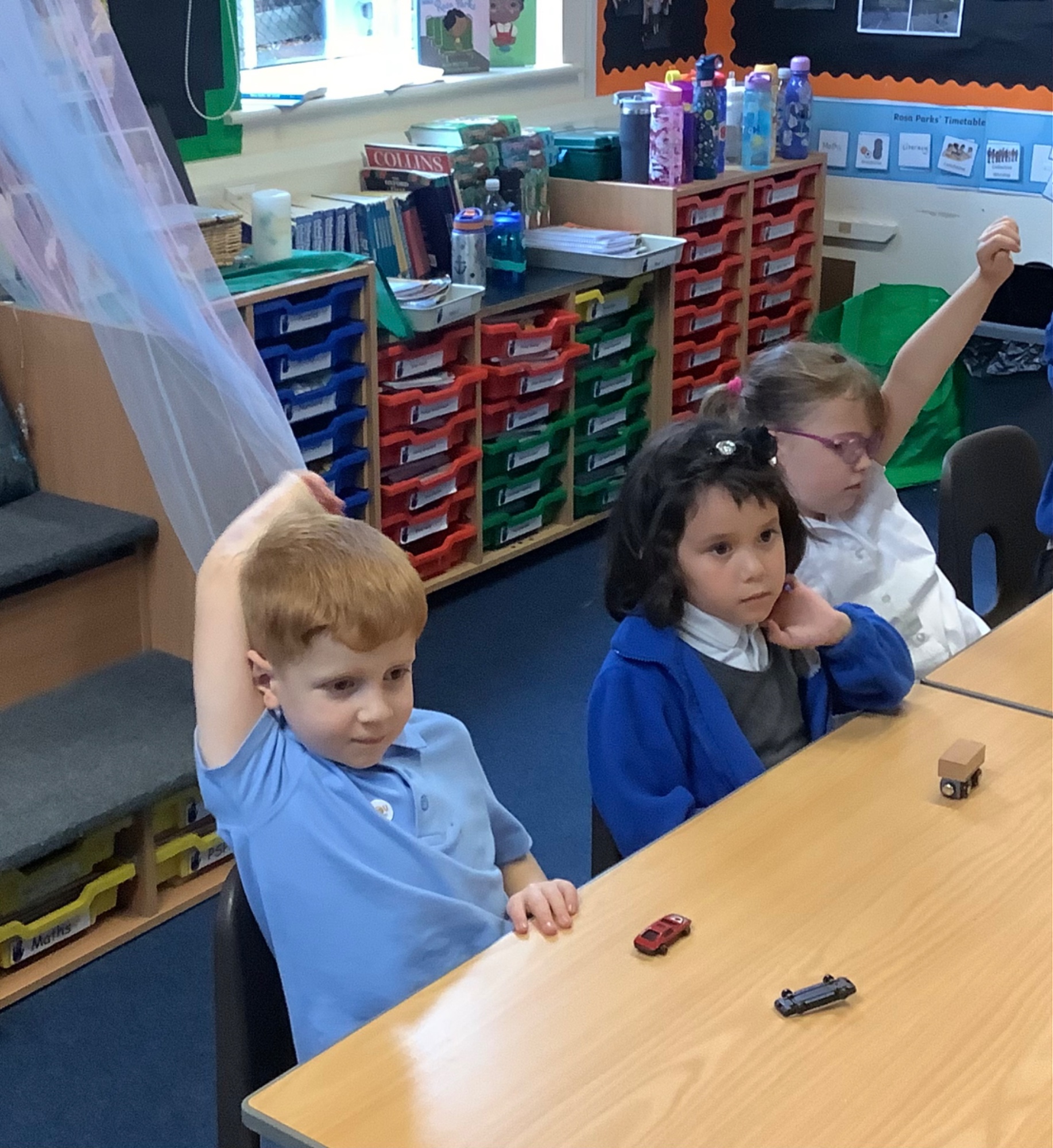 This afternoon we introduced our DT for this term. We talked about vehicles and what they were and what they did. We explored various vehicles including cars, trains, tractors, and buses.