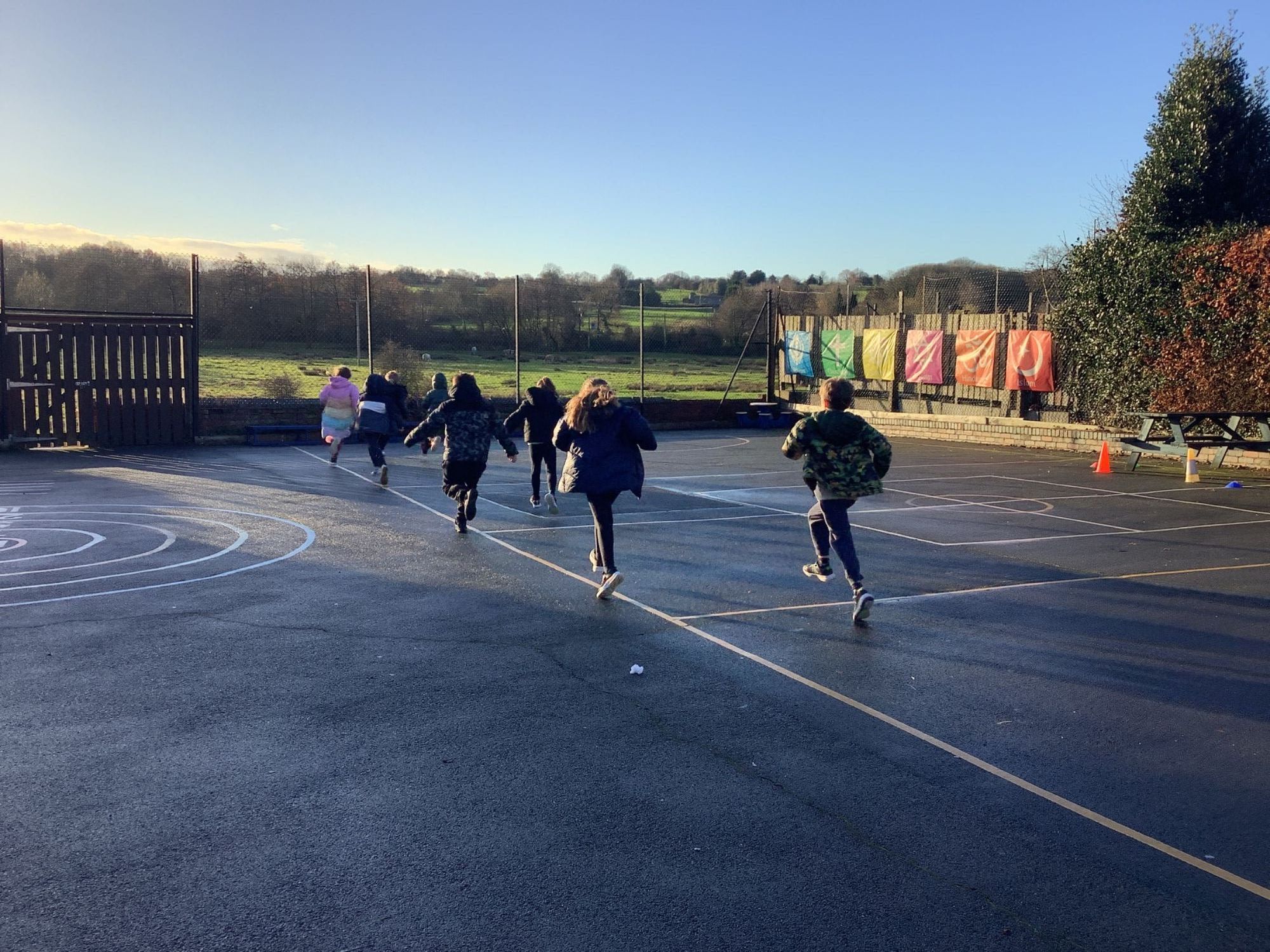 This morning we did a sponsored run around the playground.