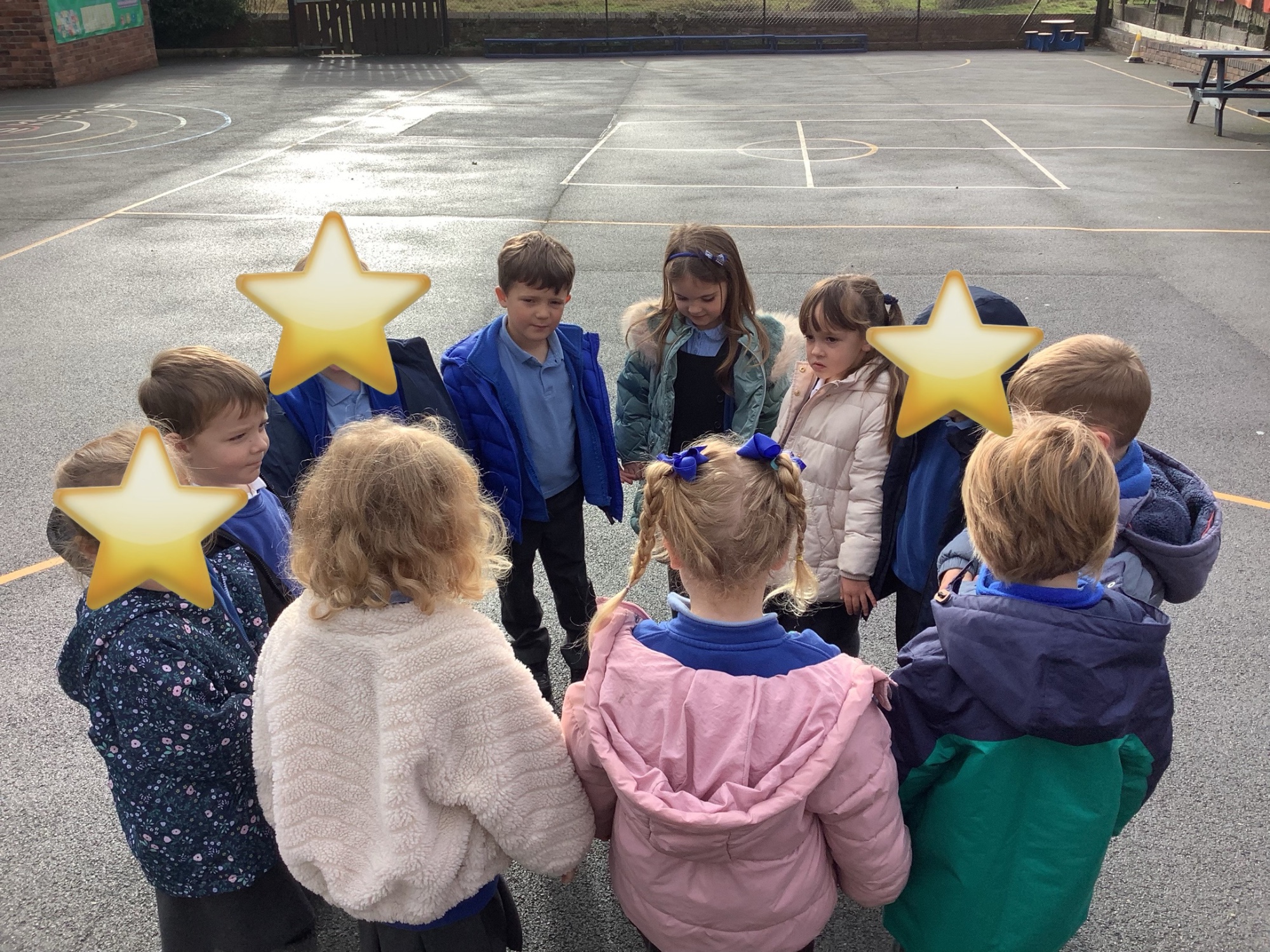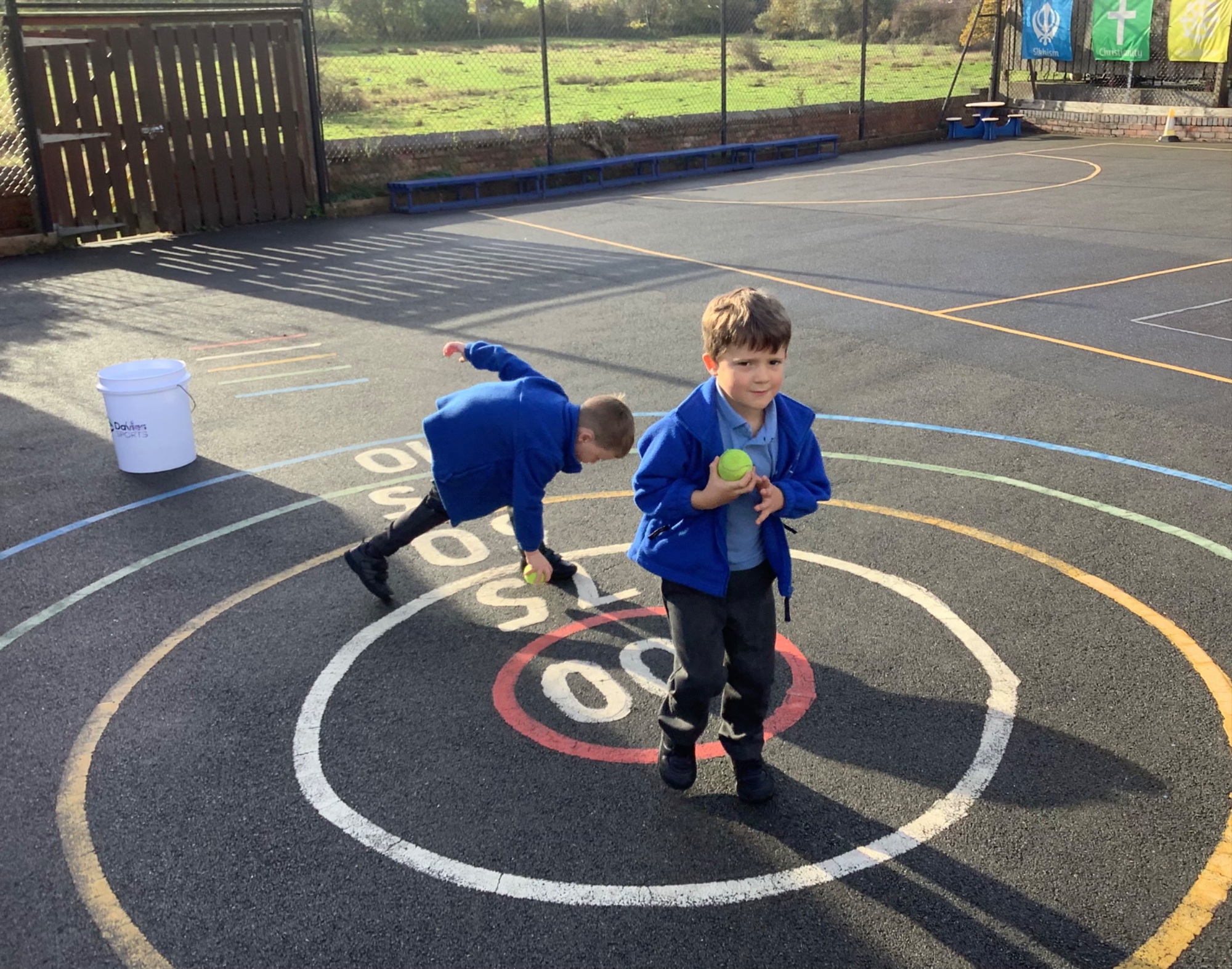 This morning we made circles and triangles using our bodies and skipping ropes. We also practised throwing and catching a tennis ball to strengthen our hands. We wiggled our fingers and made firework sounds as we opened and closed our hands.