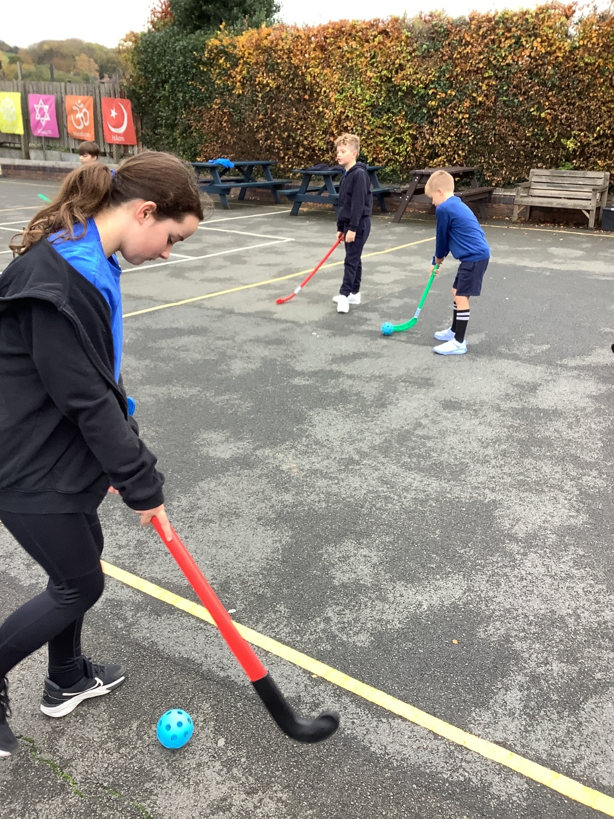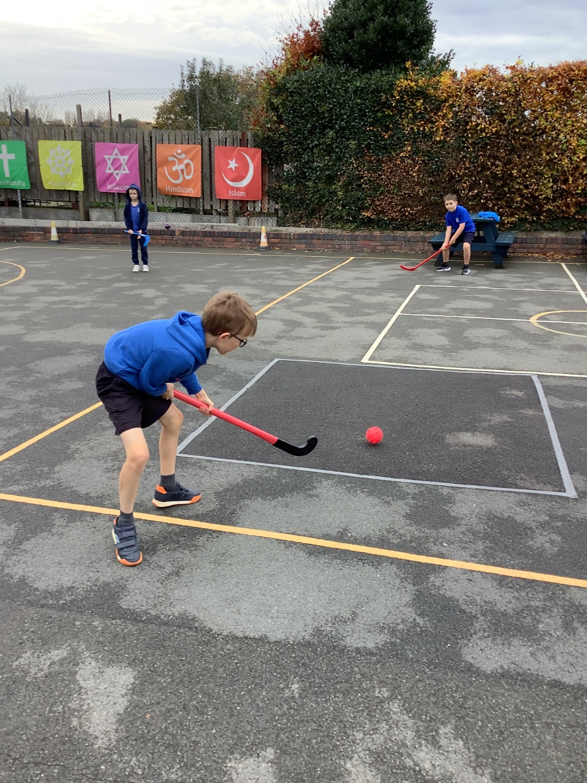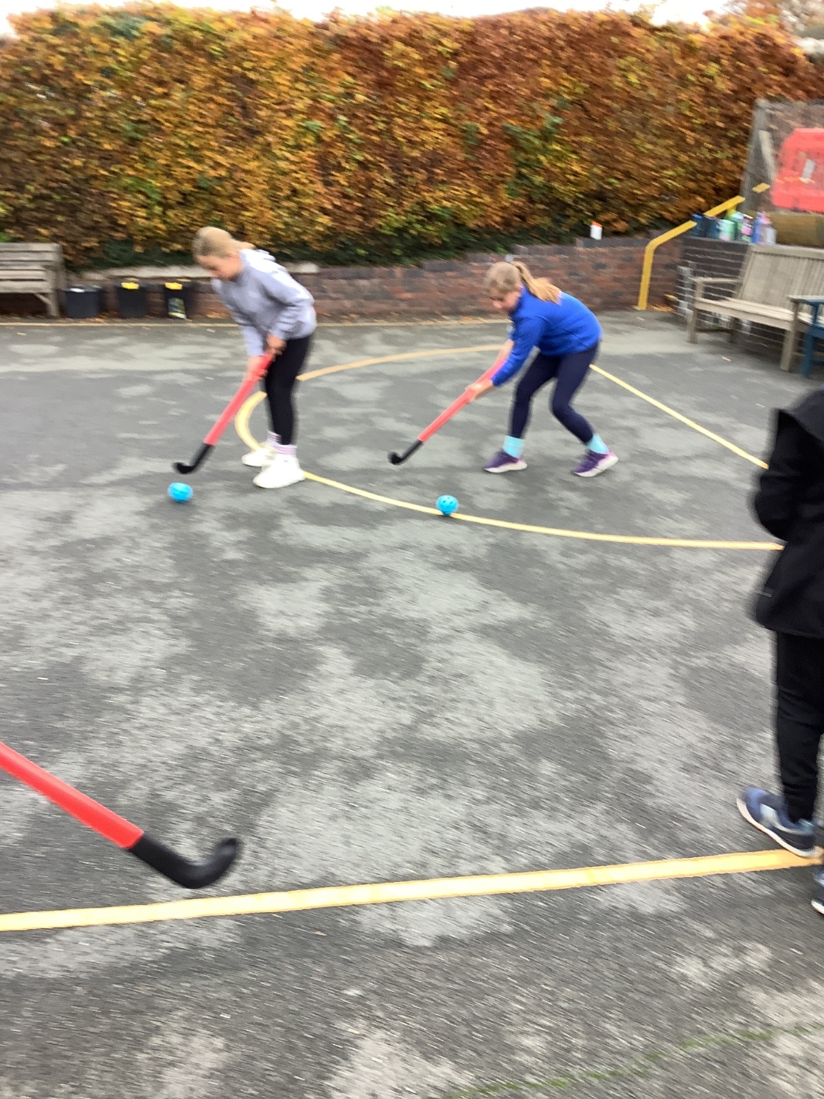 PE – Hockey – looking at hand positioning, using the stick correctly and having control of the ball.