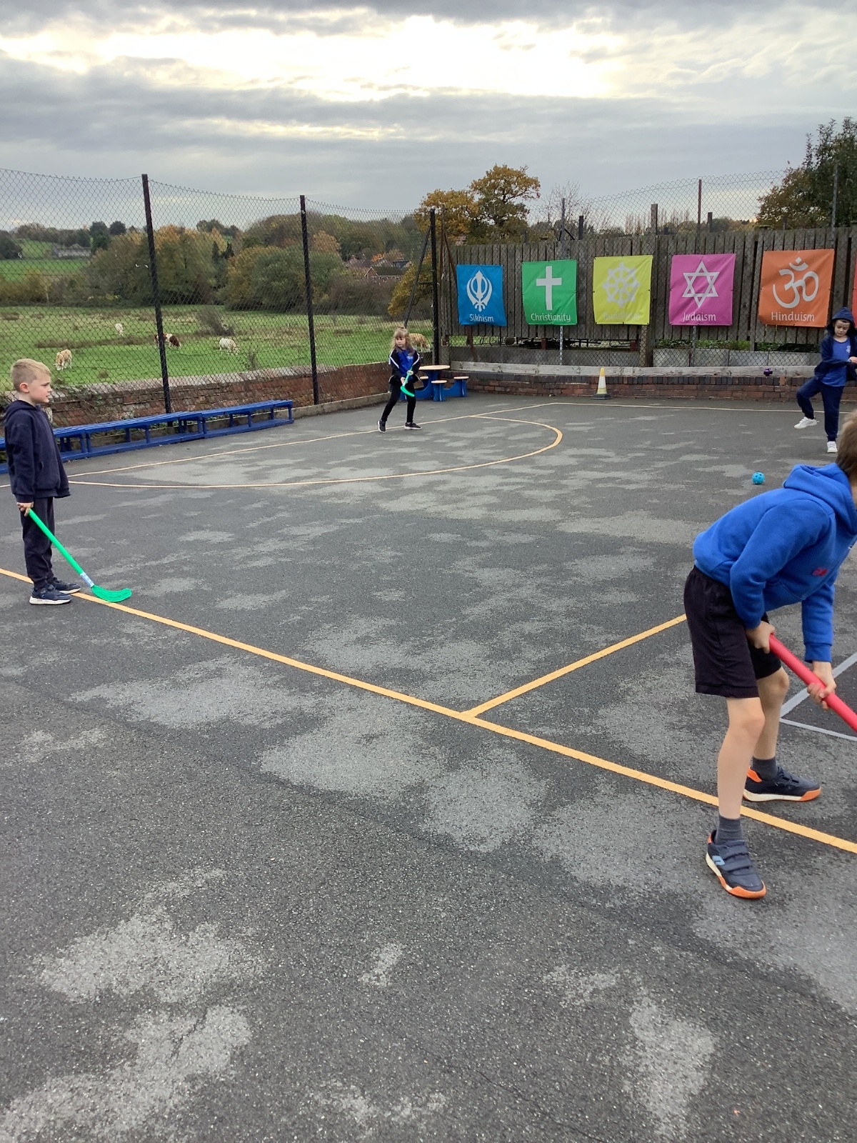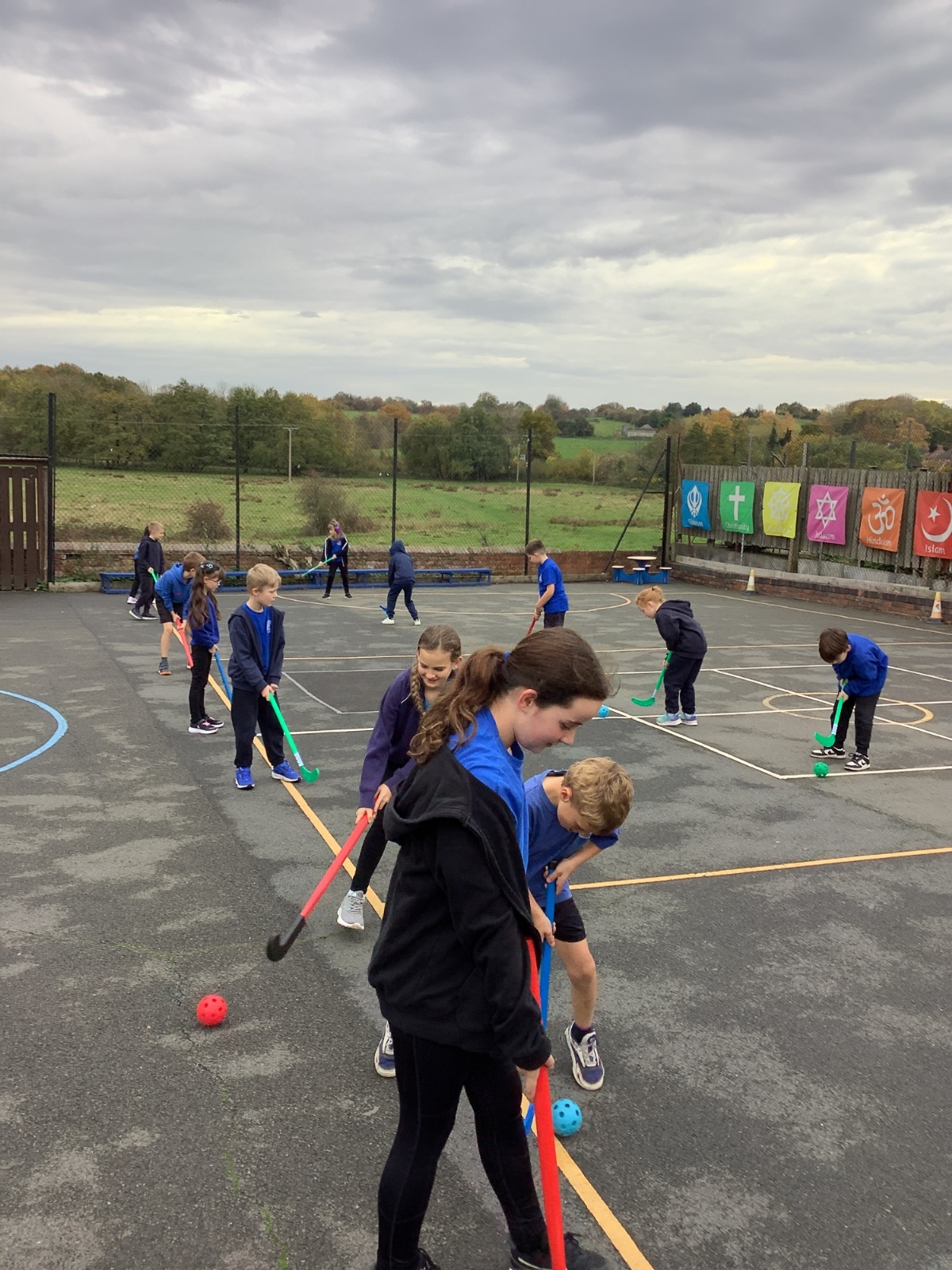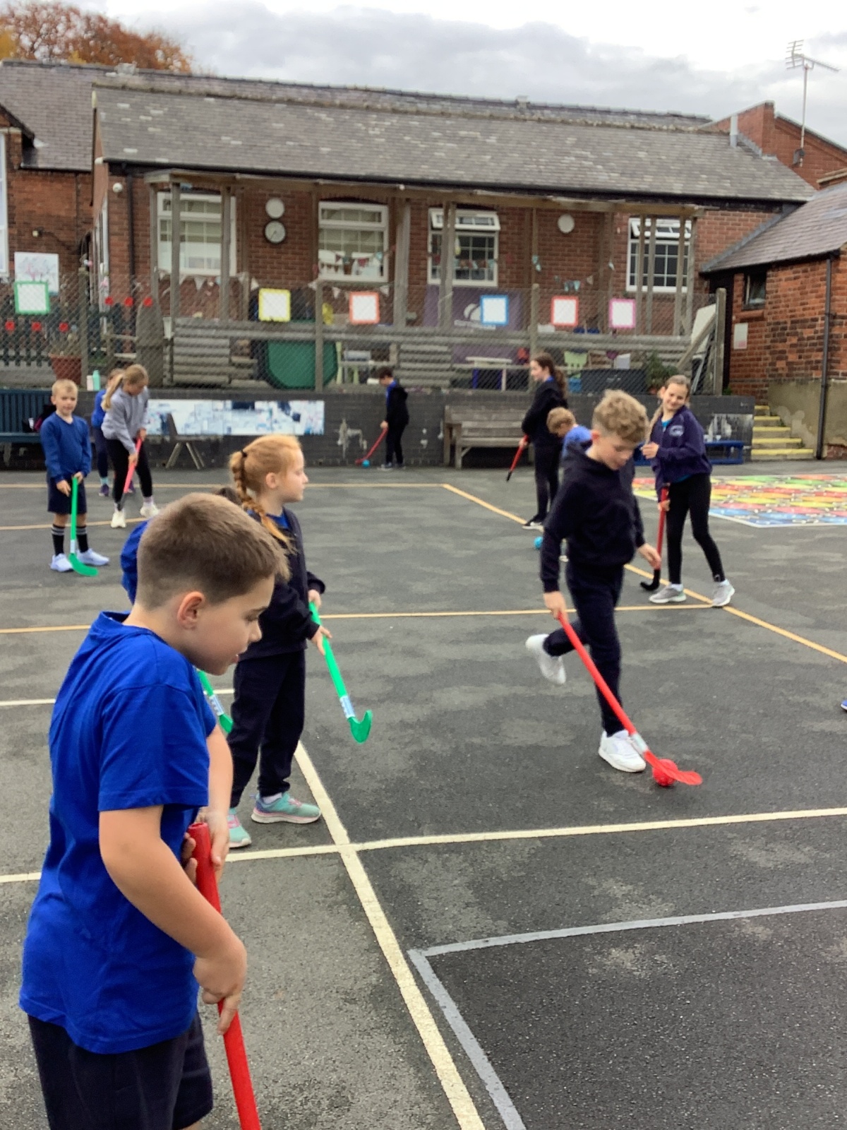 PE – Hockey – looking at hand positioning, using the stick correctly and having control of the ball.