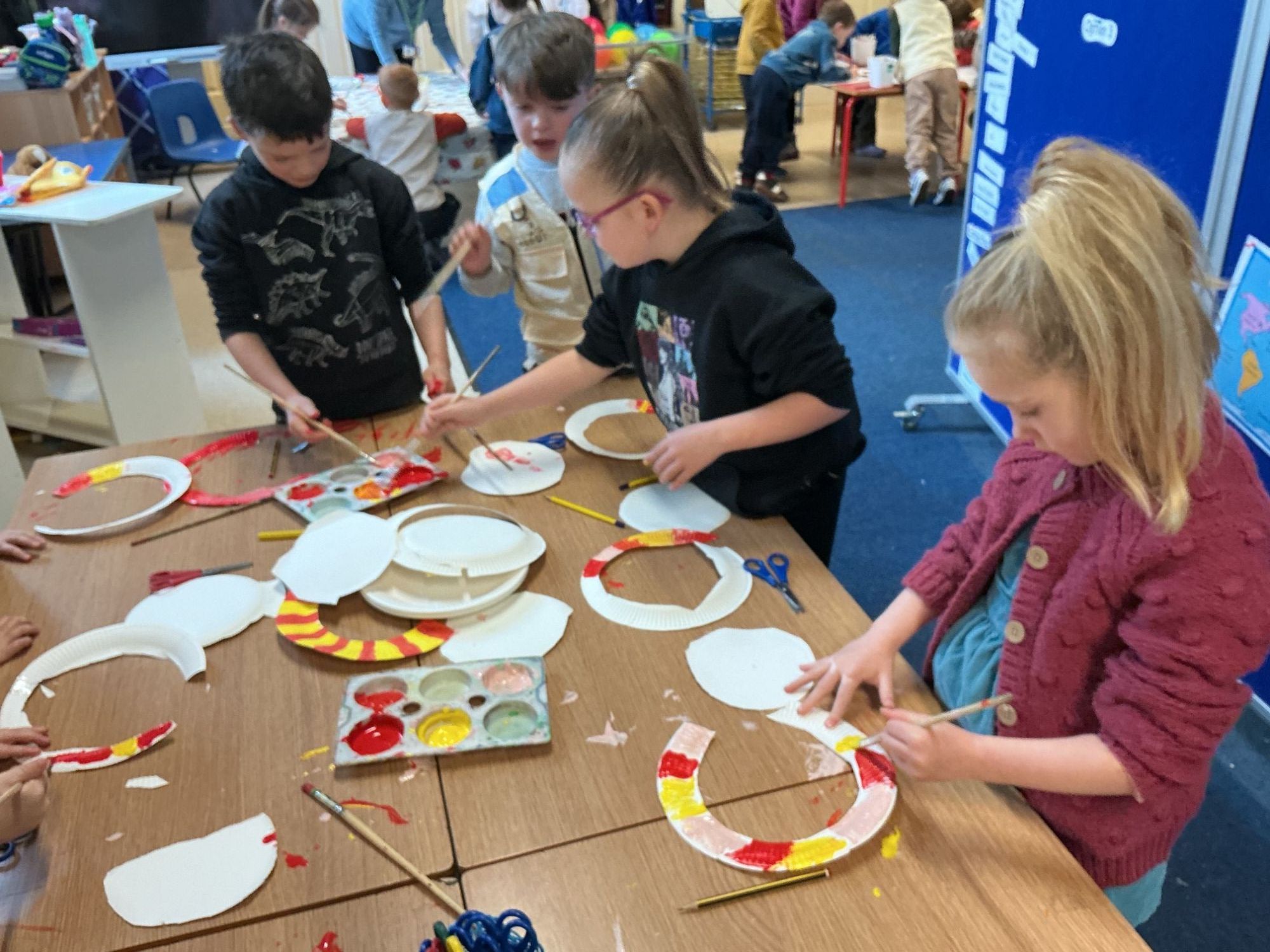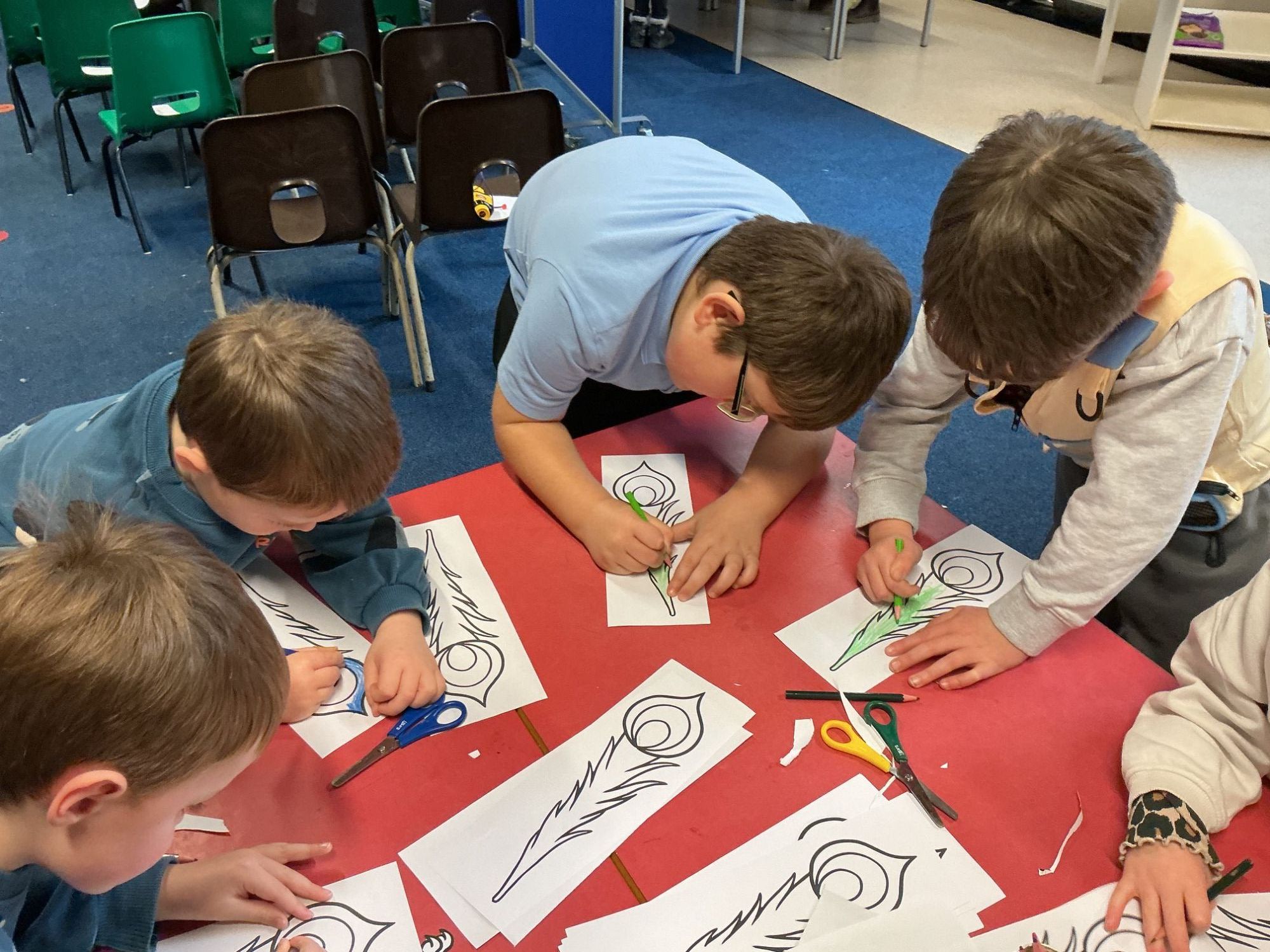 This afternoon we visited China. India, Nepal and the Maldives and made Chinese new year cookies, peacock feathers,prayer flags and mat weaving.
