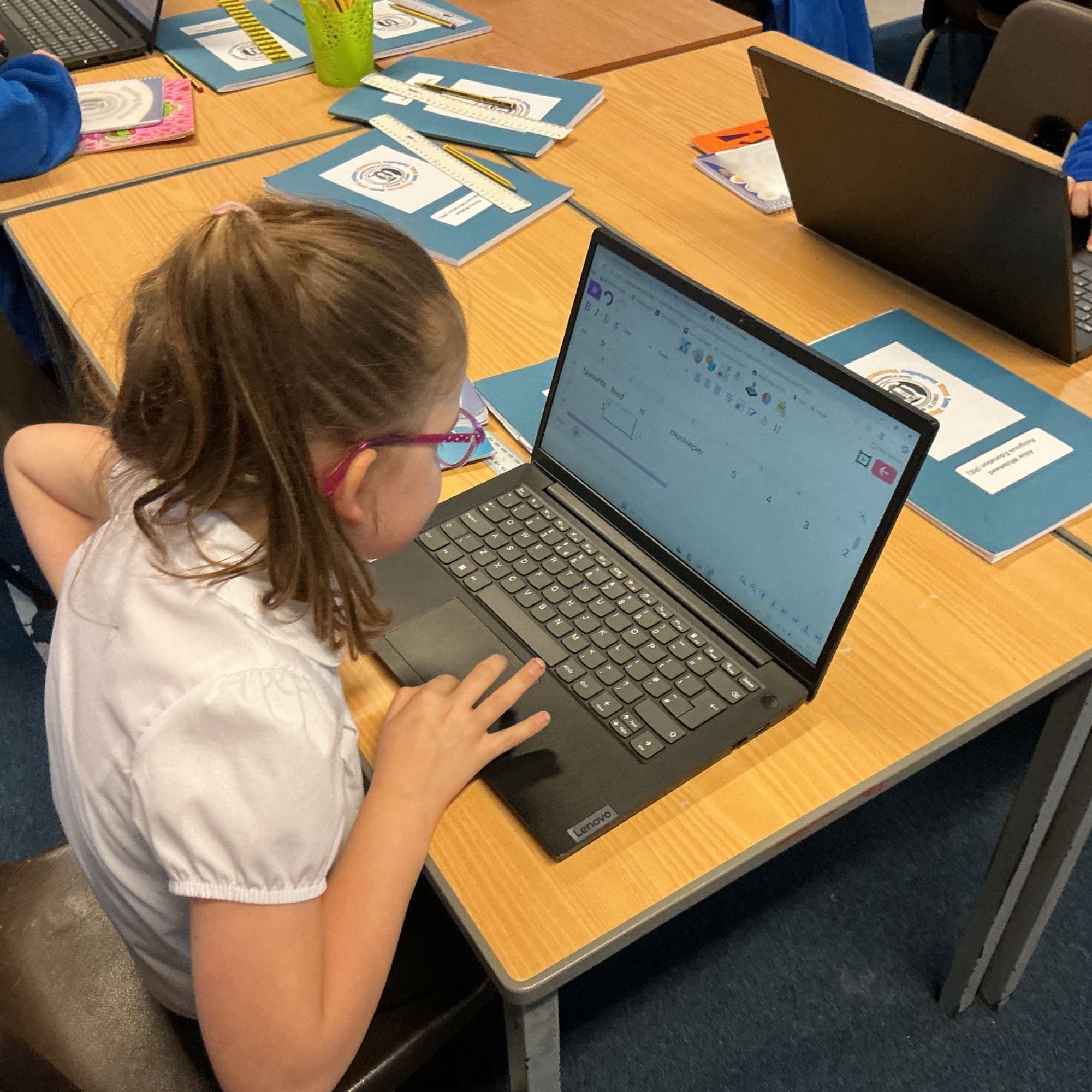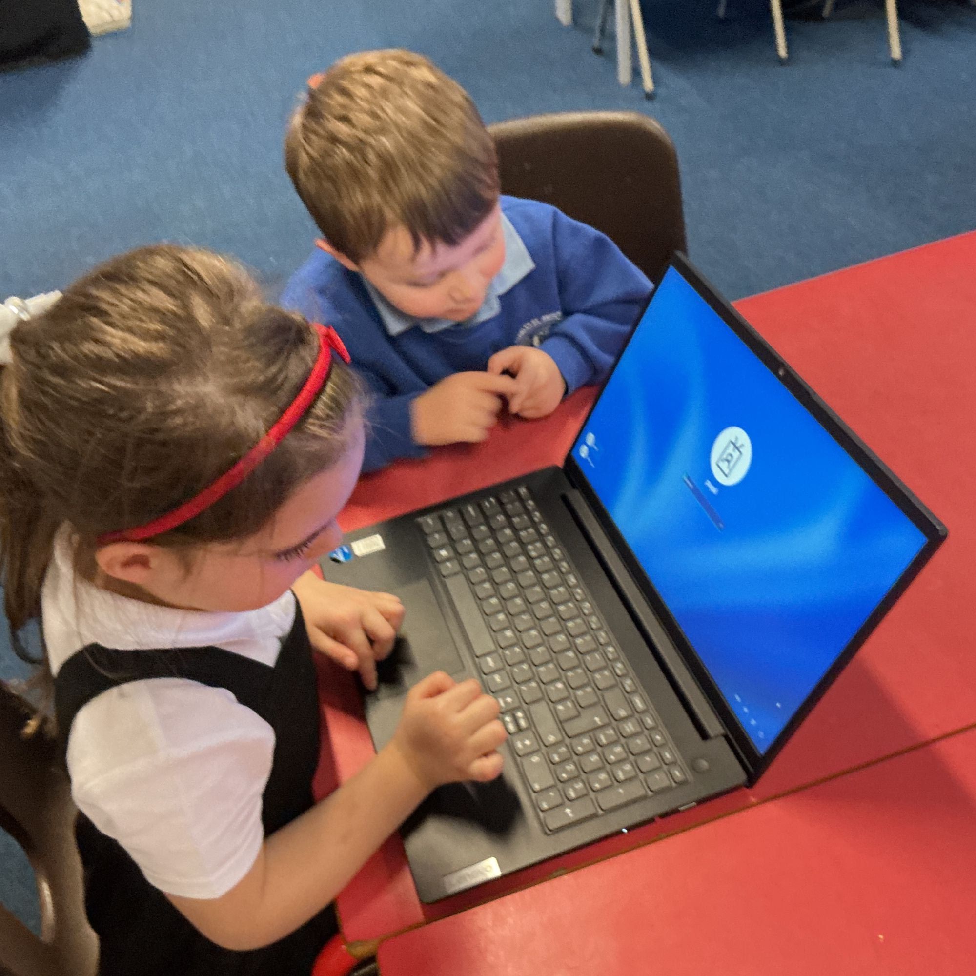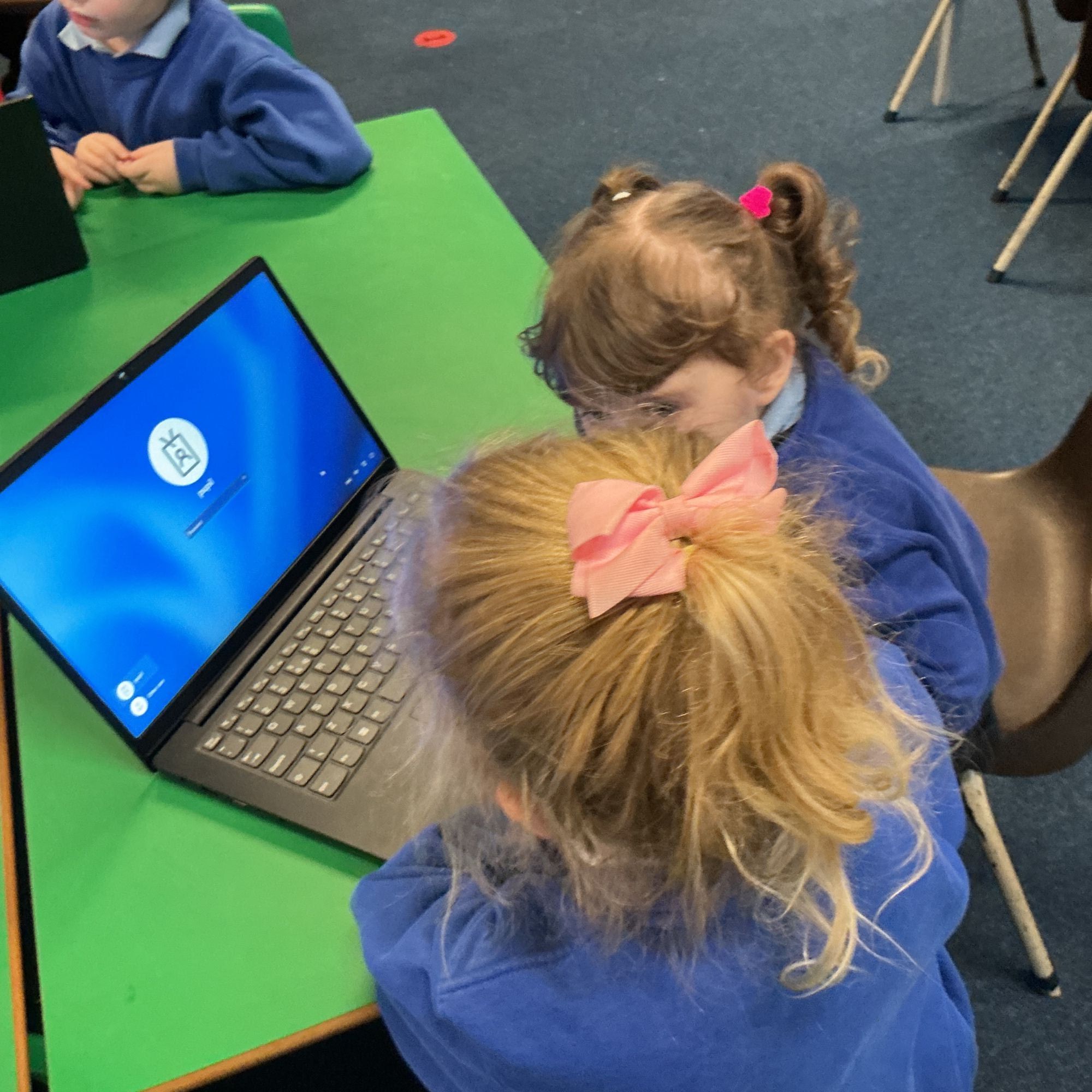 We all looked at how to turn on the laptop and year one and two children accessed a spreadsheet on purple mash. The reception children turned on the computer and were encouraged to try to log on to the laptop.