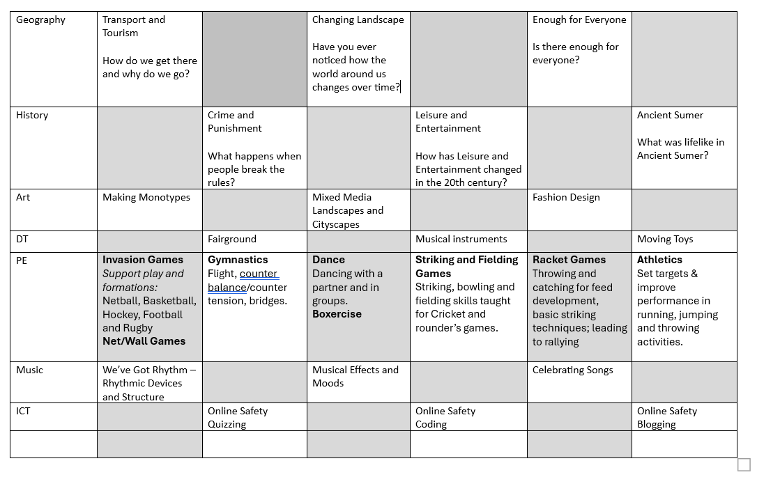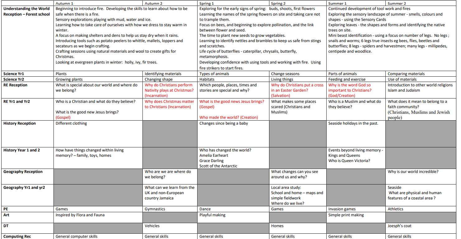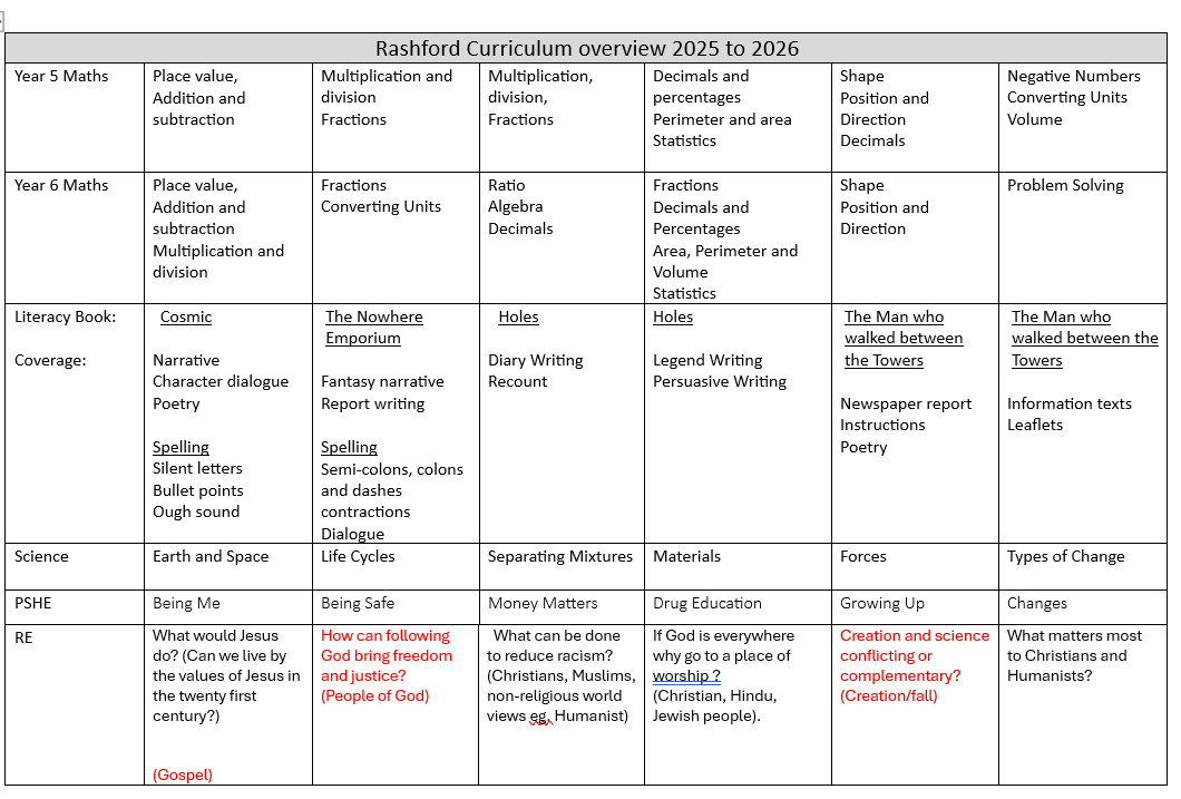 Class yearly overviews: