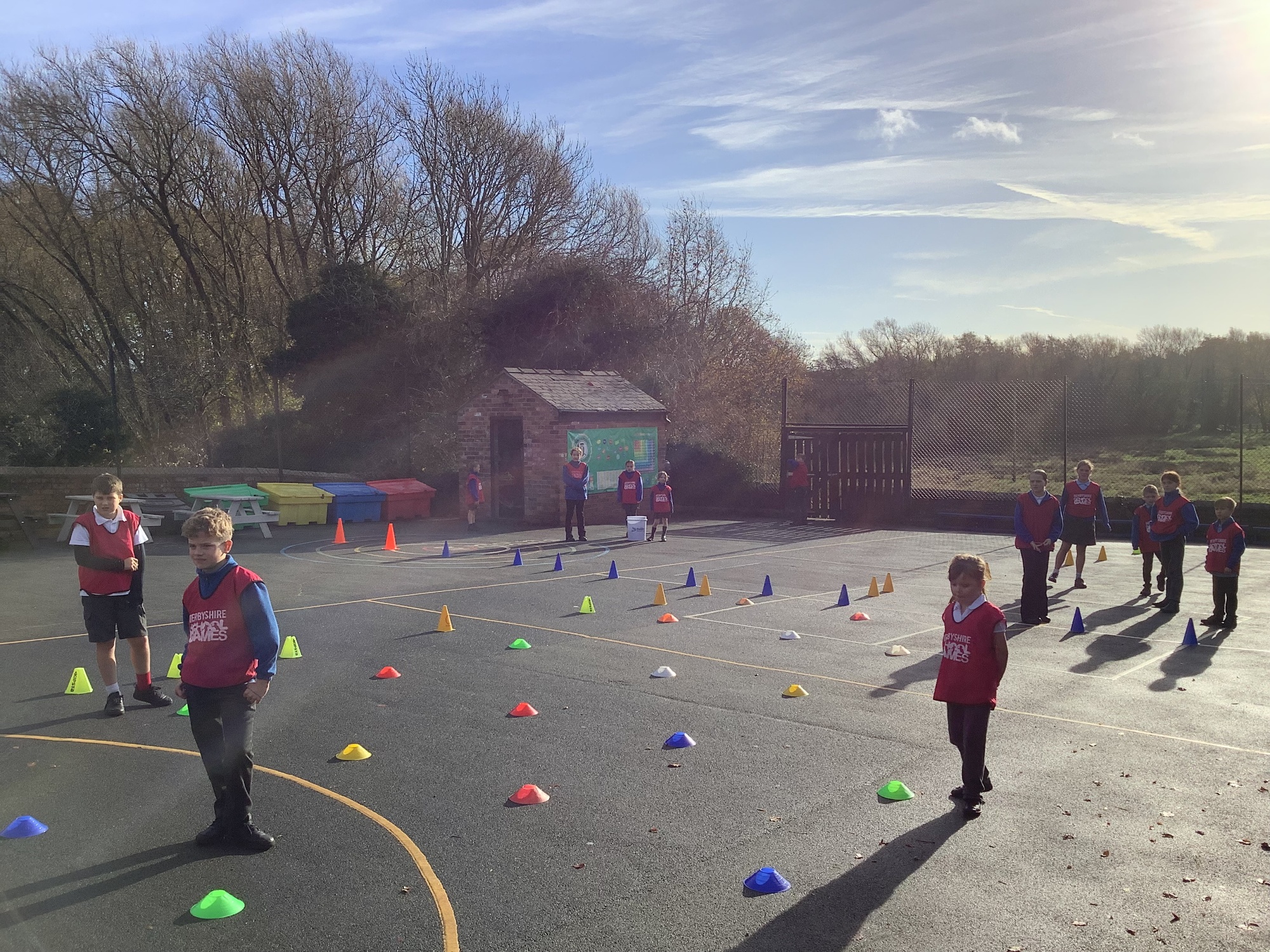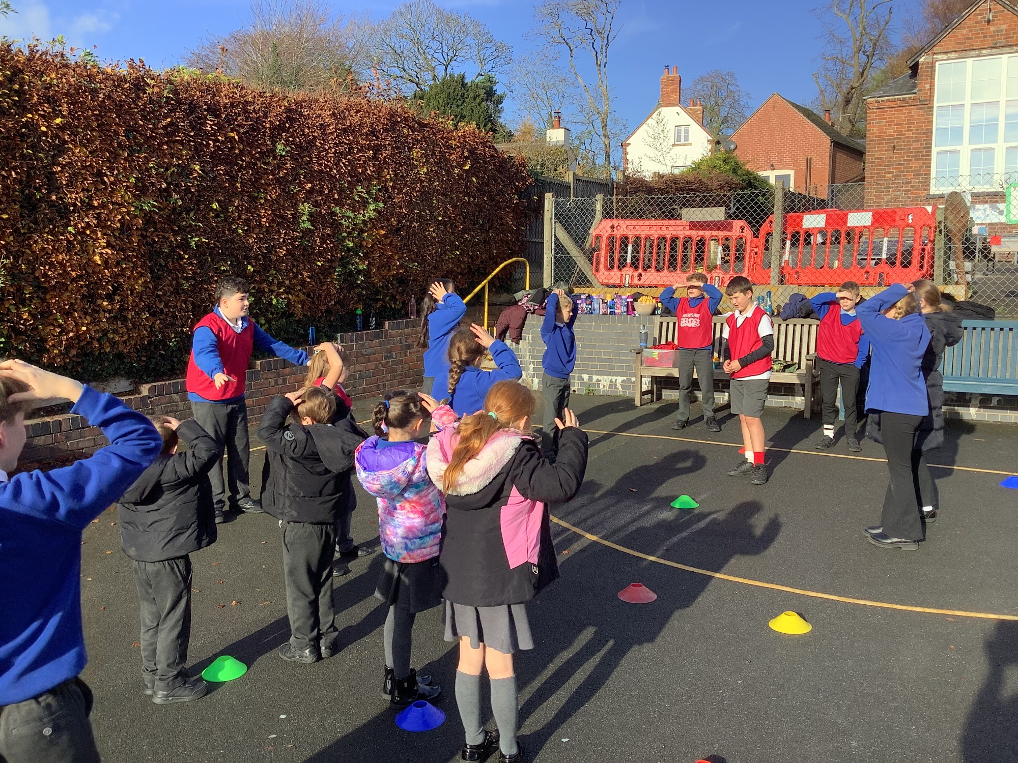 We have joined up with our school council to do a whole school movement activity at break time. The children decided on 4 stations and they spent a few minutes at each station.