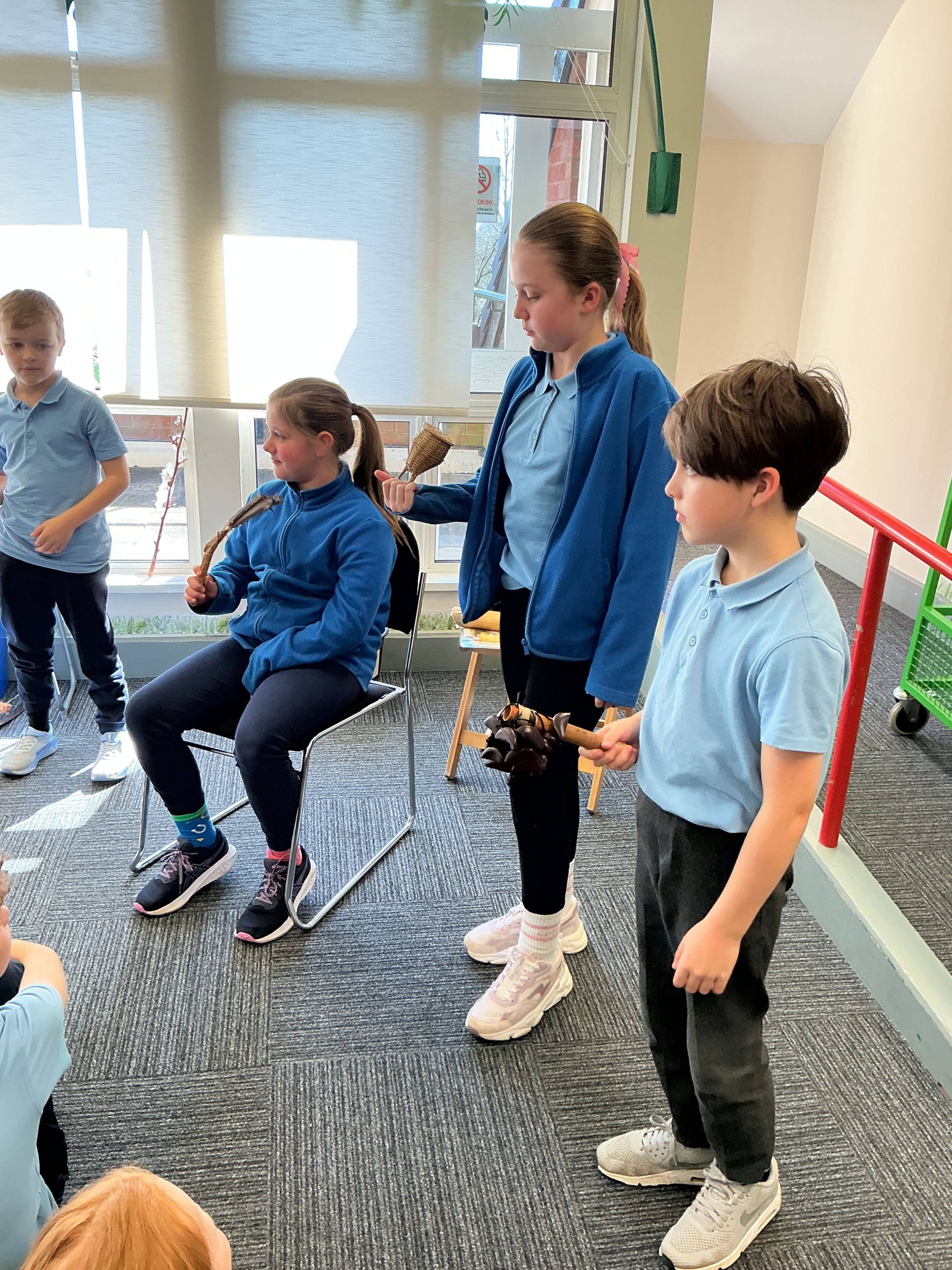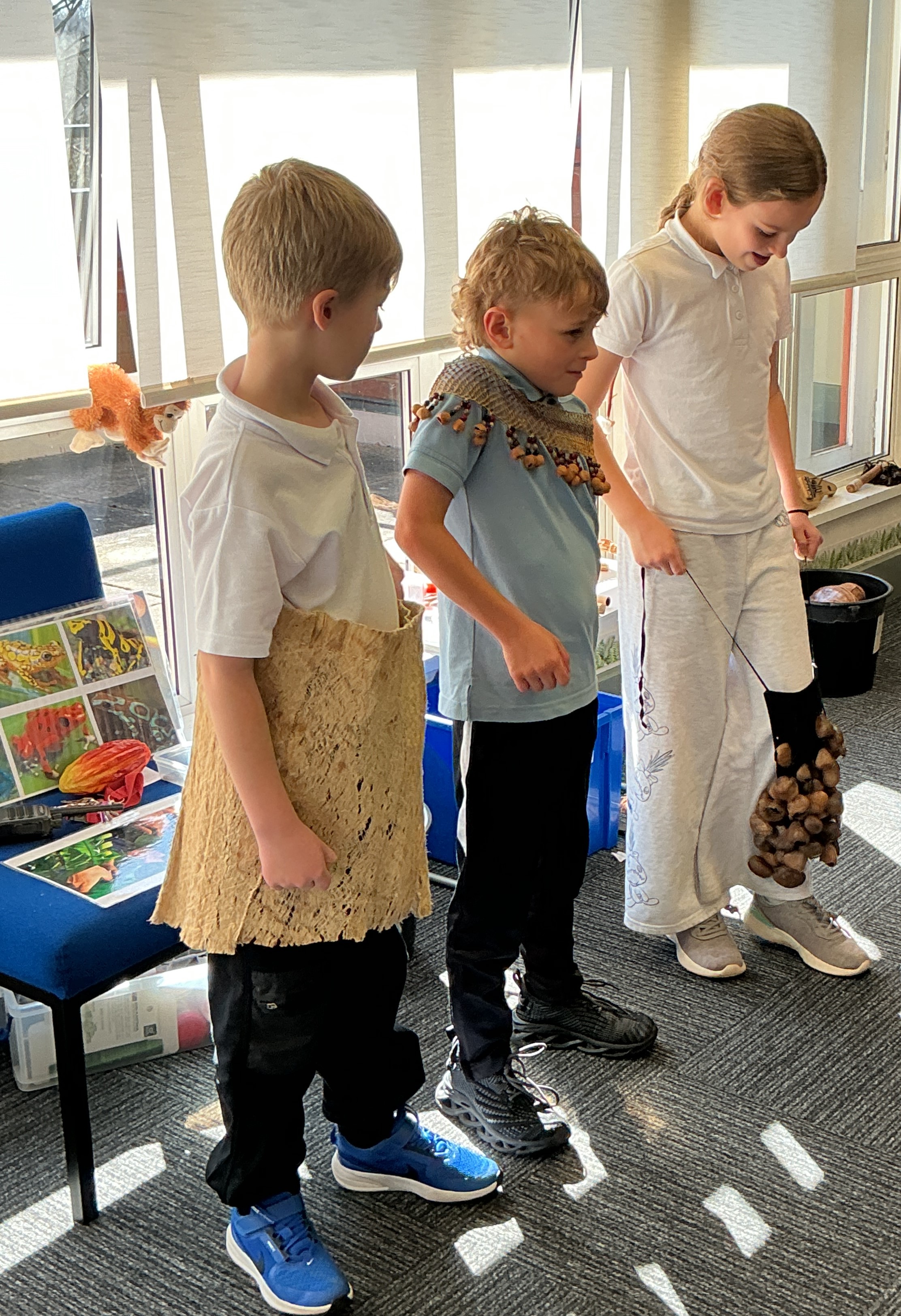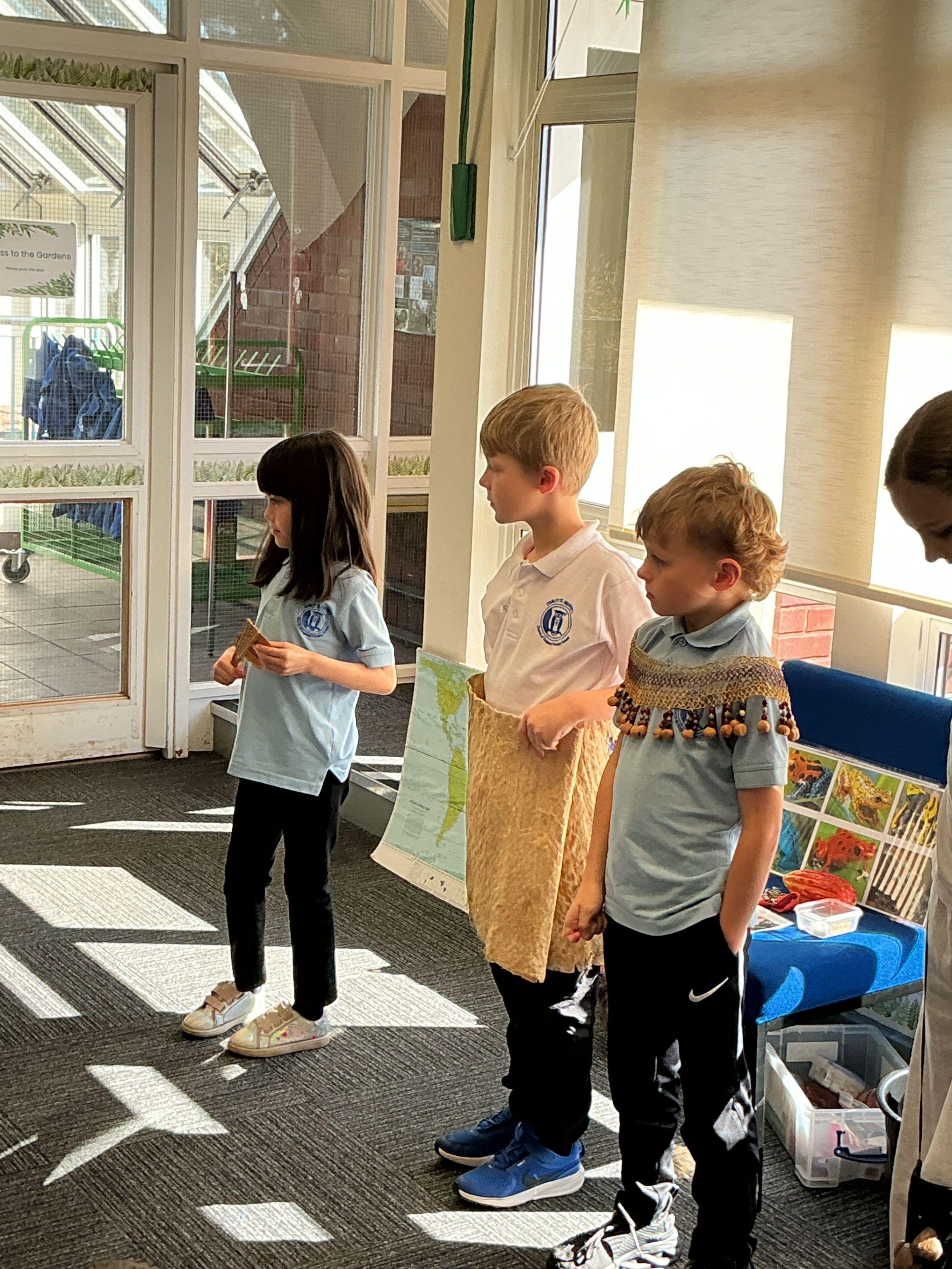They were shown different materials that are used for clothes, furniture and musical instruments such as bamboo and rubber