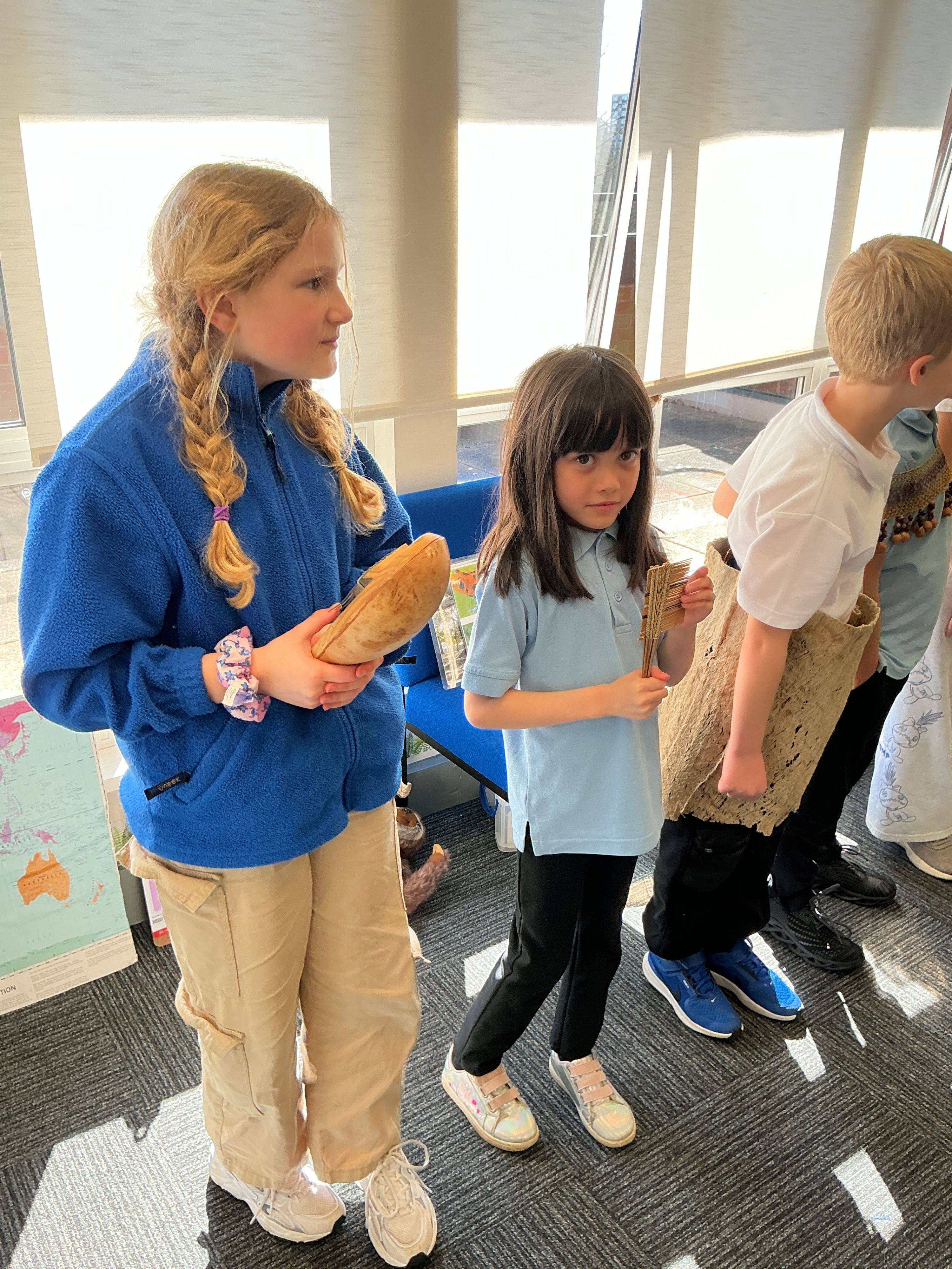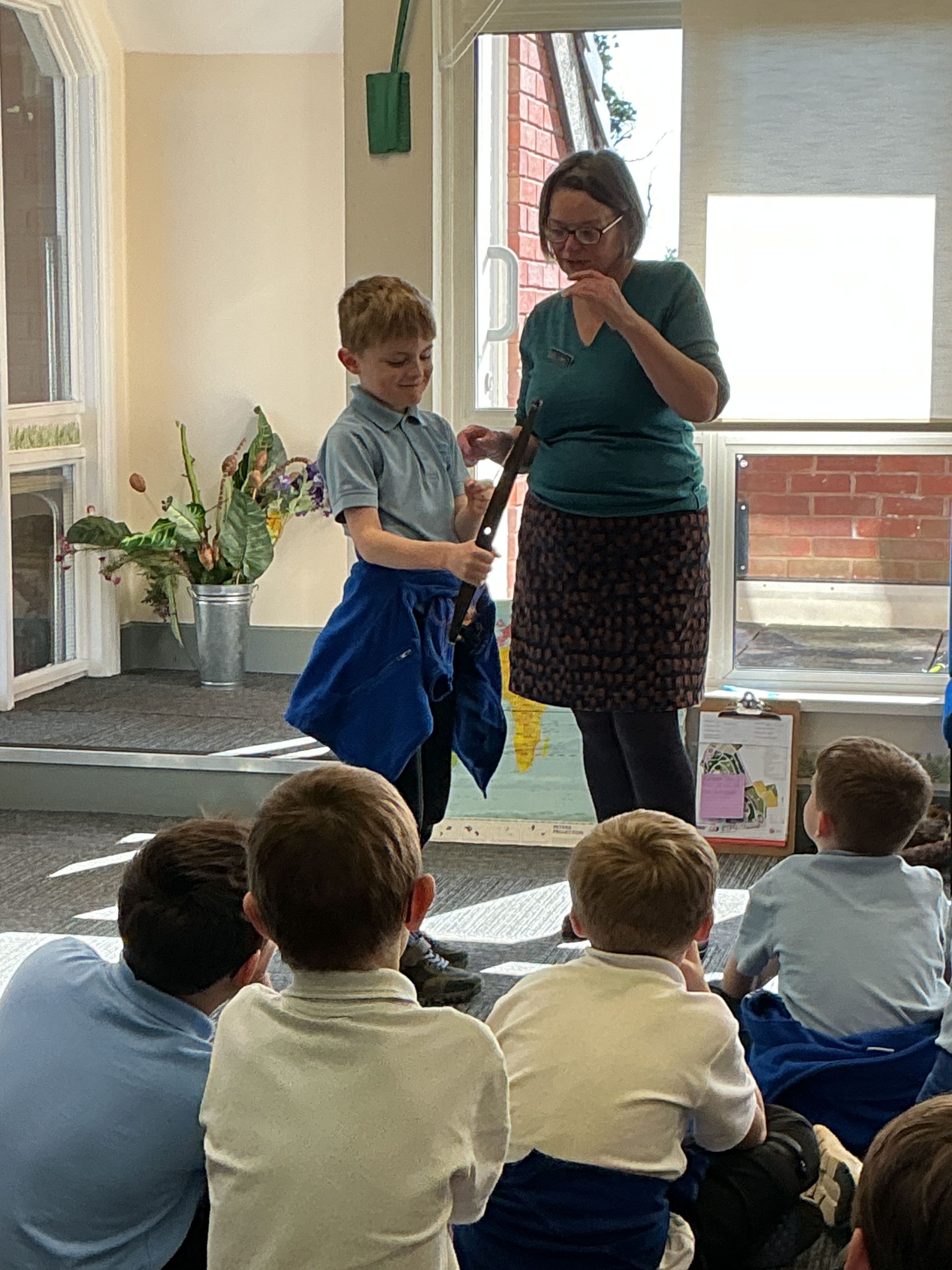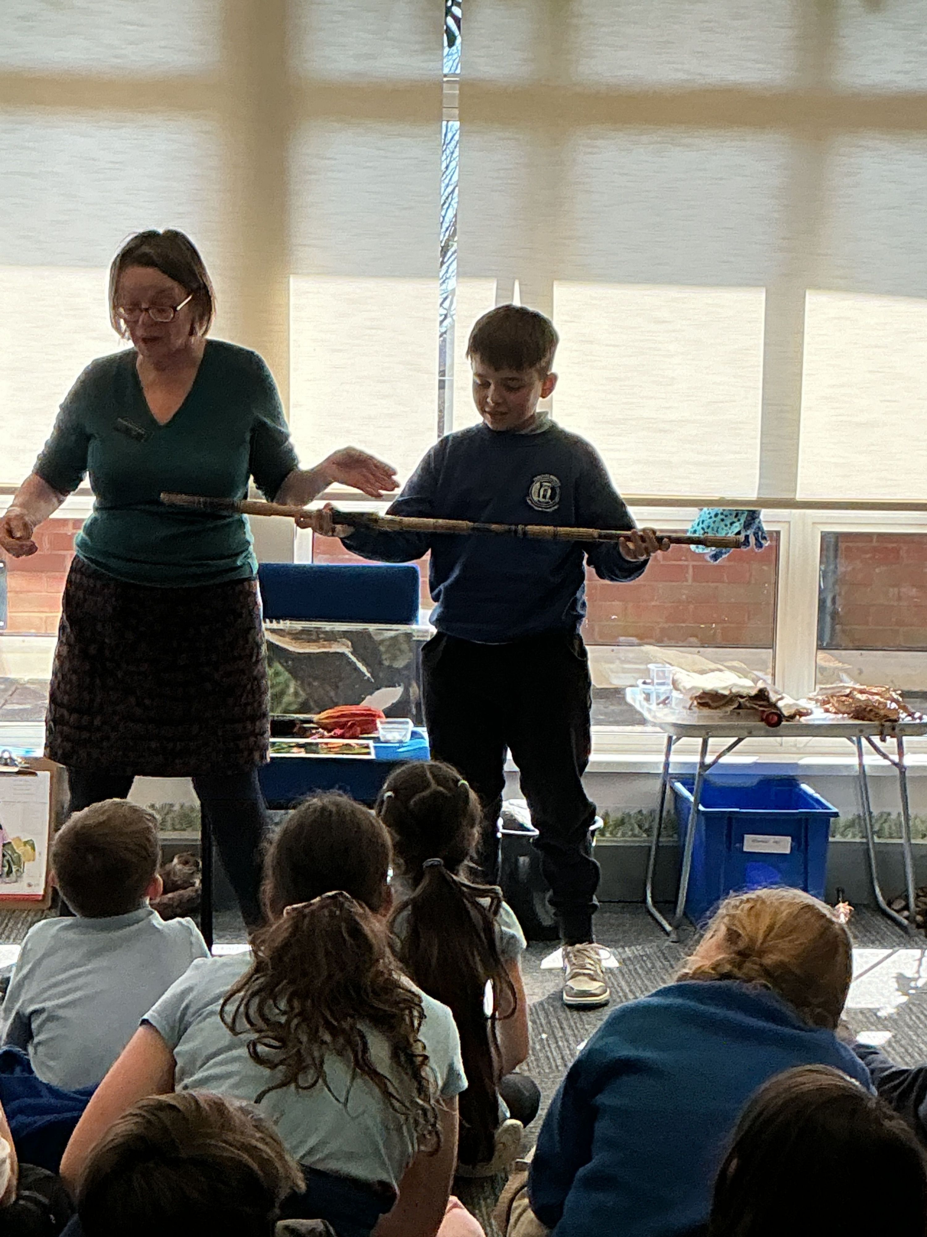 They were shown different materials that are used for clothes, furniture and musical instruments such as bamboo and rubber