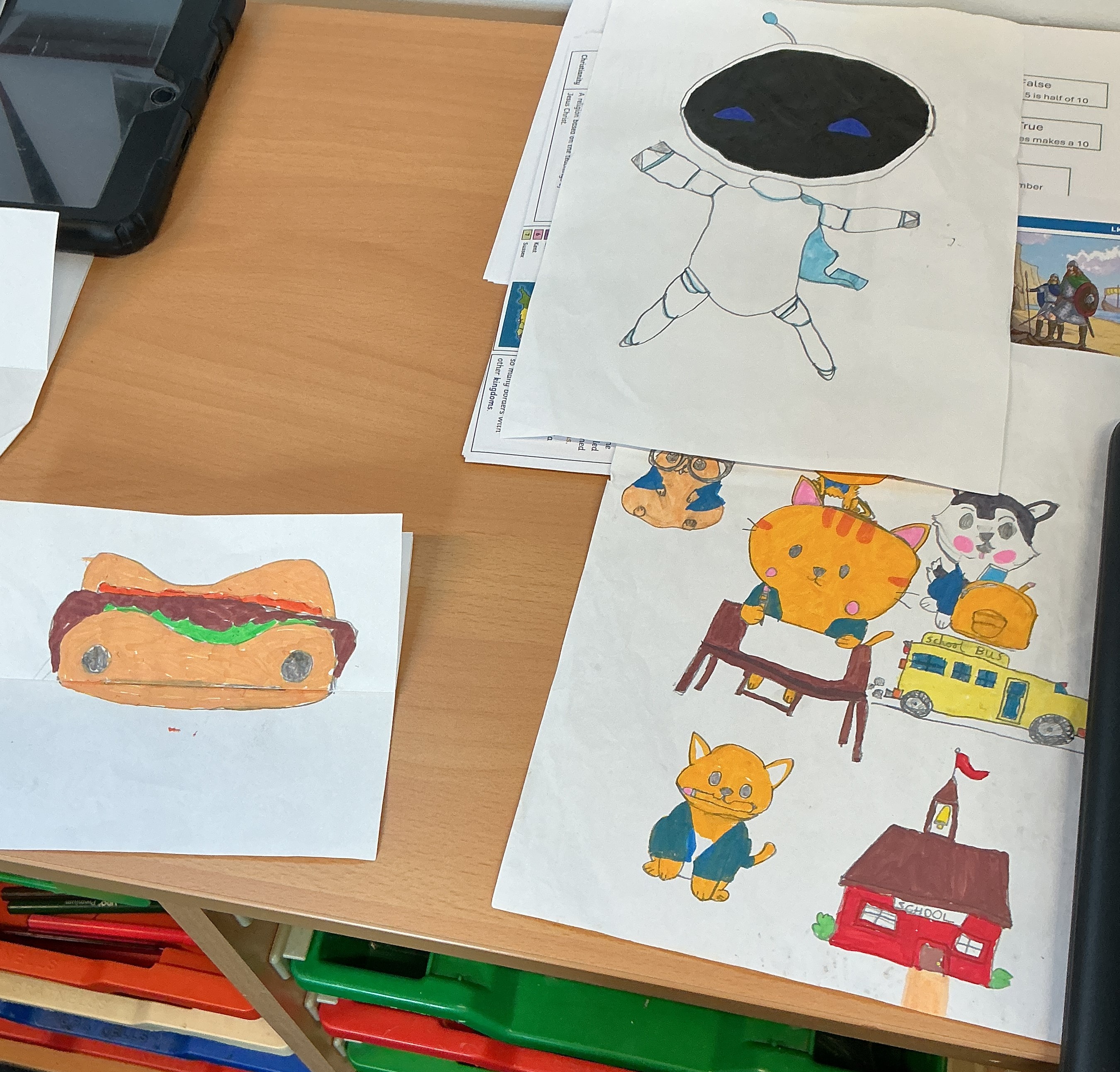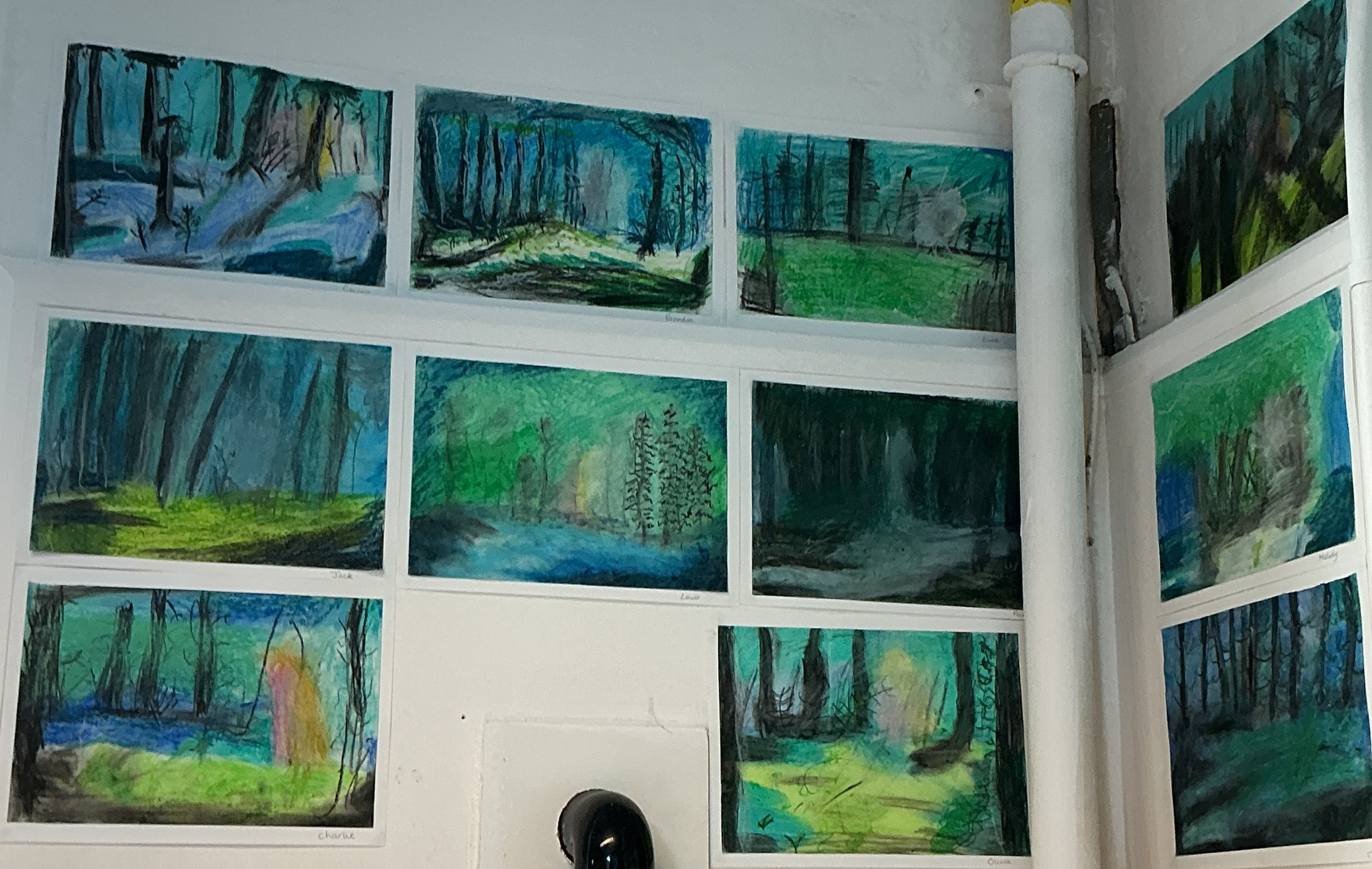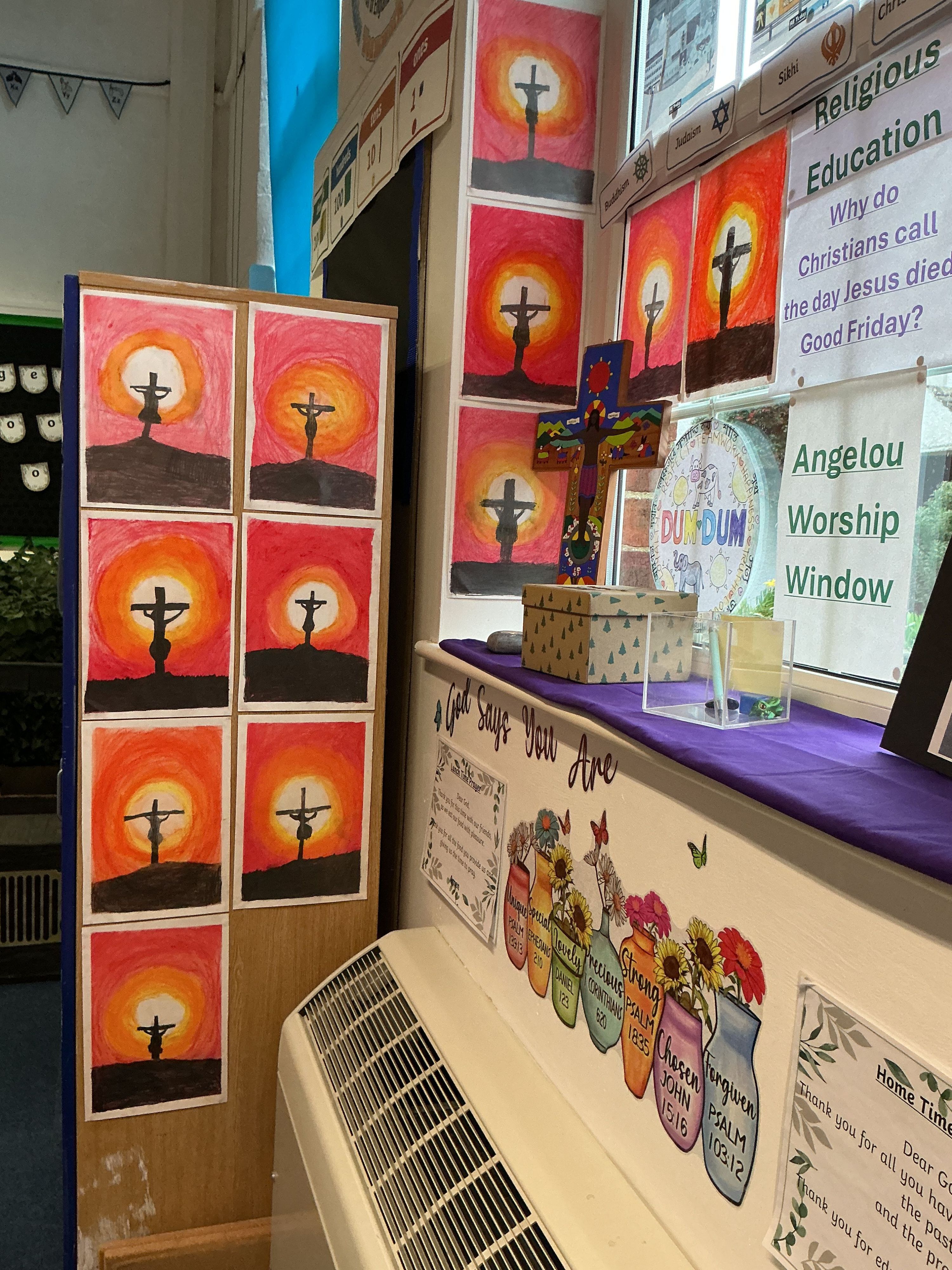 Classroom displays, showcasing children's artwork