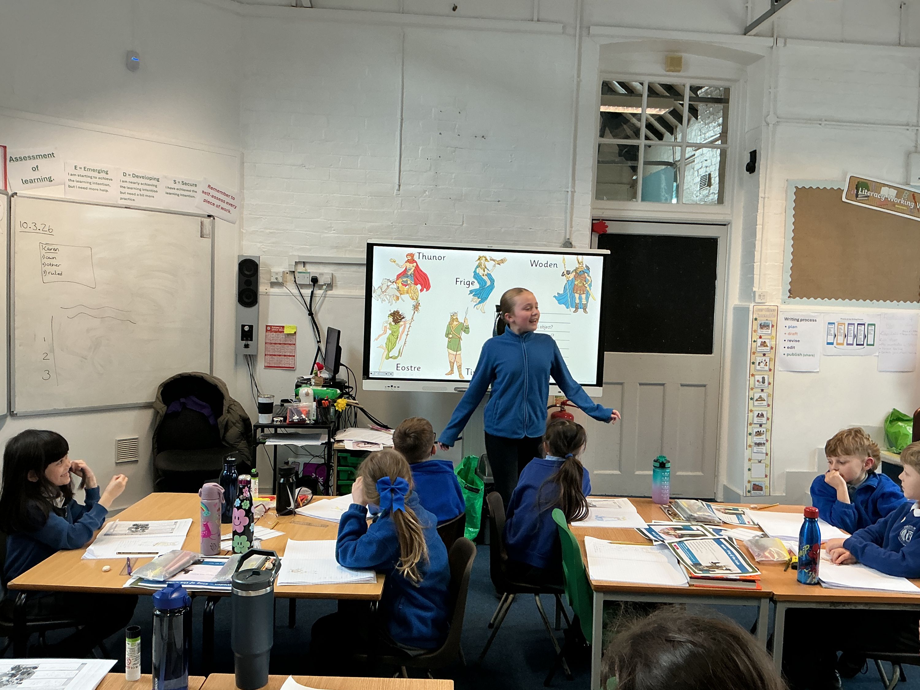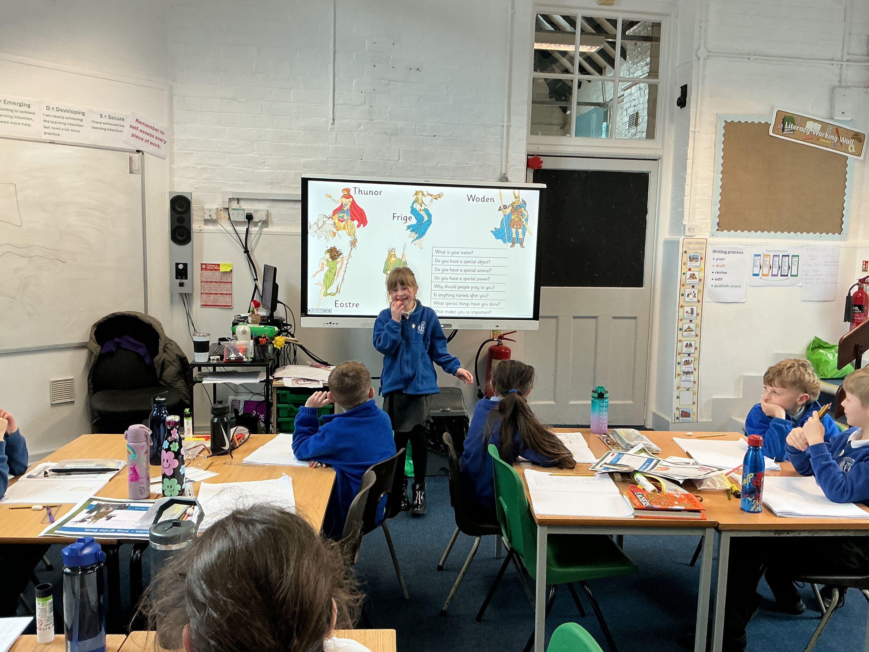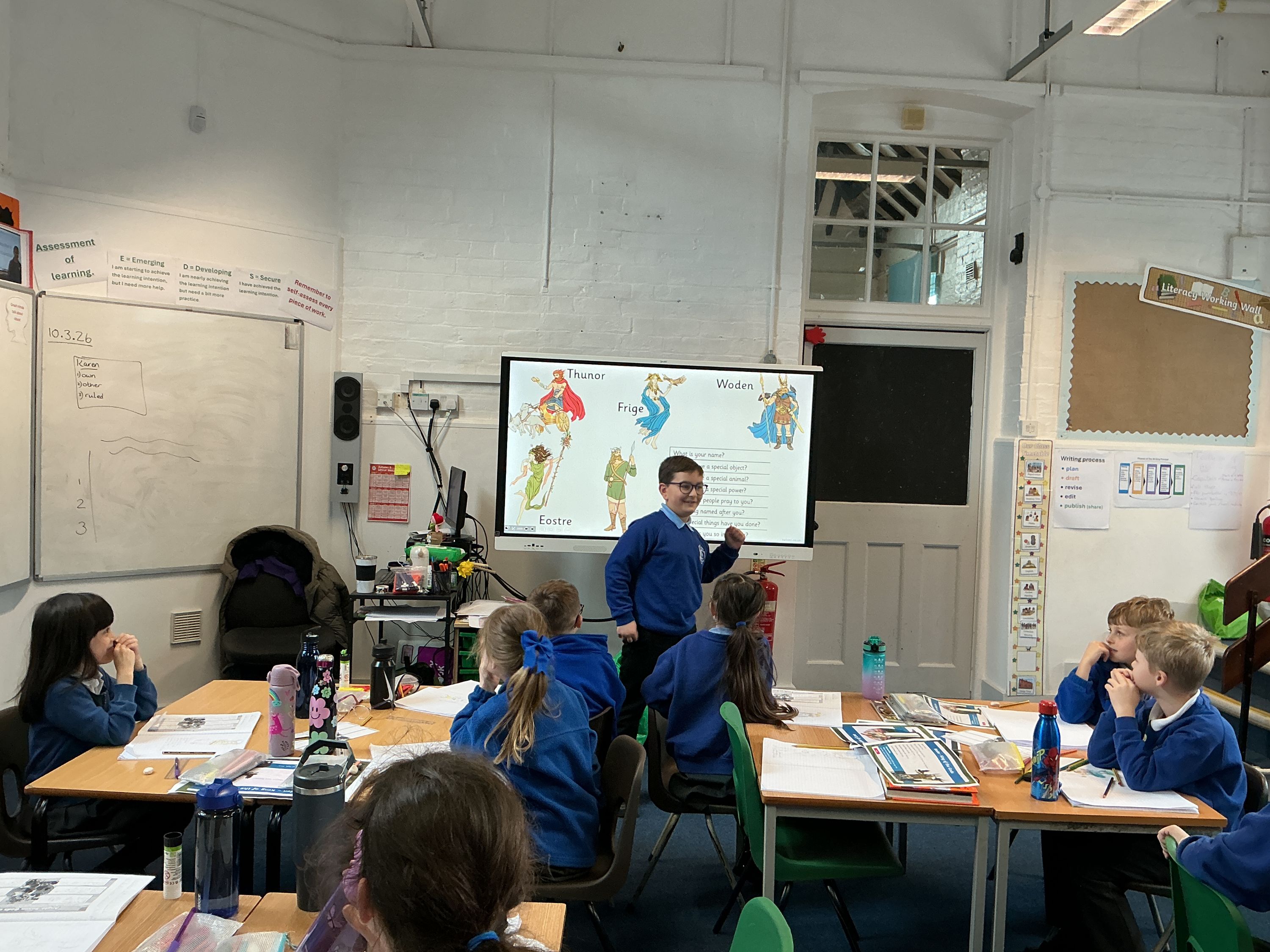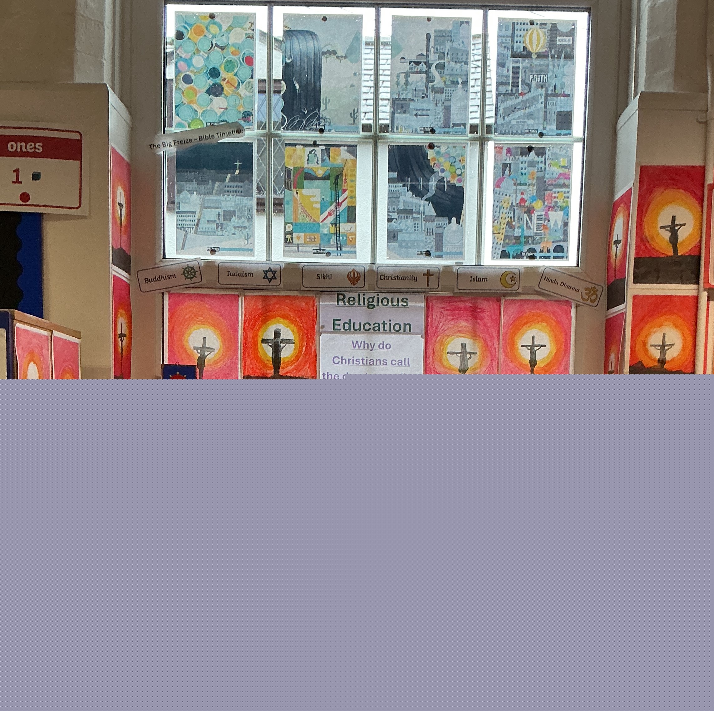 Classroom displays, showcasing children's artwork