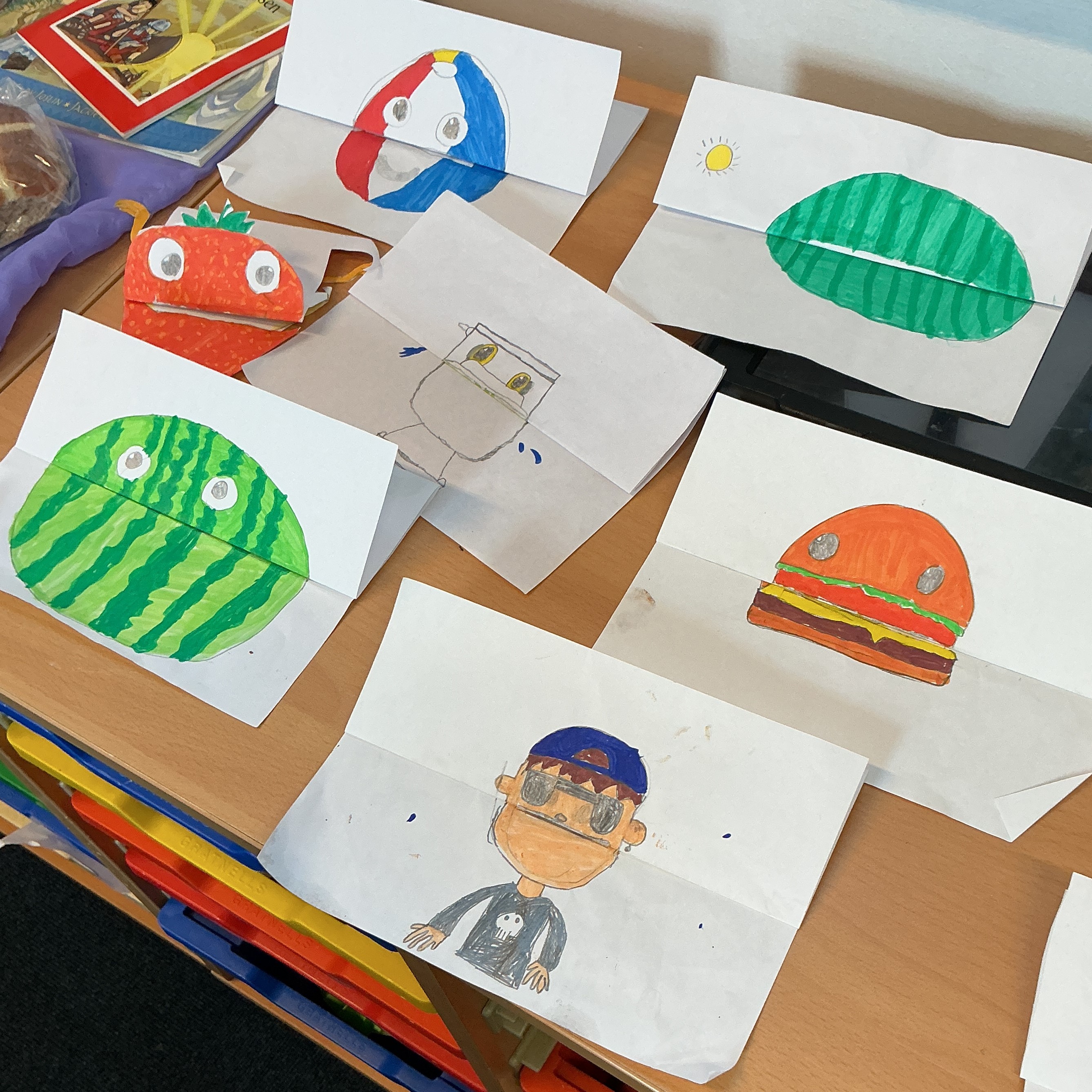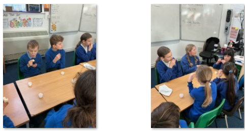 Literacy – discussing and planning their '5 sentence stories' based around food, inspired by Michael Rosen