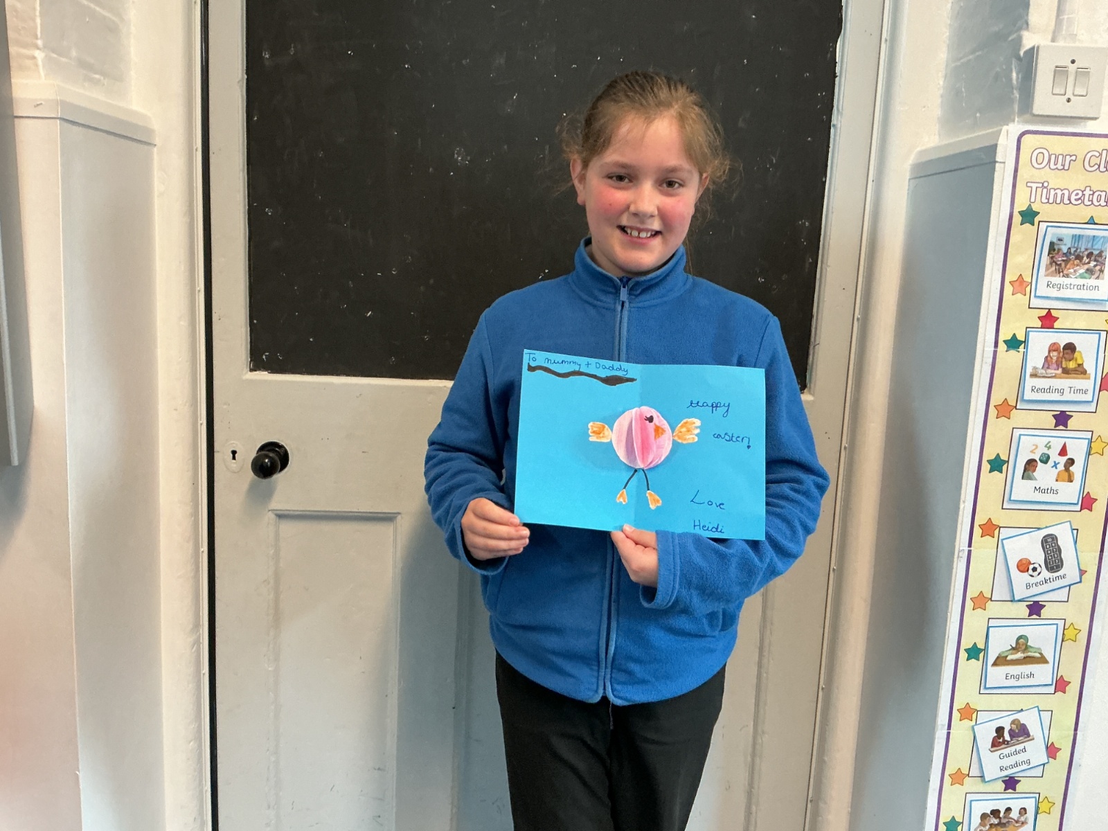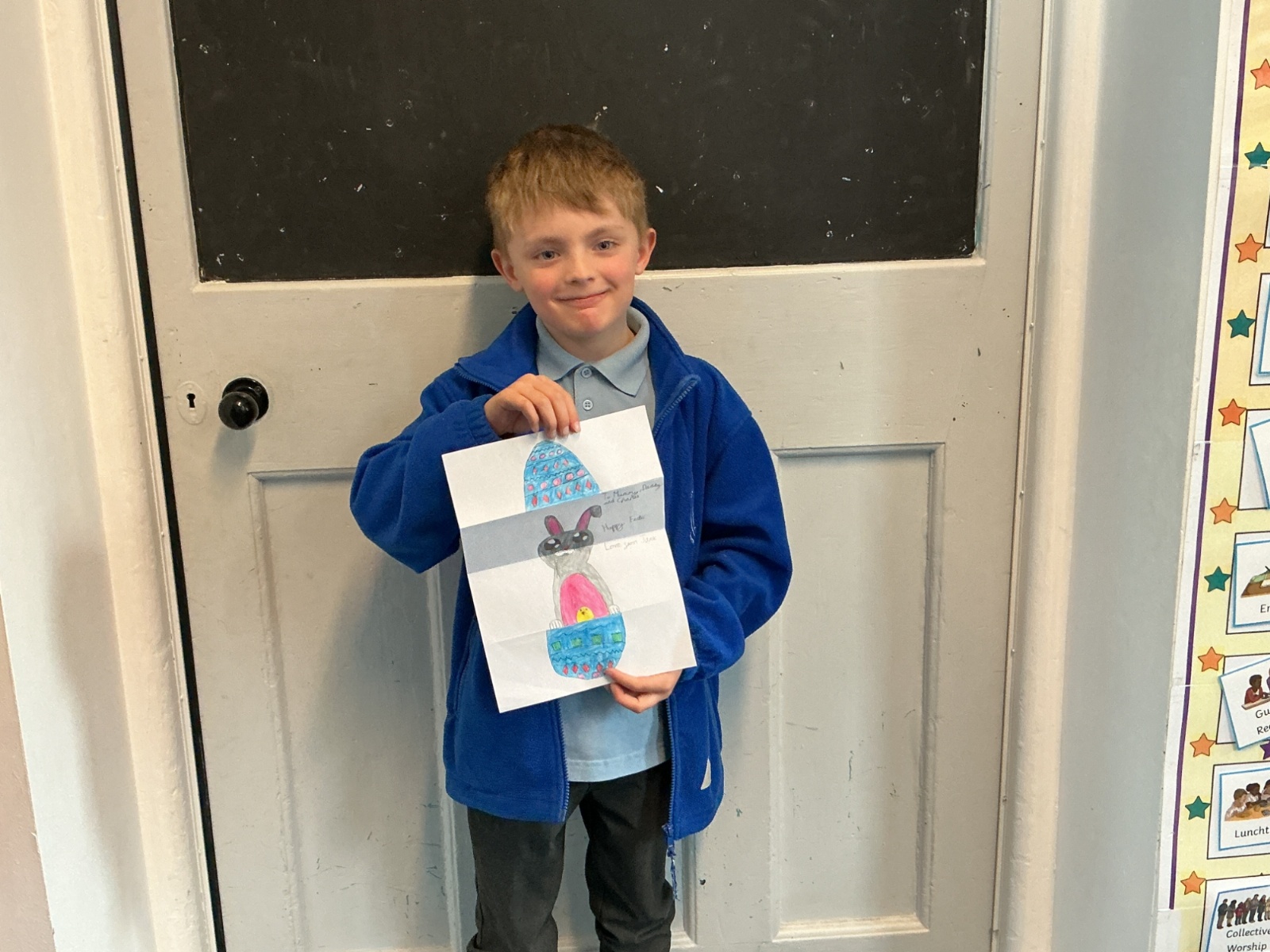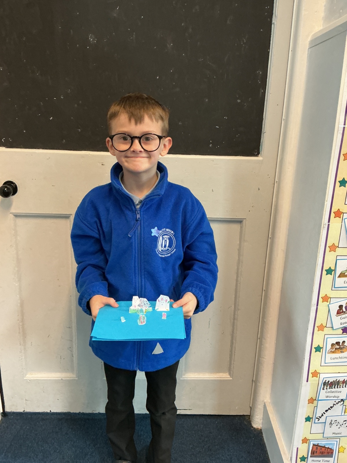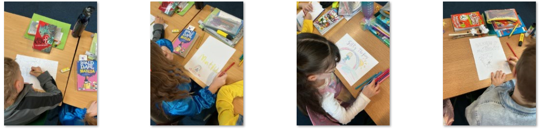 During the morning, the children took part in three workshops. A sea shanty dance taught by Mrs Richardson and then Mrs Gresswell asked the children to redesign the front cover of her favourite book – Barnaby. Miss Price gave all the children a big heart and asked them to write positive things about themselves.