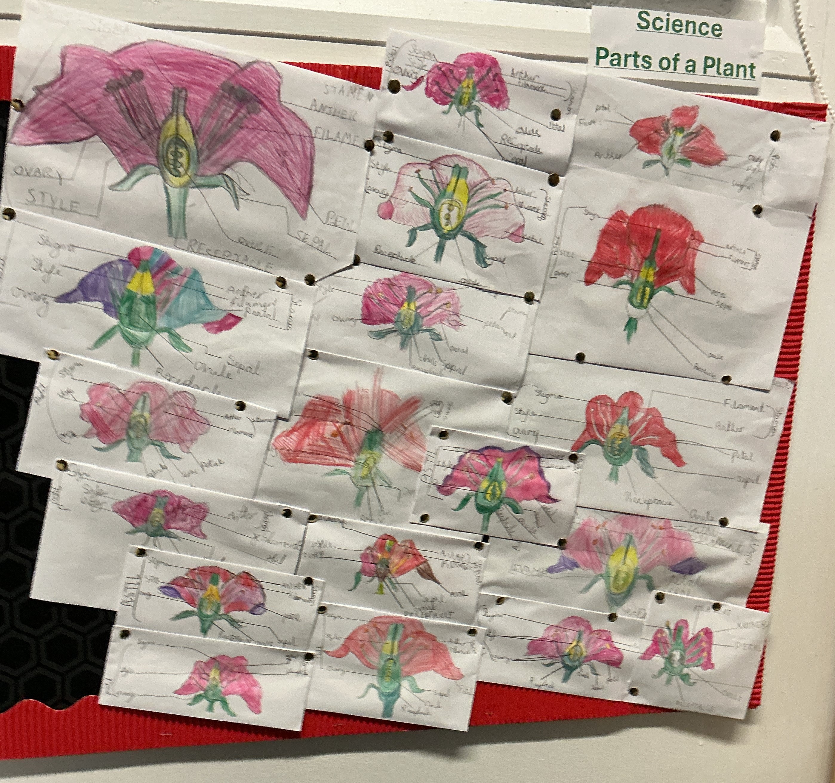 Science – labelling parts of a plant, using pencil crayons
