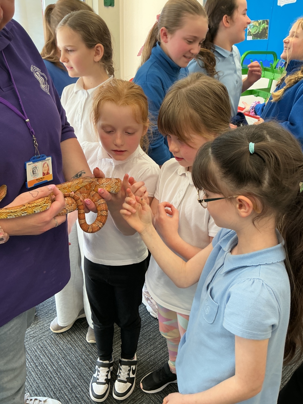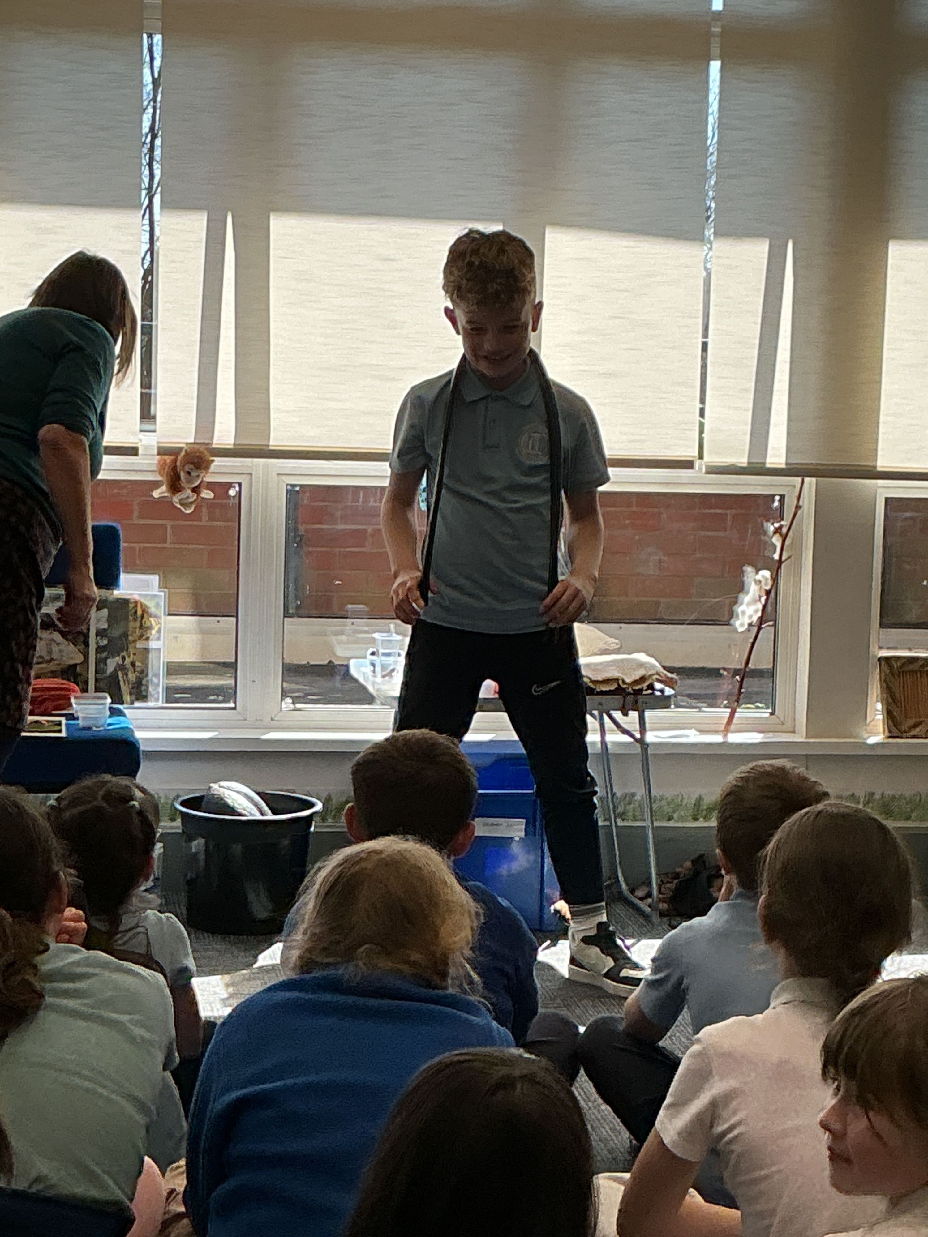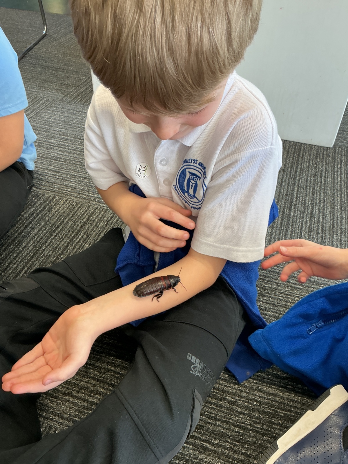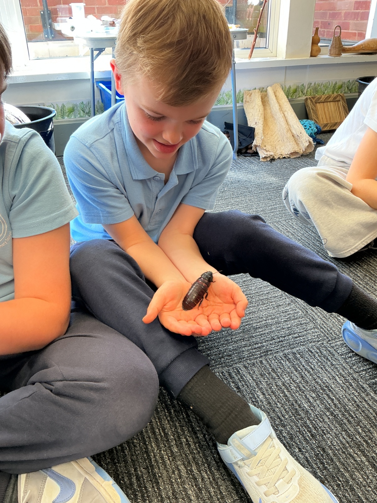 Then the children had the opportunity to meet a number of animals; an African snail, a cockroach, a corn snake and a bearded dragon.