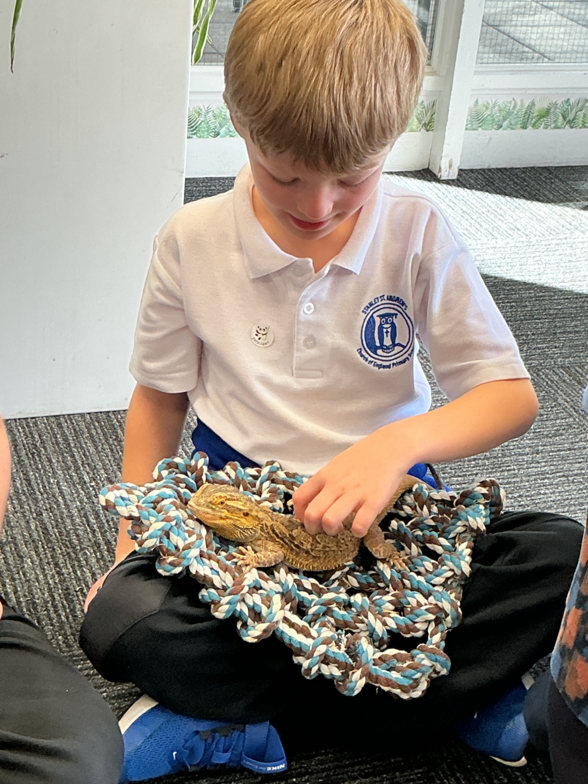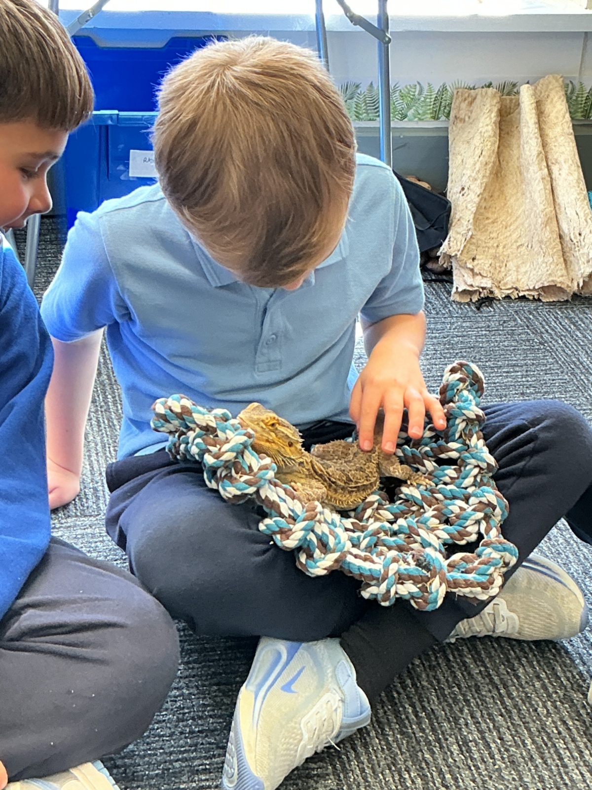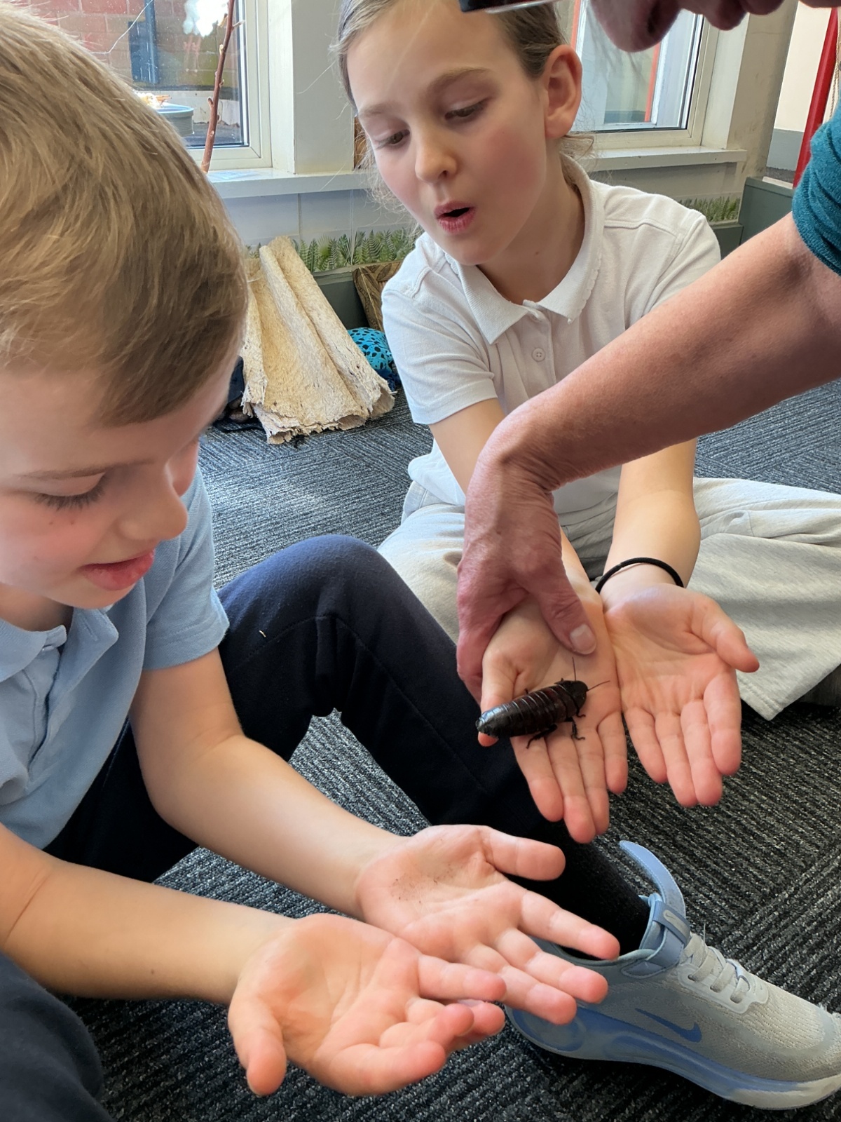 Then the children had the opportunity to meet a number of animals; an African snail, a cockroach, a corn snake and a bearded dragon.