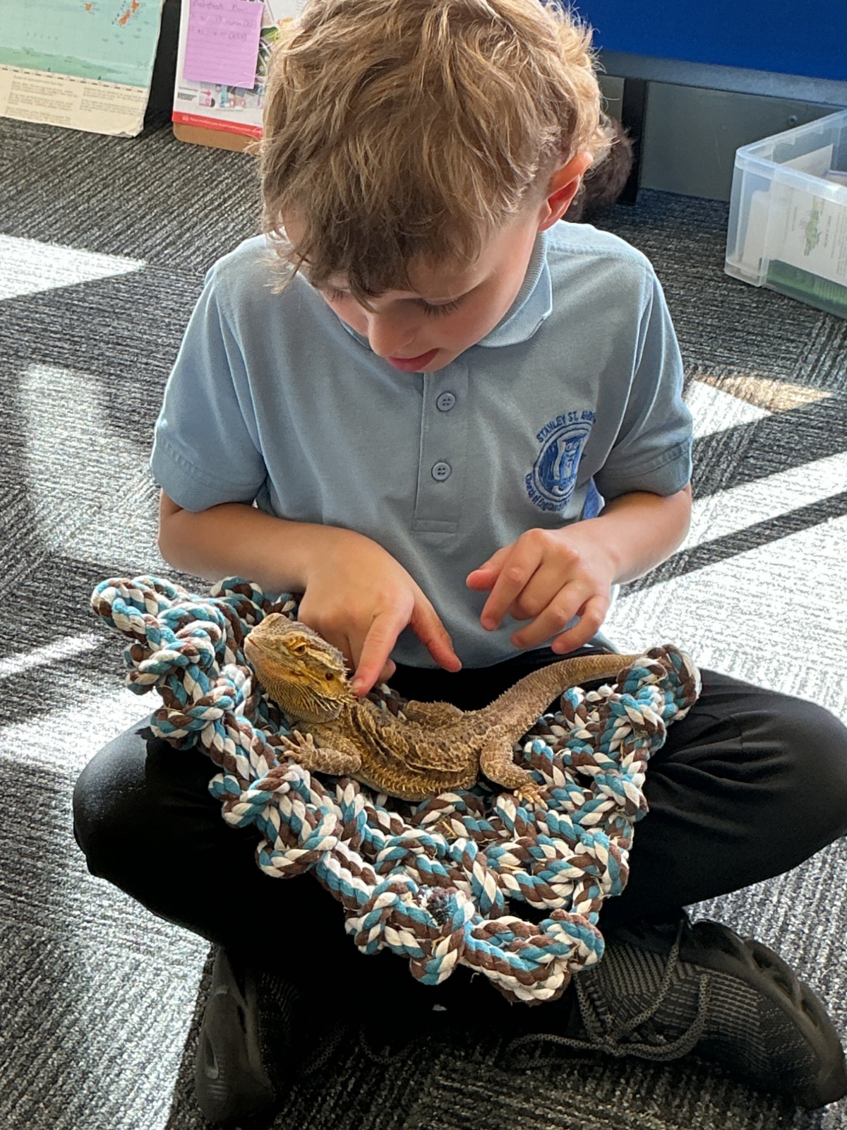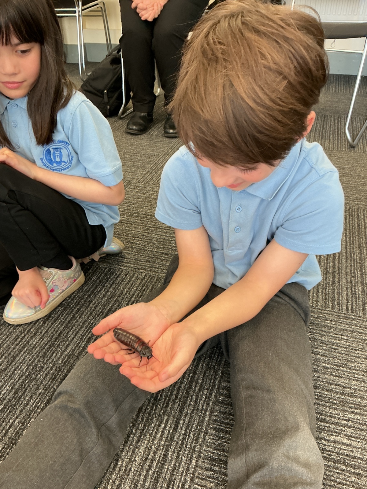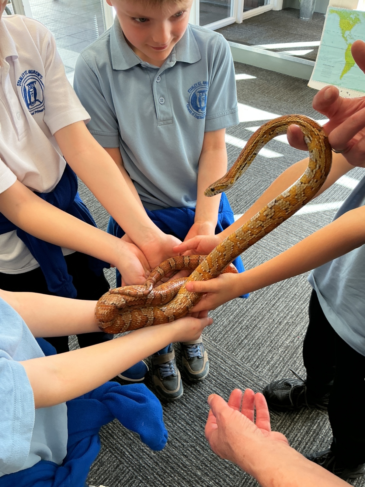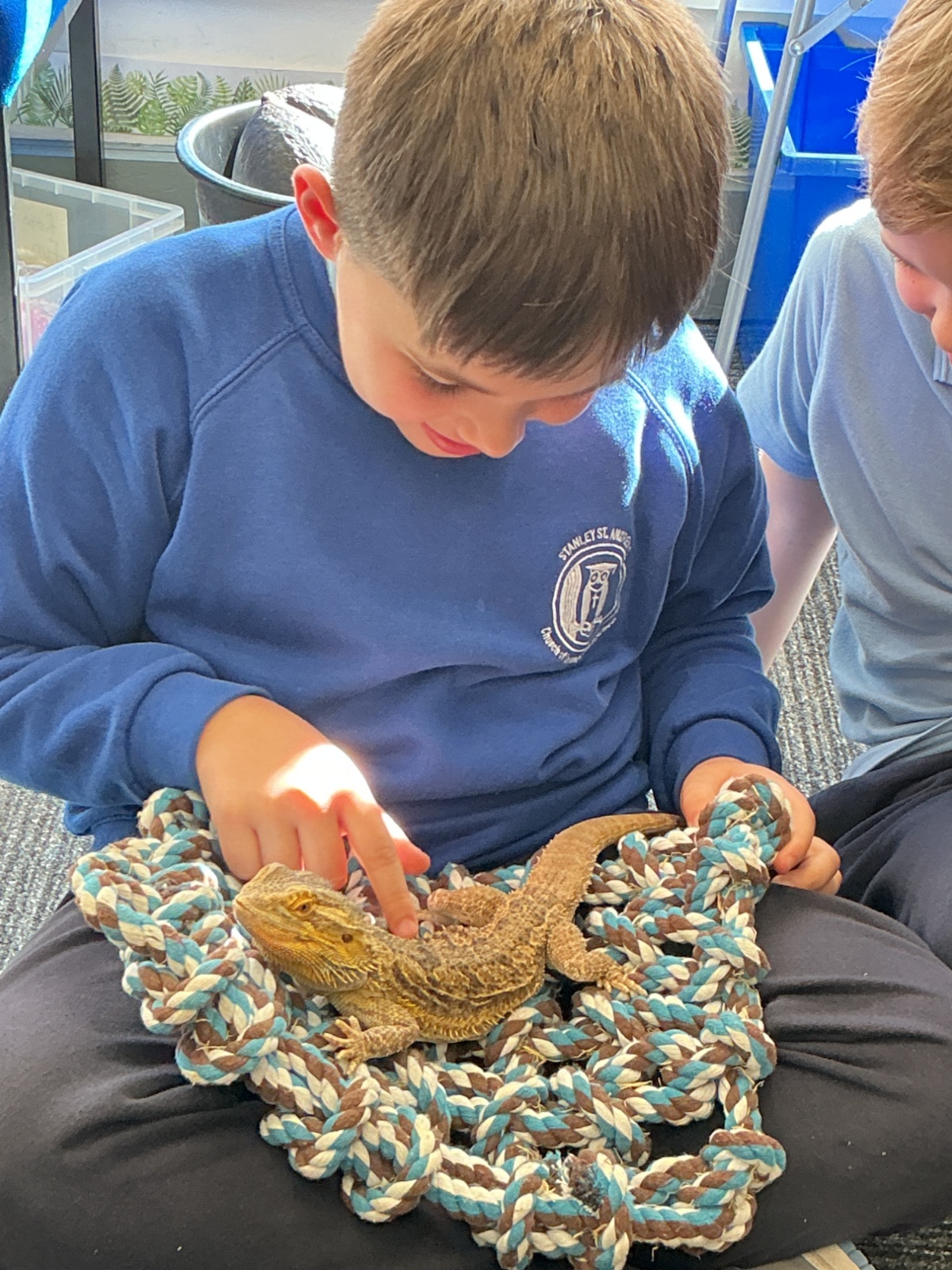 Then the children had the opportunity to meet a number of animals; an African snail, a cockroach, a corn snake and a bearded dragon.