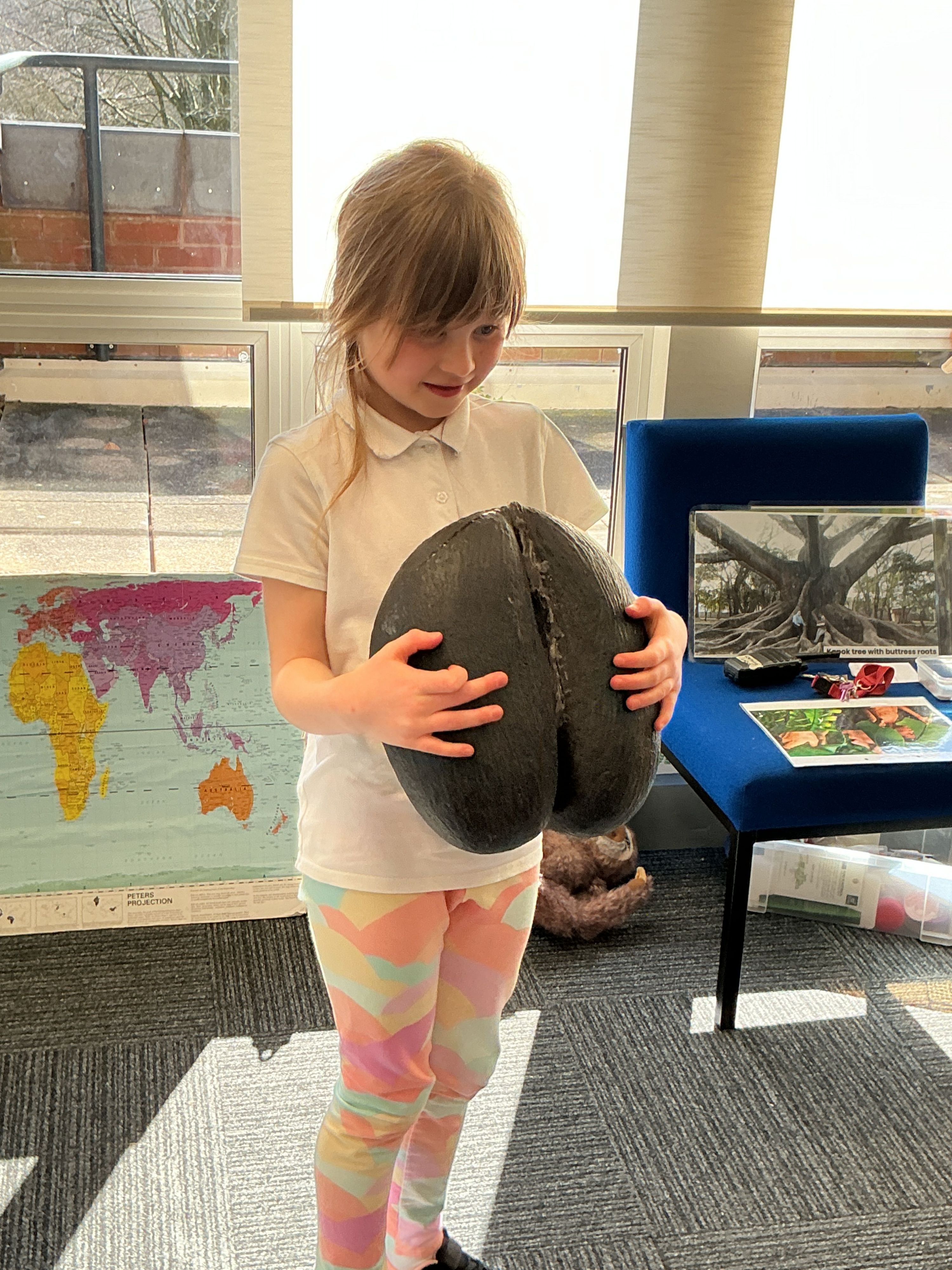 The children learnt about layers of the rainforest, the fruit found in the rainforest, such as coconuts, bananas and a buttpeach.