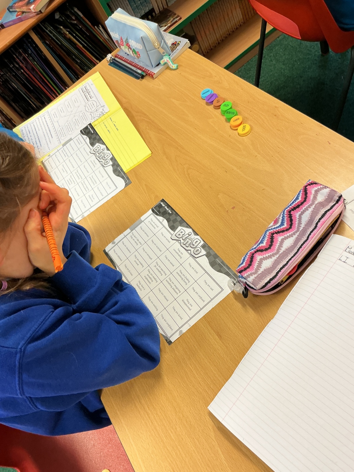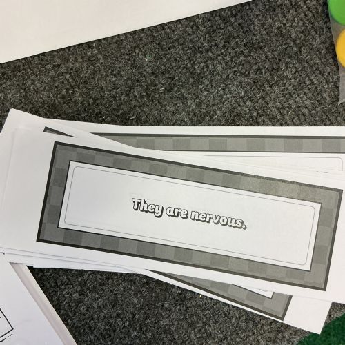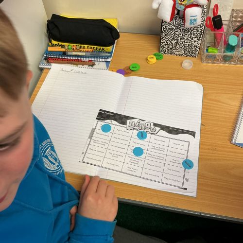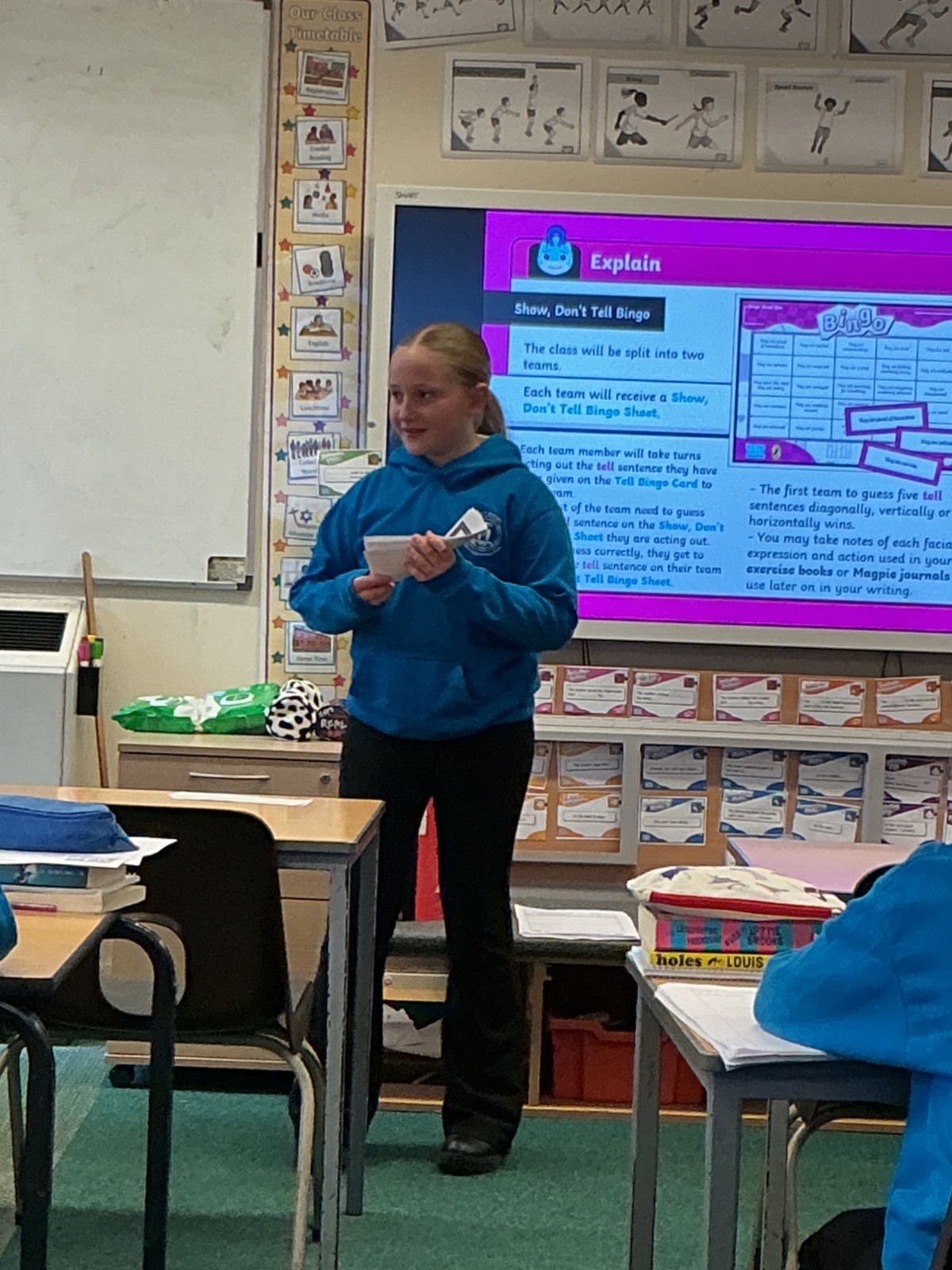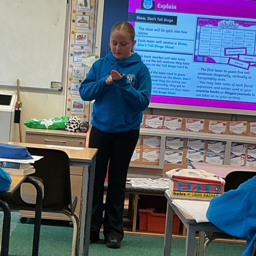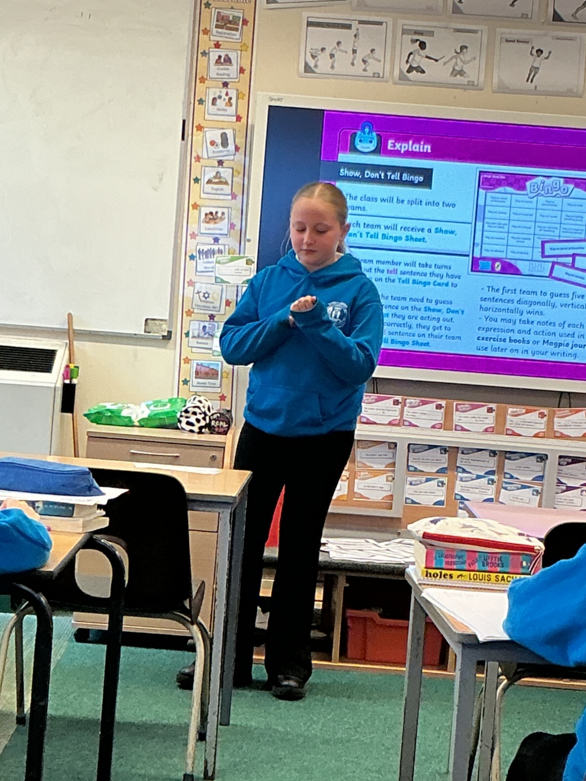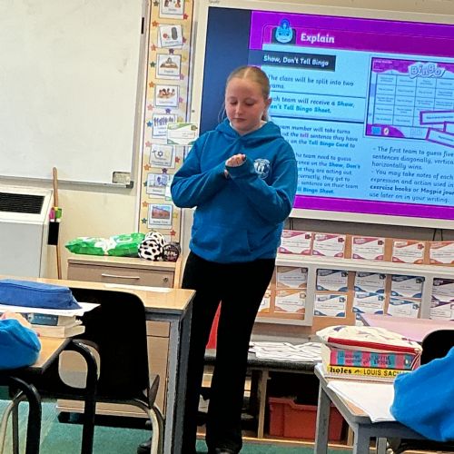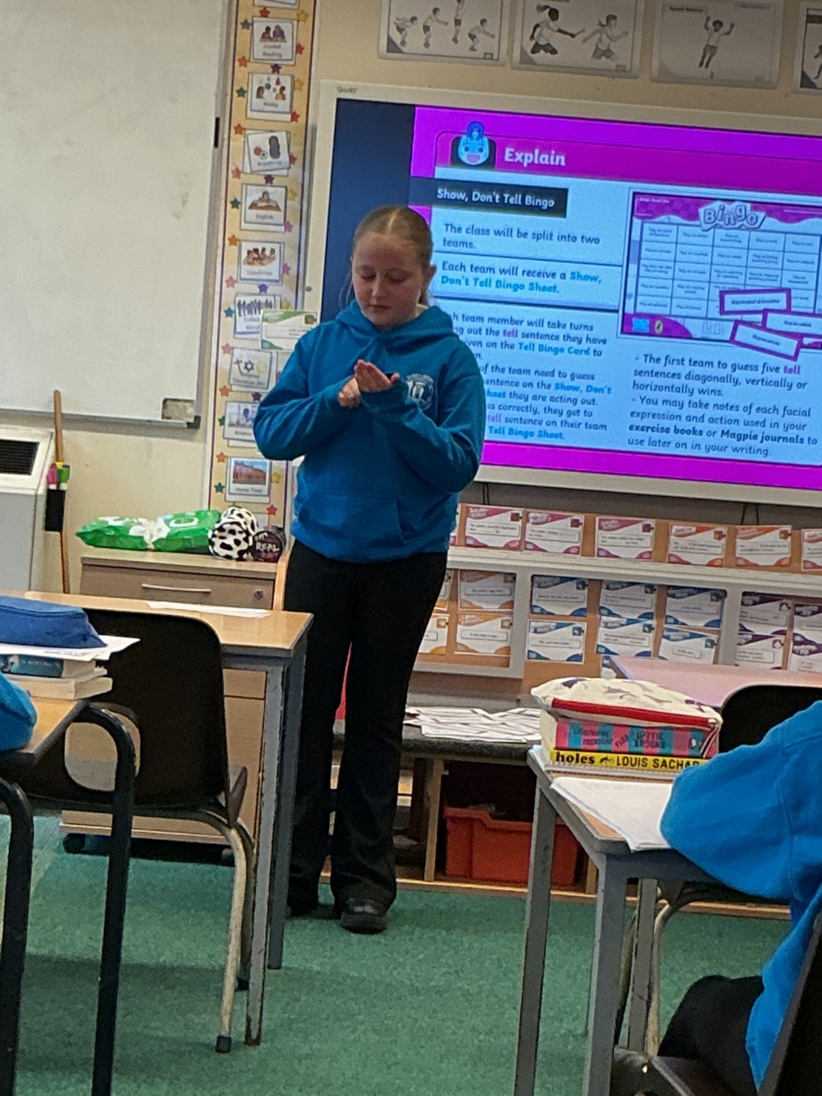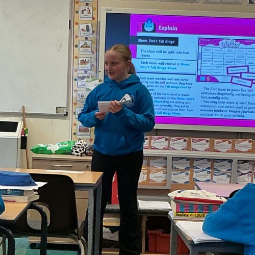 Today we have been acting and playing bingo to help with our show me don't tell sentences.