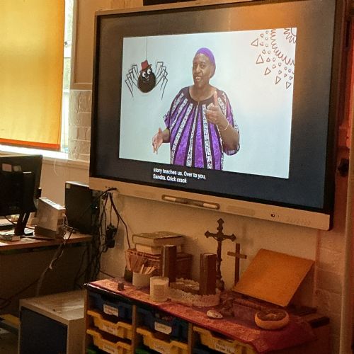 Enjoying Collective Worship as a whole school.