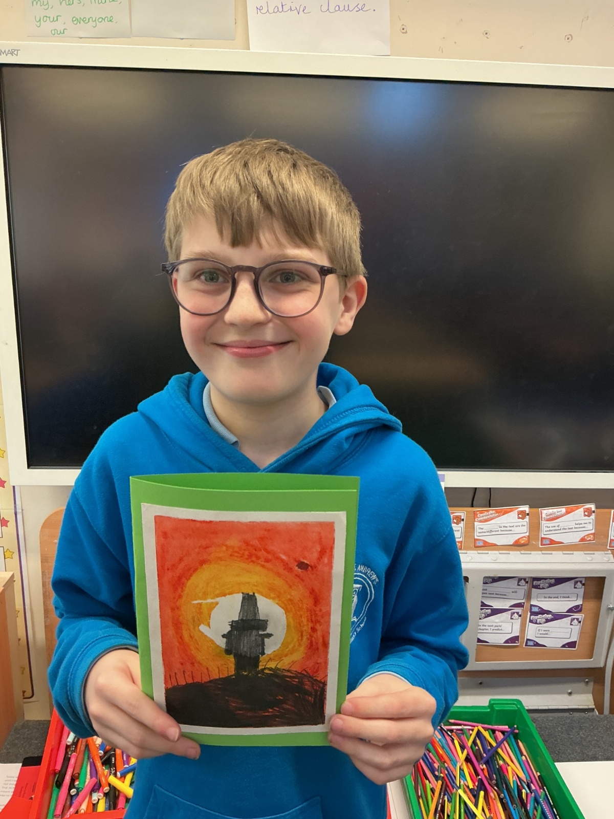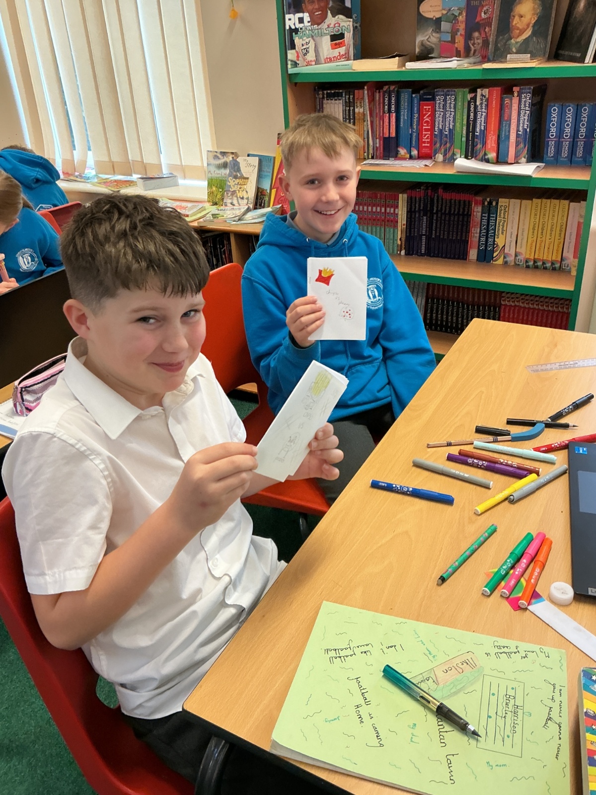 Rashford Class took part in three workshops. Mrs Richardson taught the children a sea shanty dance. Miss Price gave us all a big love heart so we could write positive things about ourselves. Mrs Gresswell read the rest of her book (Barnaby) whilst we redesigned the front cover to our favourite book.