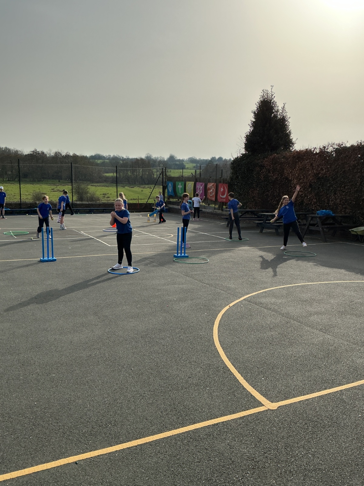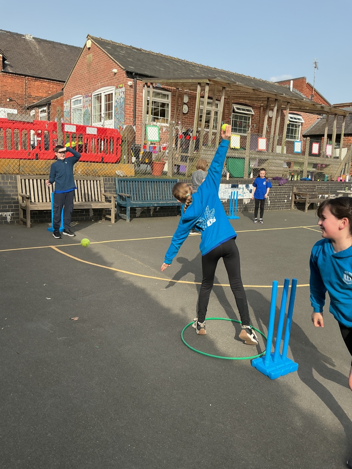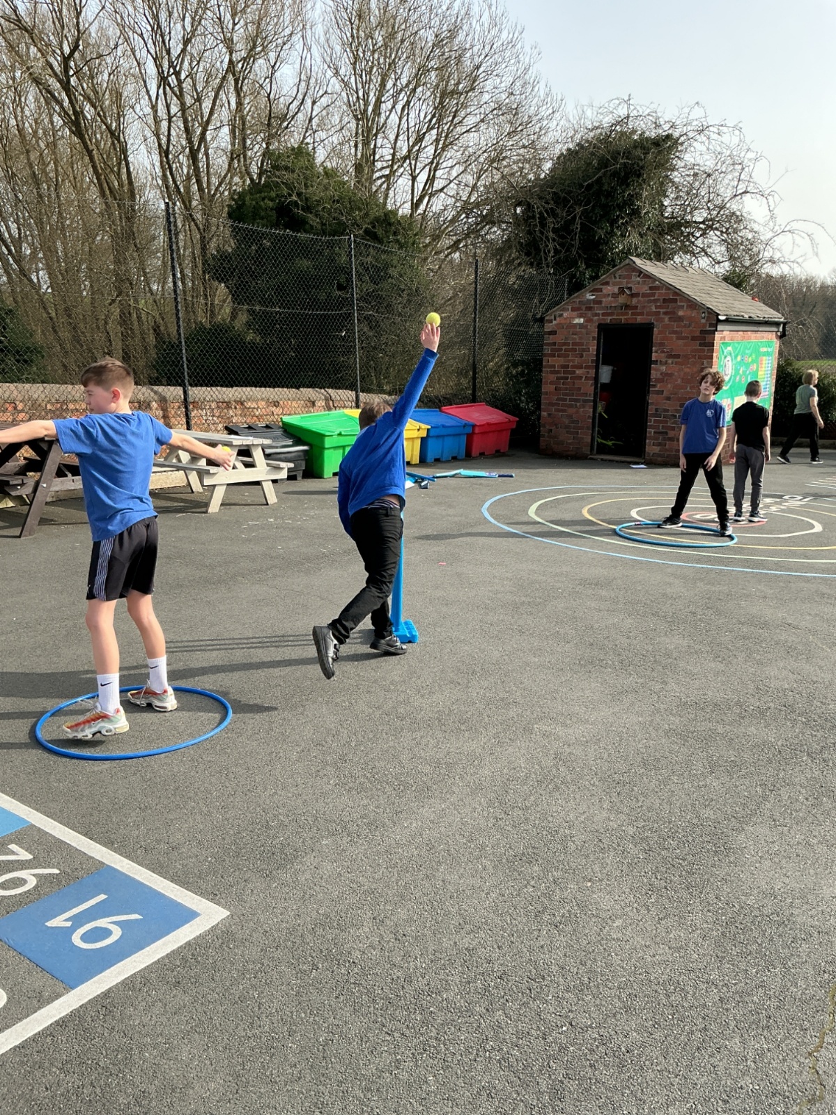 This afternoon we have been practising our bowling skills for cricket. We had to try and keep our arms straight when we bowled and aim the tennis ball into a hoop or hit the bottom of the wicket.