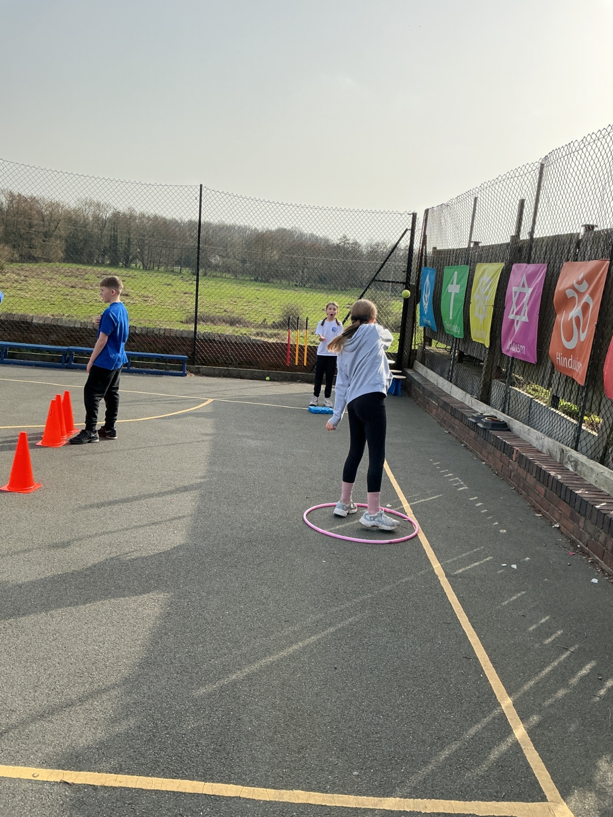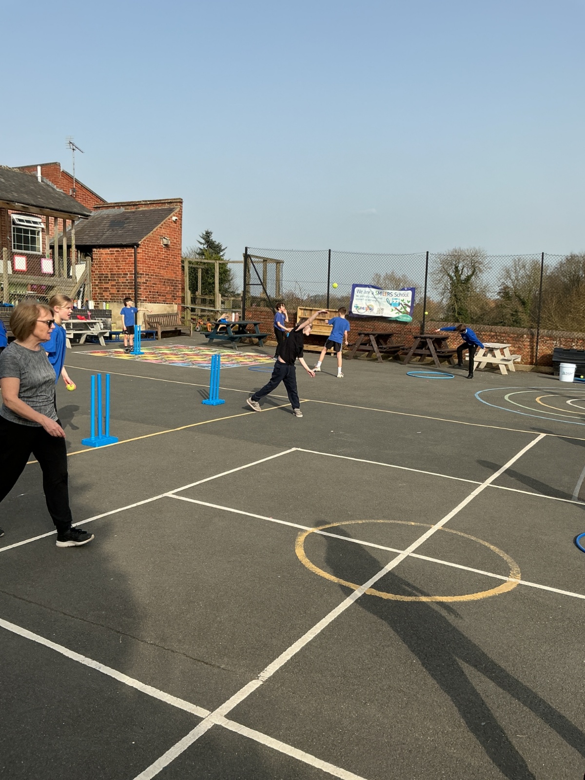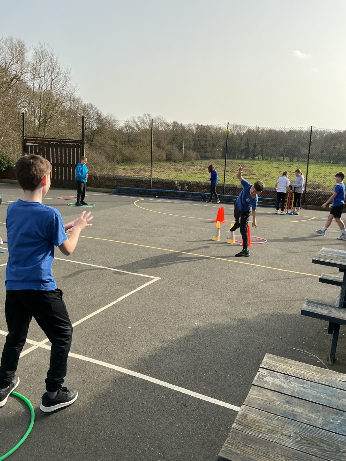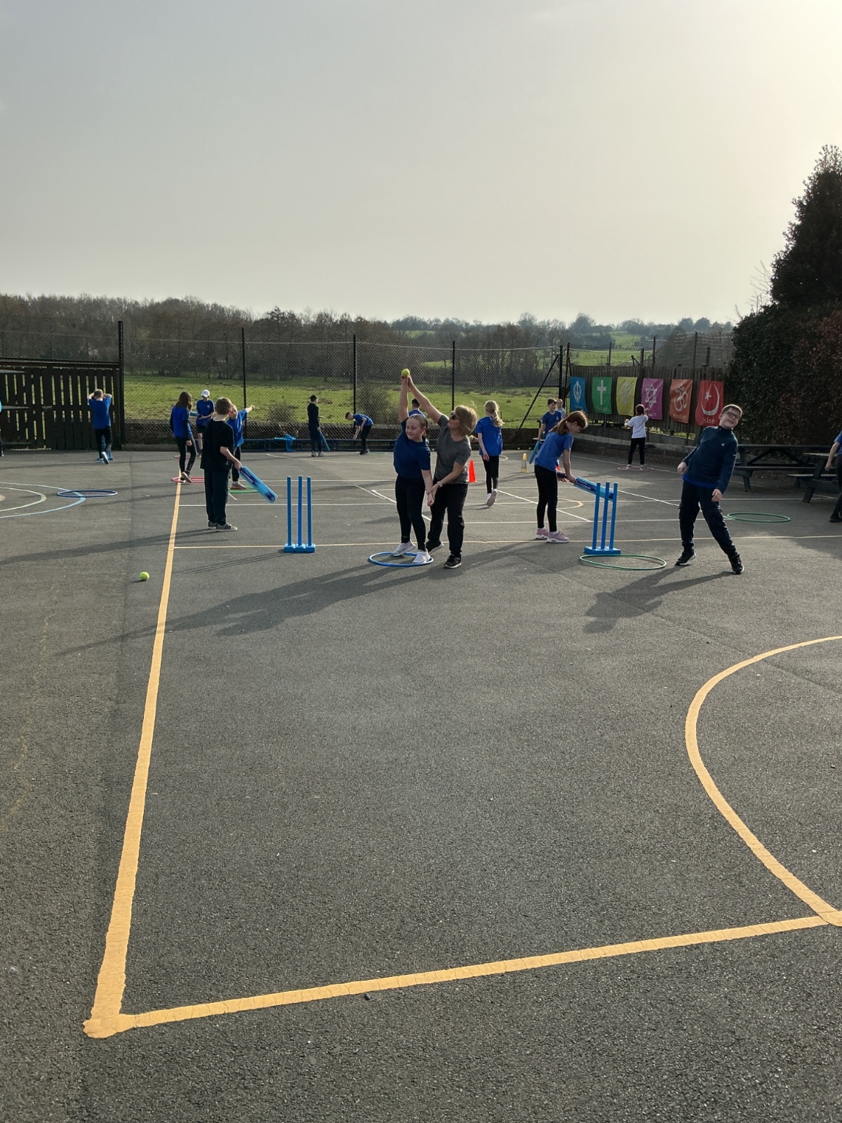 This afternoon we have been practising our bowling skills for cricket. We had to try and keep our arms straight when we bowled and aim the tennis ball into a hoop or hit the bottom of the wicket.