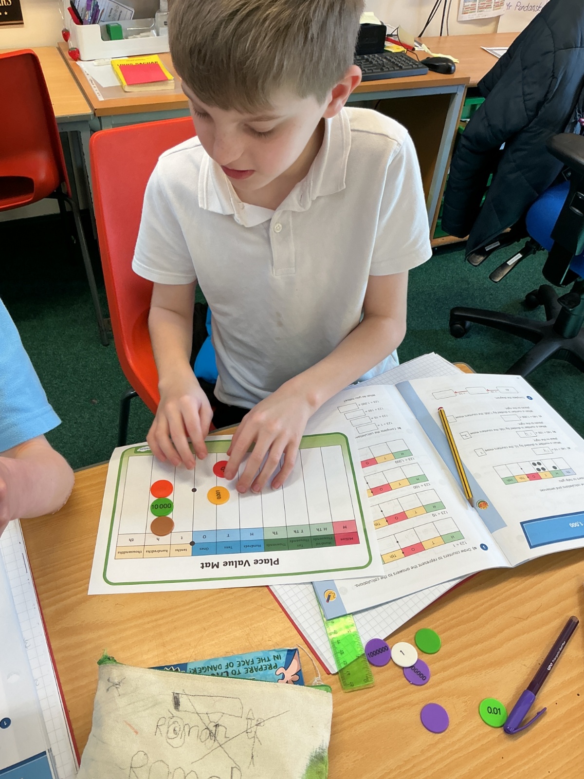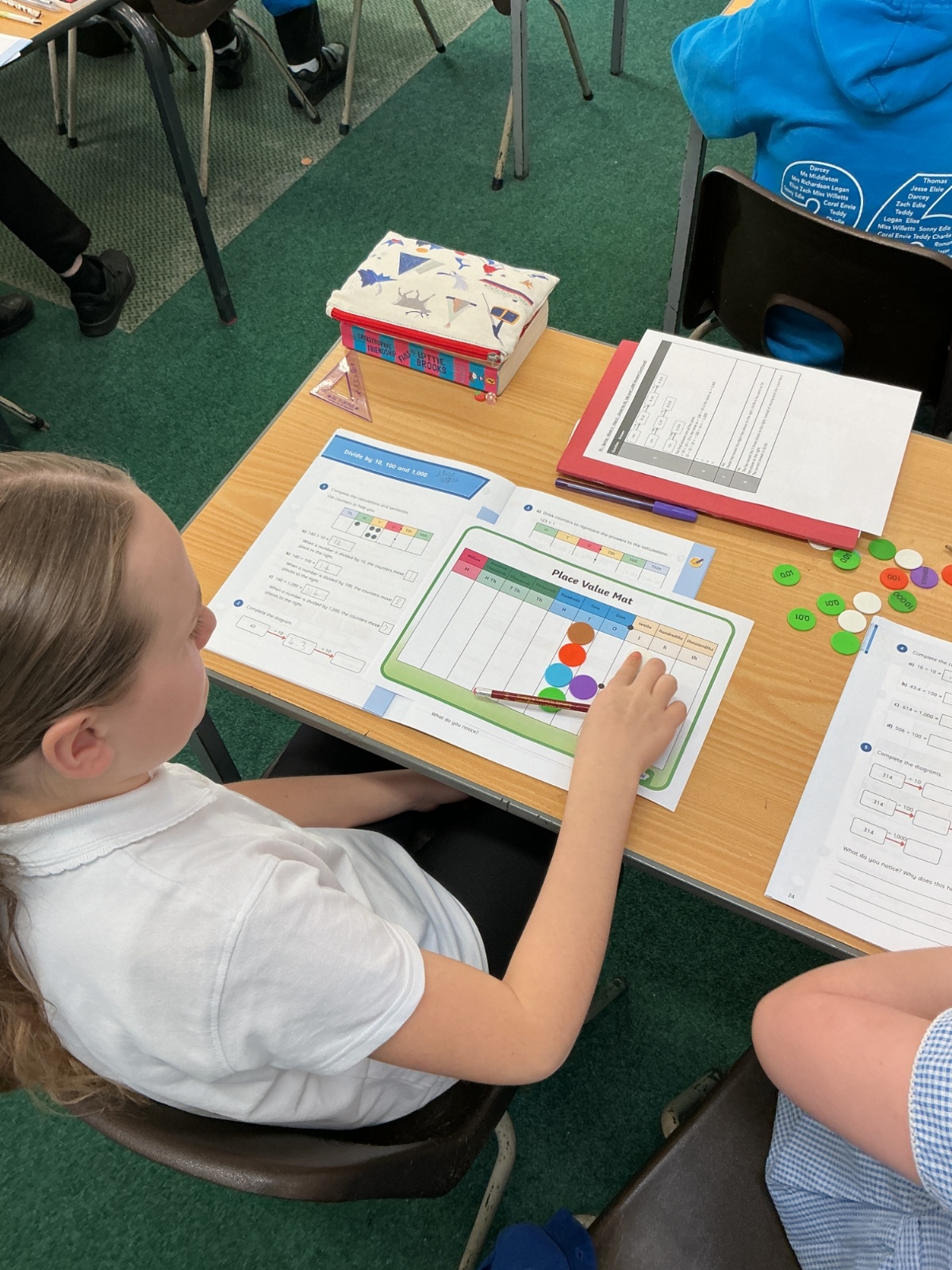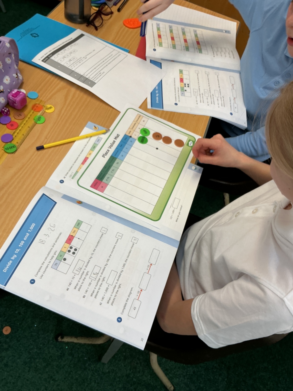 Using place value charts and counters to help us times and divide by 10, 100 and 1000.